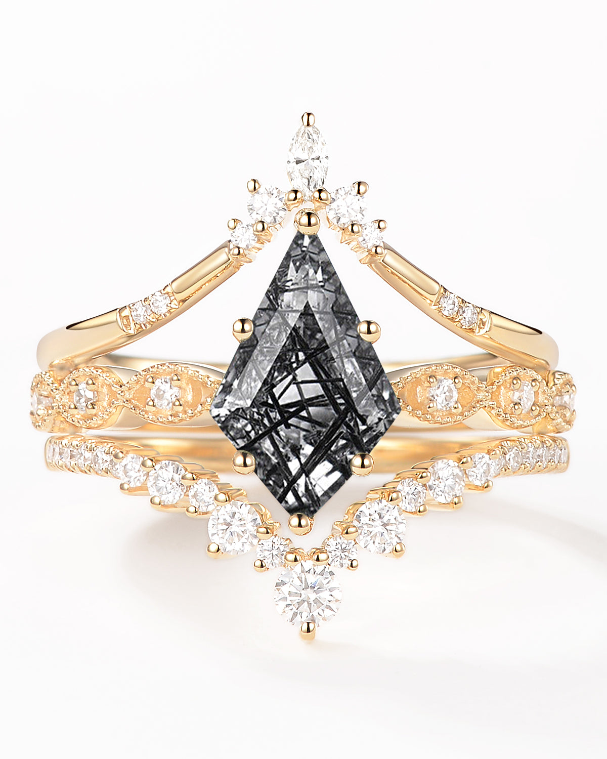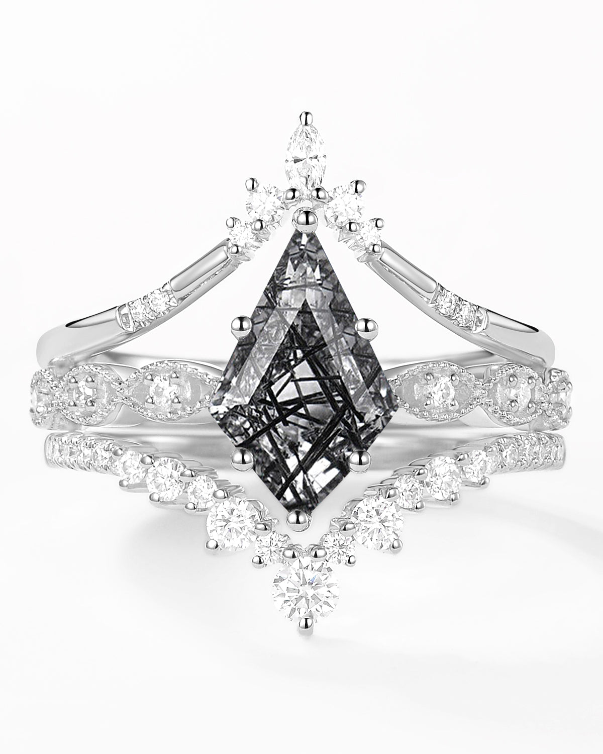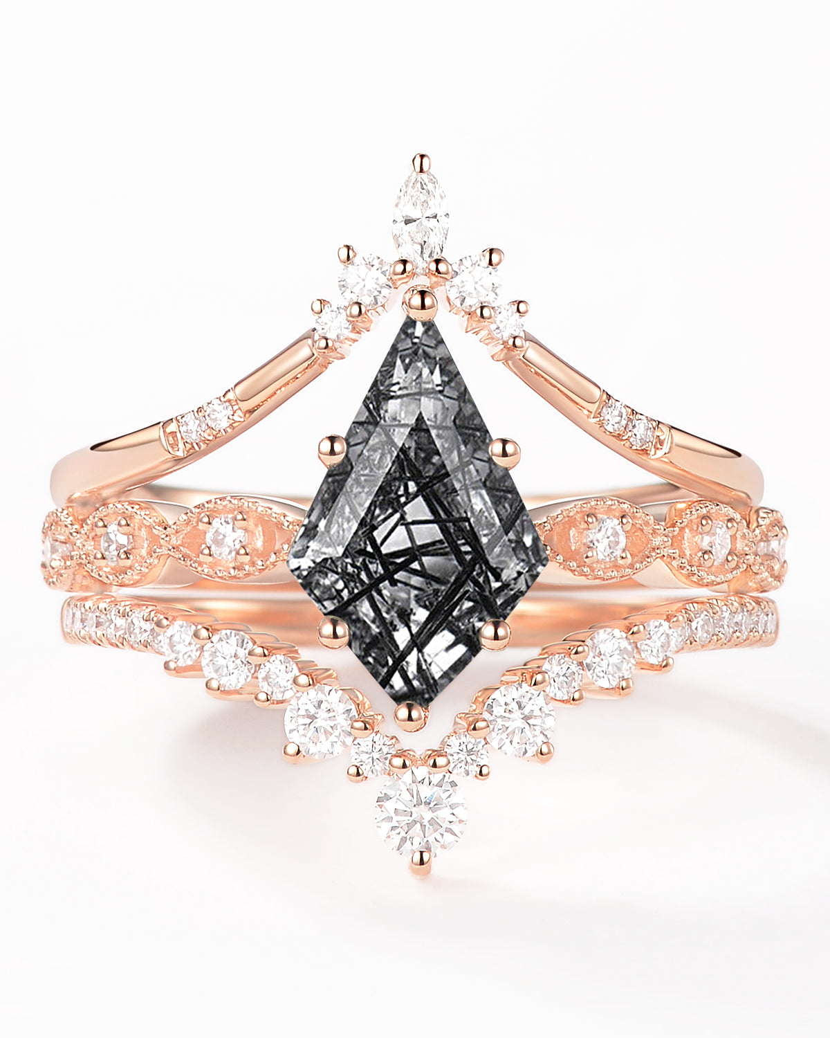 Forget about white dresses, diamond rings and bouquets or whatever that comes in the norm. This is for the brides that are never afraid to break the tradition and show their individuality. There are no better stone choices than these black rutilated quartz and salt & pepper diamonds.