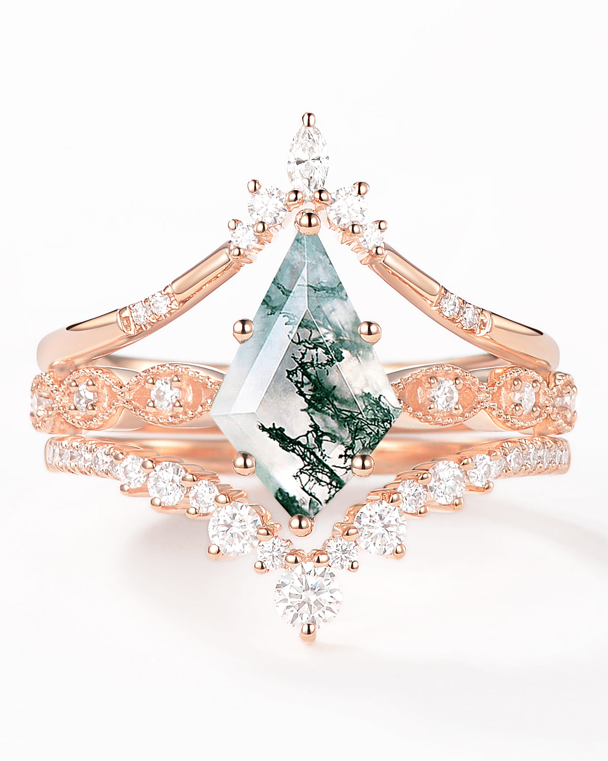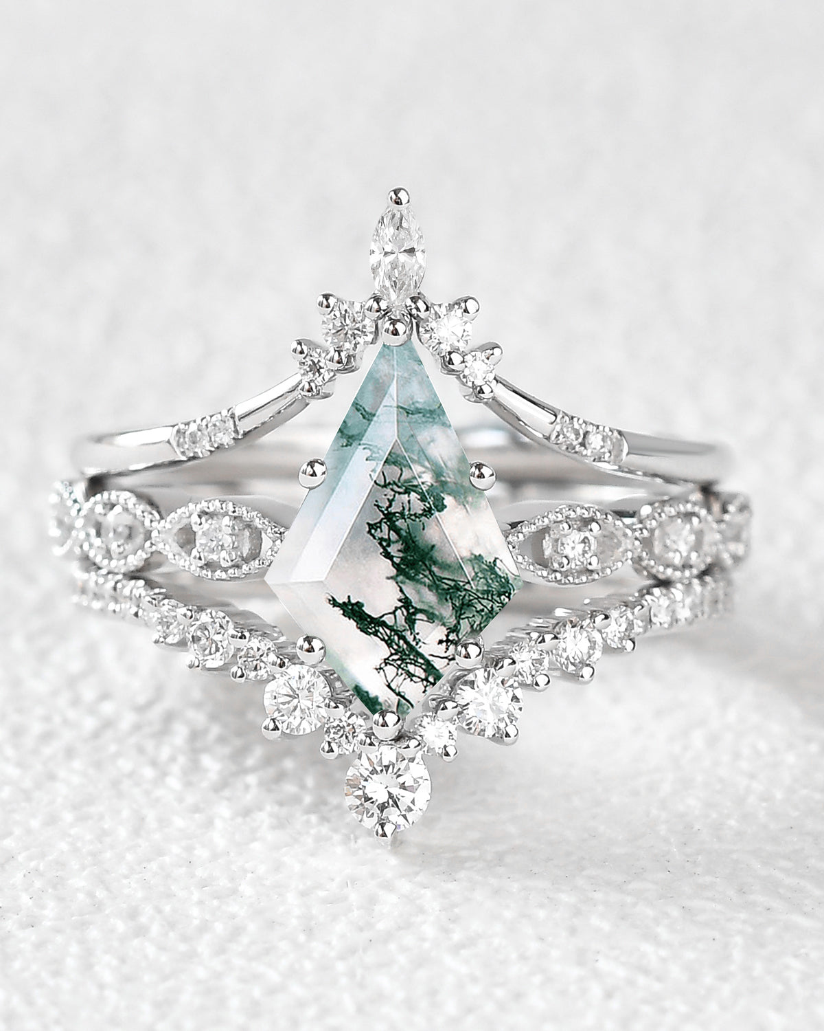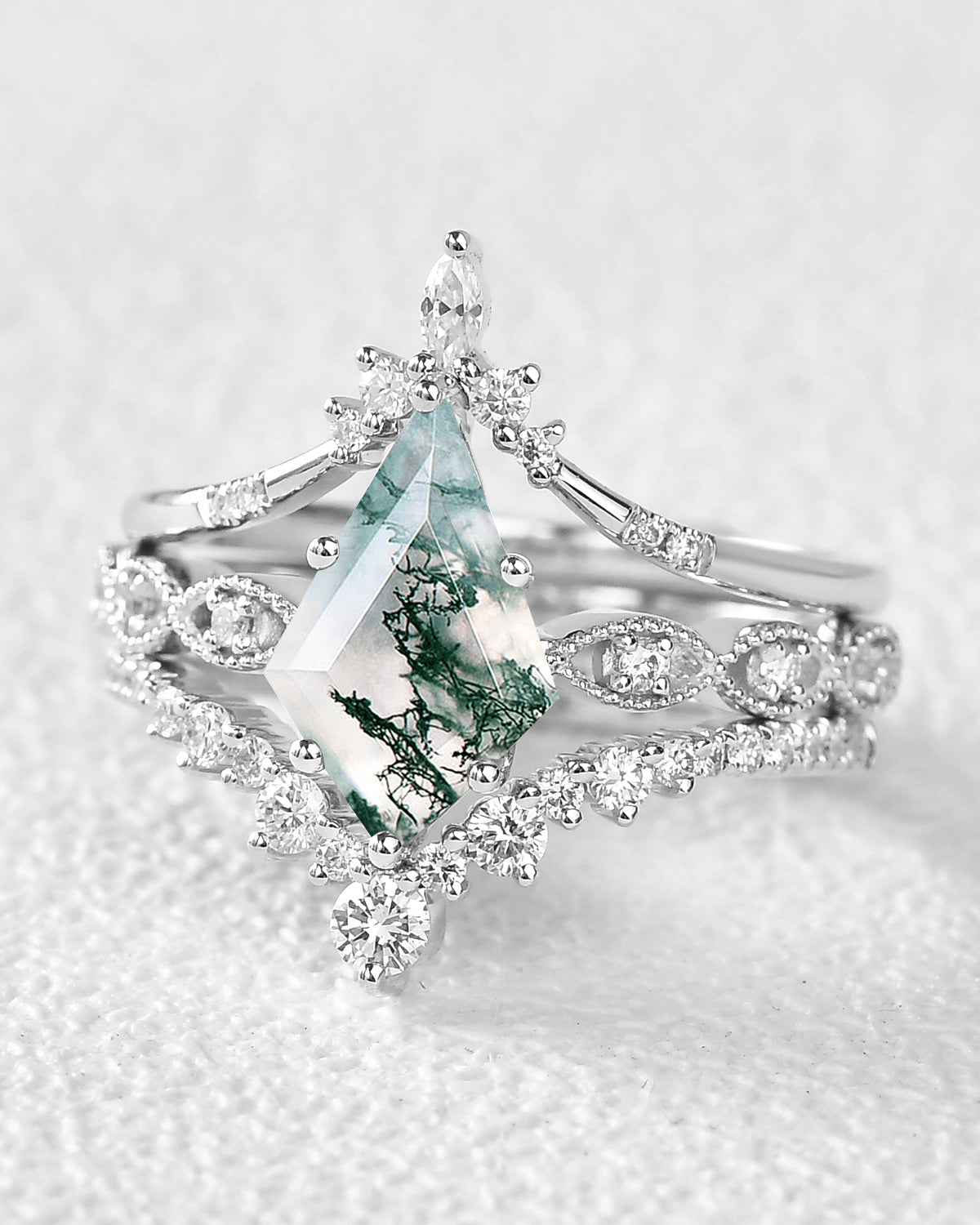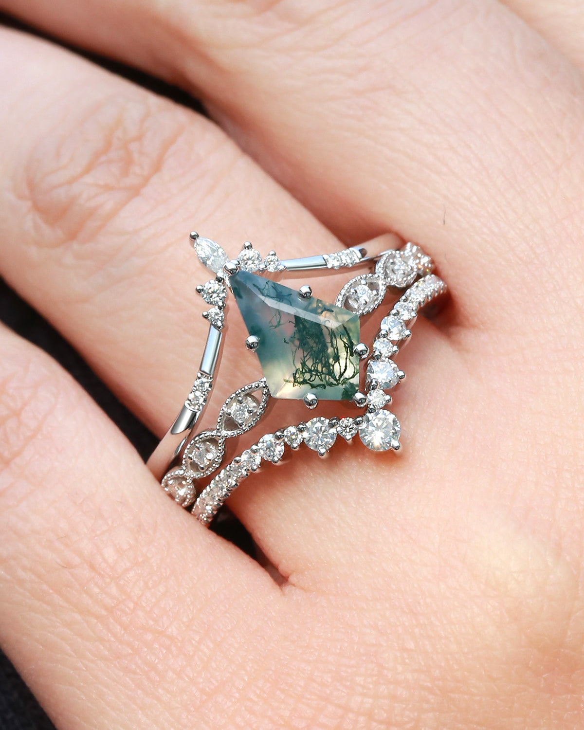 A mountain-top proposal at the Skageflå, a rainforest wedding at Hoh Rainforest or an anniversary trip at Mt. Batur...Nature is earthy queens' best friend. These responsibly sourced nature-inspired Moss Agate rings seem to be the perfect answers to the very question.