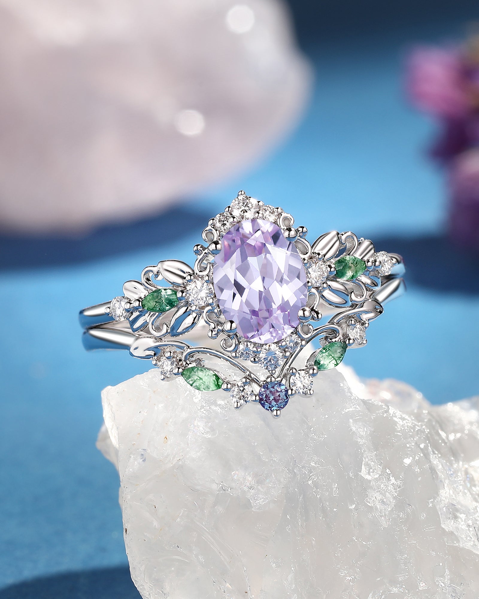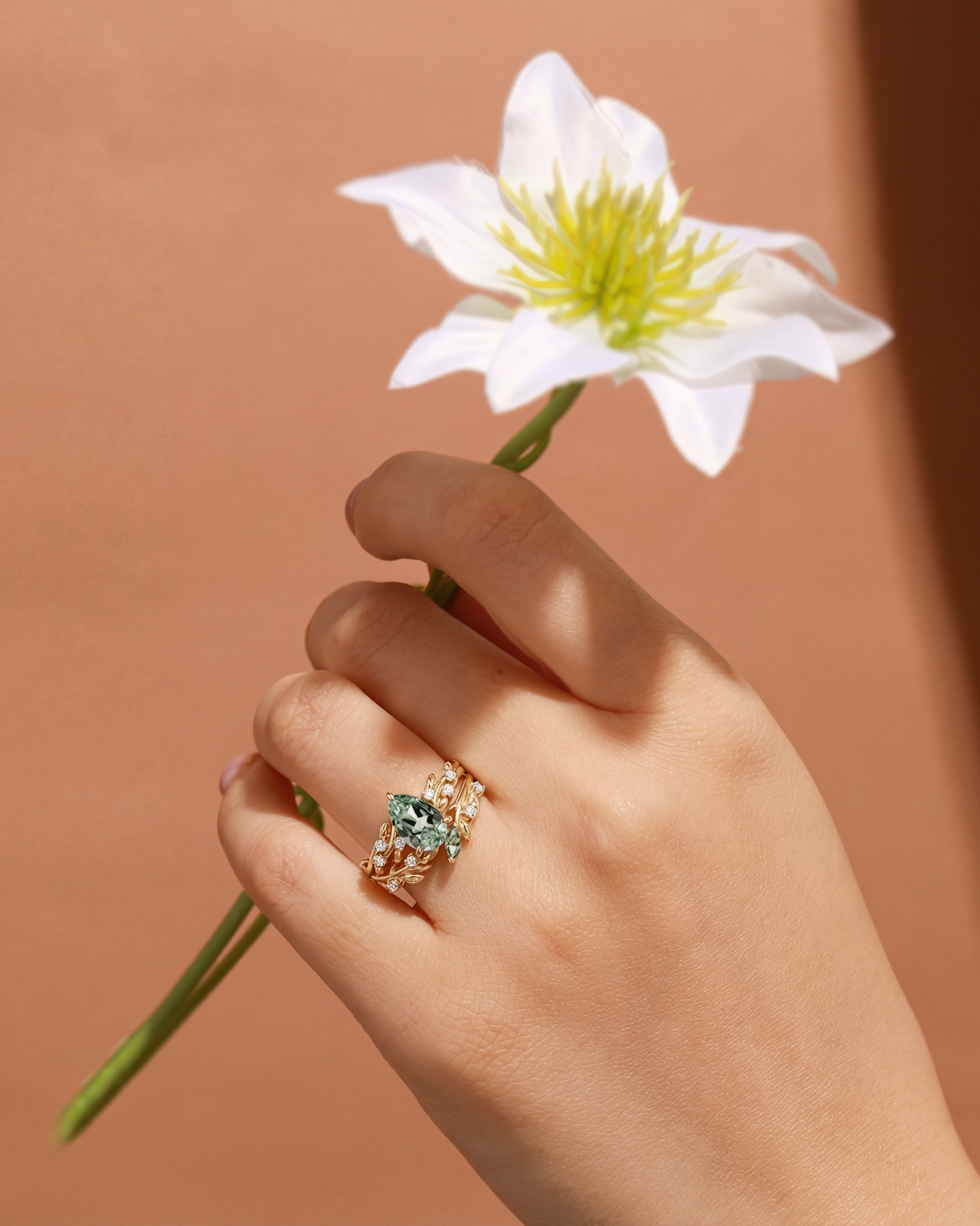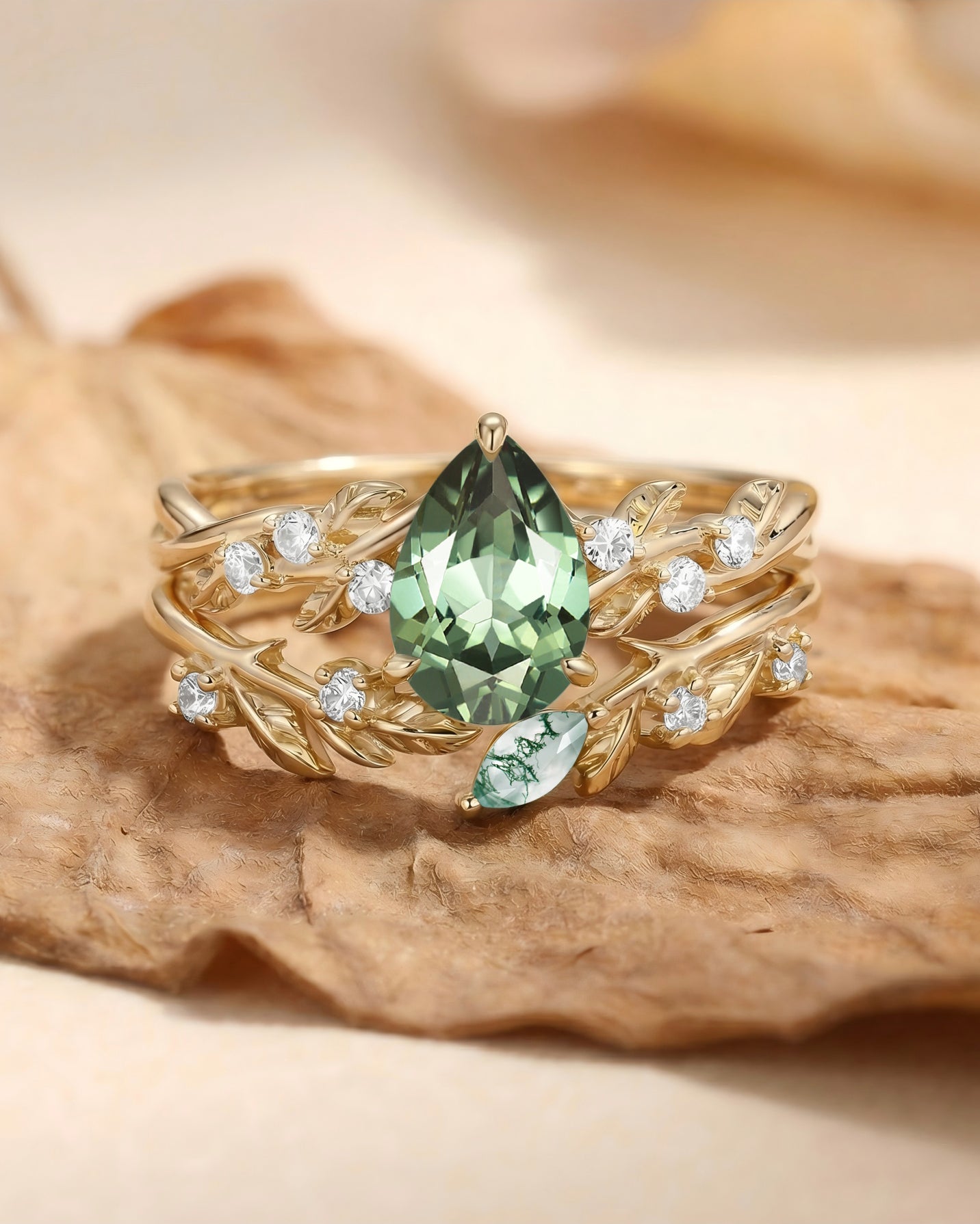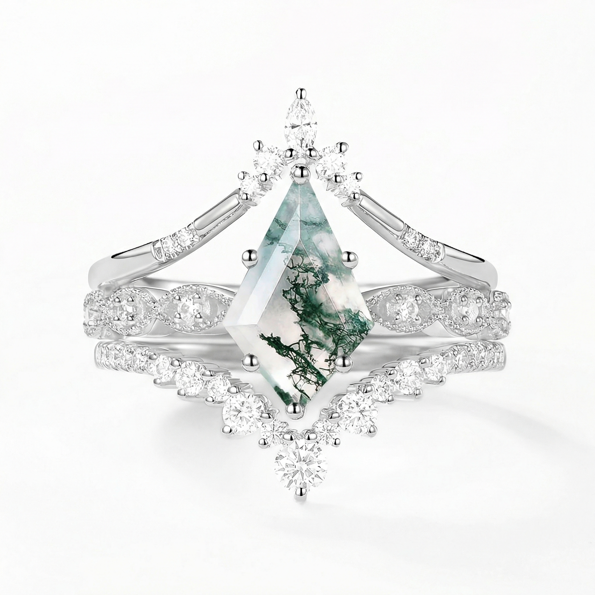 A mountain-top proposal at the Skageflå, a rainforest wedding at Hoh Rainforest or an anniversary trip at Mt. Batur...Nature is earthy queens' best friend. These responsibly sourced nature-inspired Moss Agate rings seem to be the perfect answers to the very question.