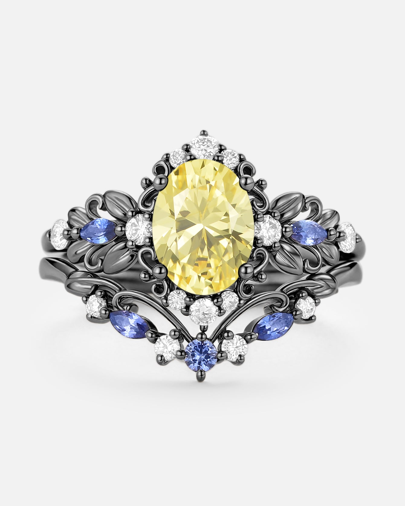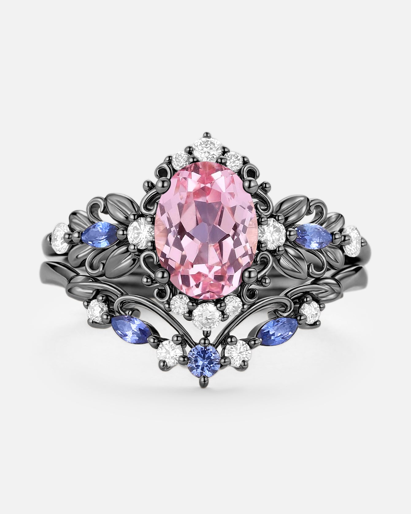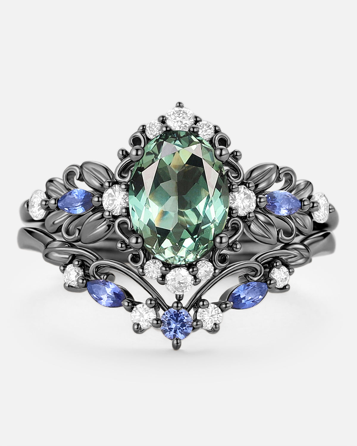 Pear Shaped Salt and Pepper Diamonds Vintage Halo Infinity Ring Set 2pcs - Valentina