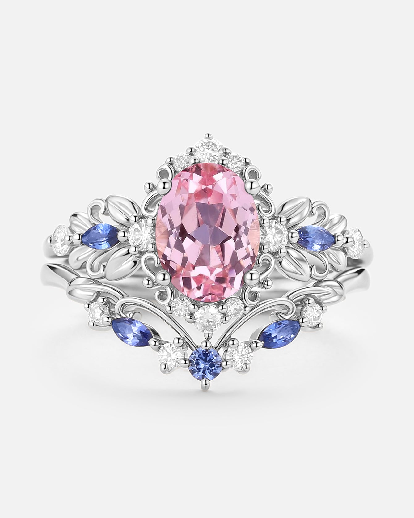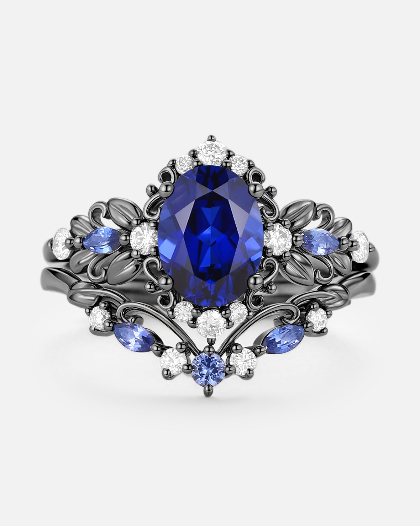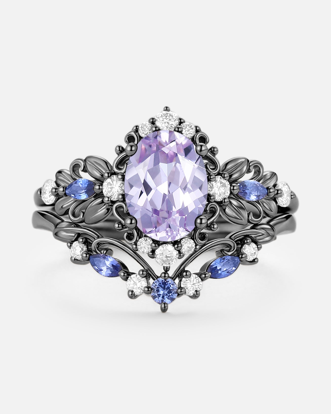 Pear Shaped Salt and Pepper Diamonds Vintage Halo Infinity Ring Set 2pcs - Valentina