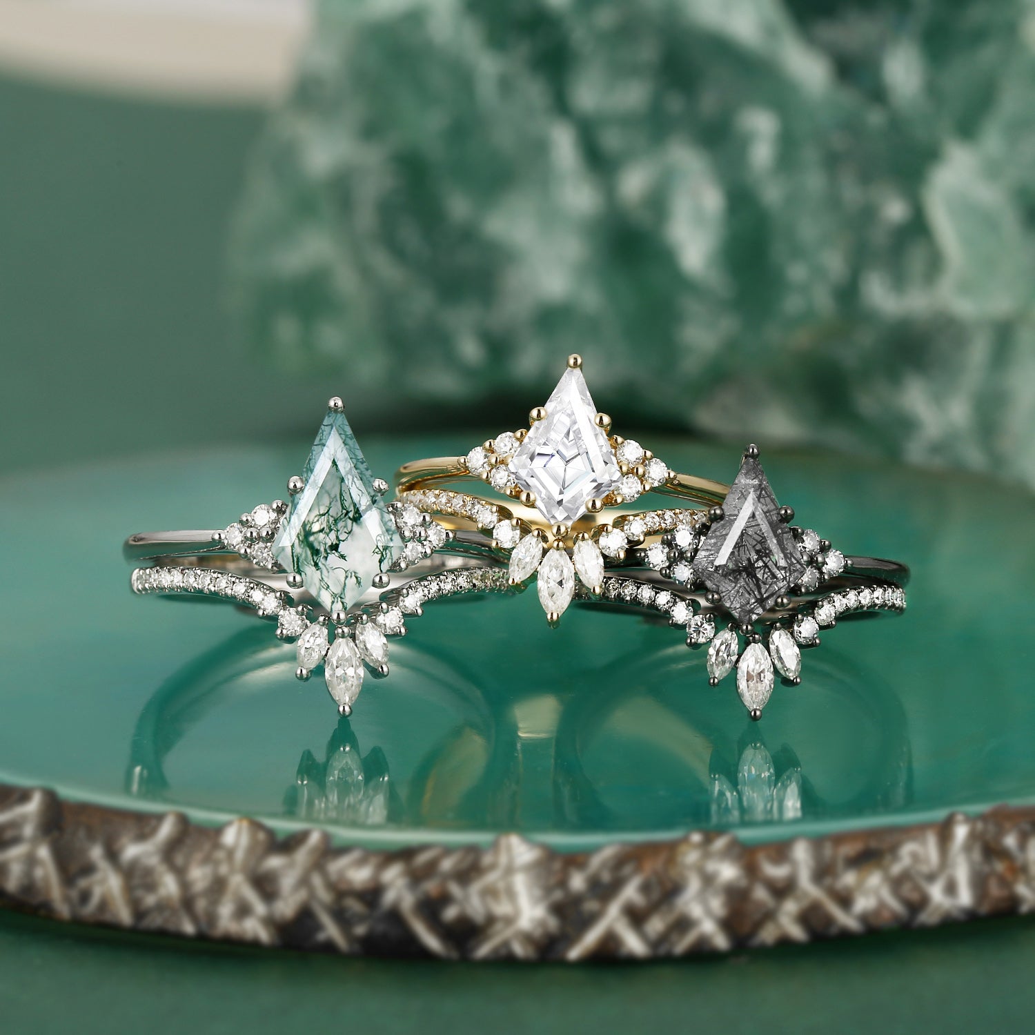 When it comes to engagement rings, there are various options to choose from. One unique and captivating choice is the kite cut moss agate ring. The kite shape adds an elegant and contemporary touch, while the moss agate brings a touch of natural beauty. Moss agate kite rings offer a one-of-a-kind design that is sure to stand out. Plus, they often fall into the category of affordable engagement rings, making them a great choice for those who value both style and budget. Unique gemstone engagement rings, like those featuring moss agate, make for a truly special, meaningful and affordable choice for your big day.