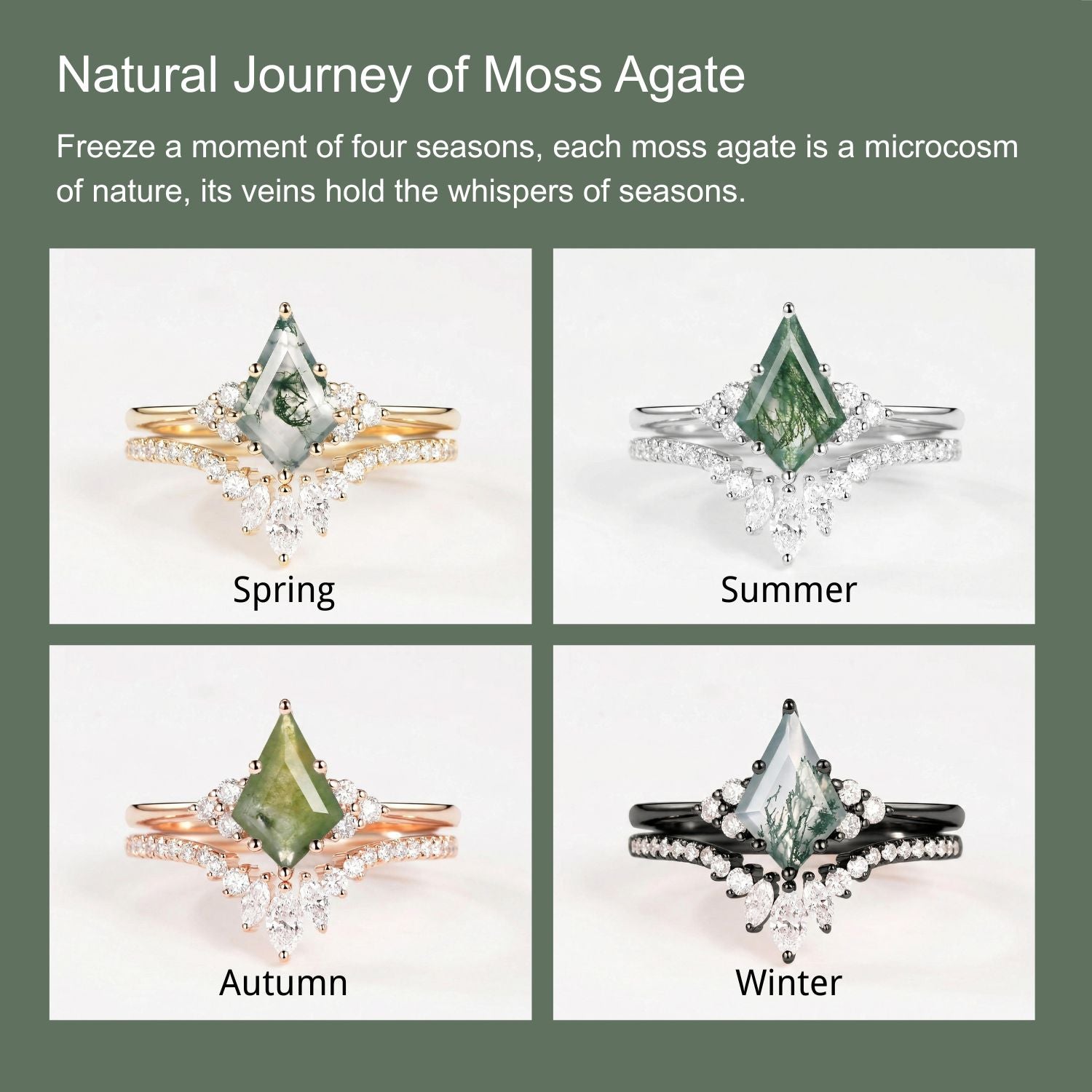 Classic Engagement - Unique Moss Agate Engagement Ring Set 2pcs - Lydia