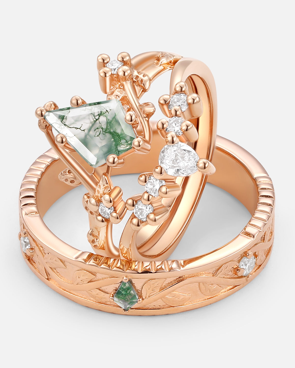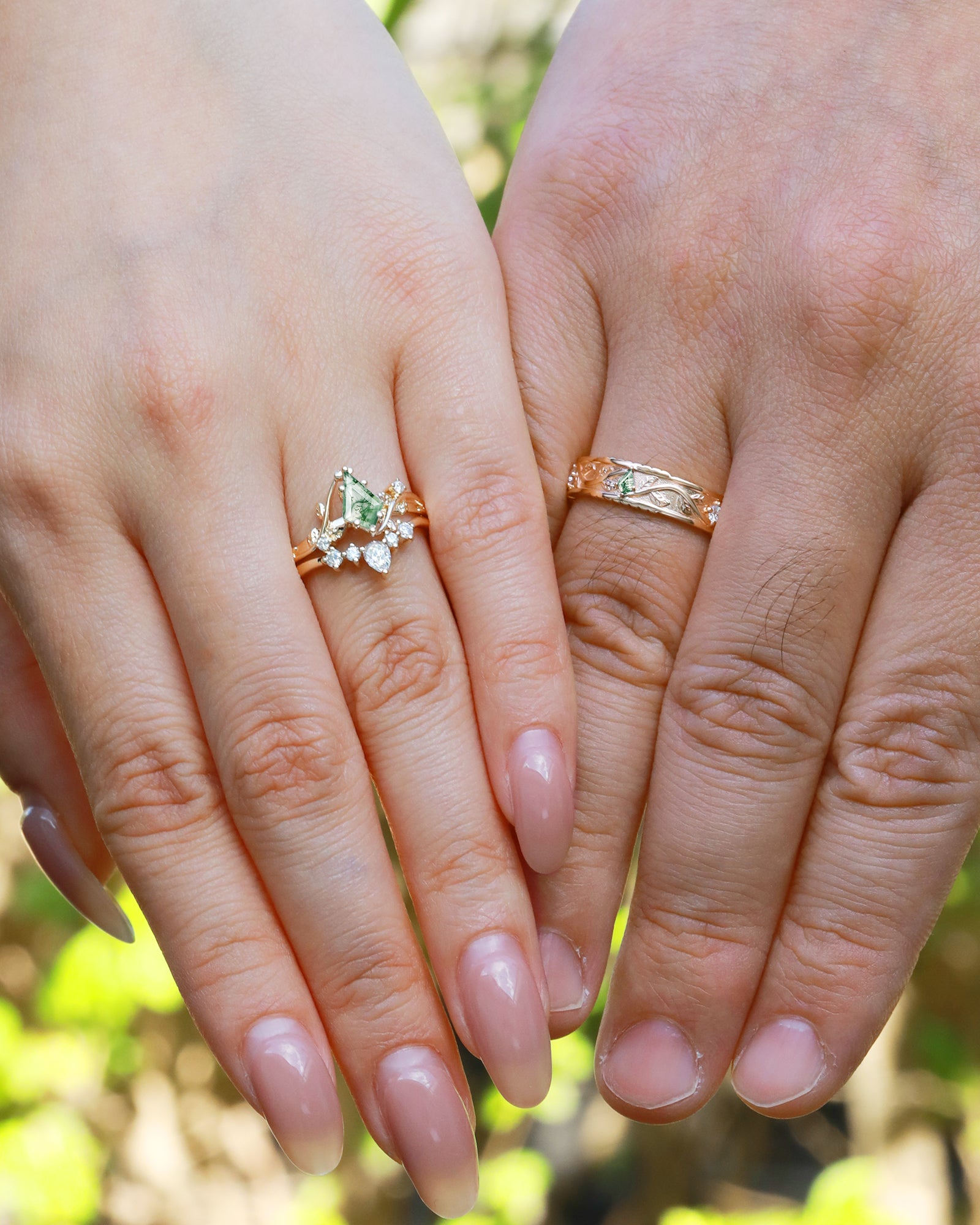 Willow is an earthy queen with tons of class. The delicately crafted willow-y vines and clusters of hand-picked stones create a wonderful balance between elegance and earthy vibes. The poetic center Moss Agate is a cherry on top, bringing the nature to the front and to the center. If you're an earthy queen like Willow, this is the one.
