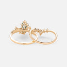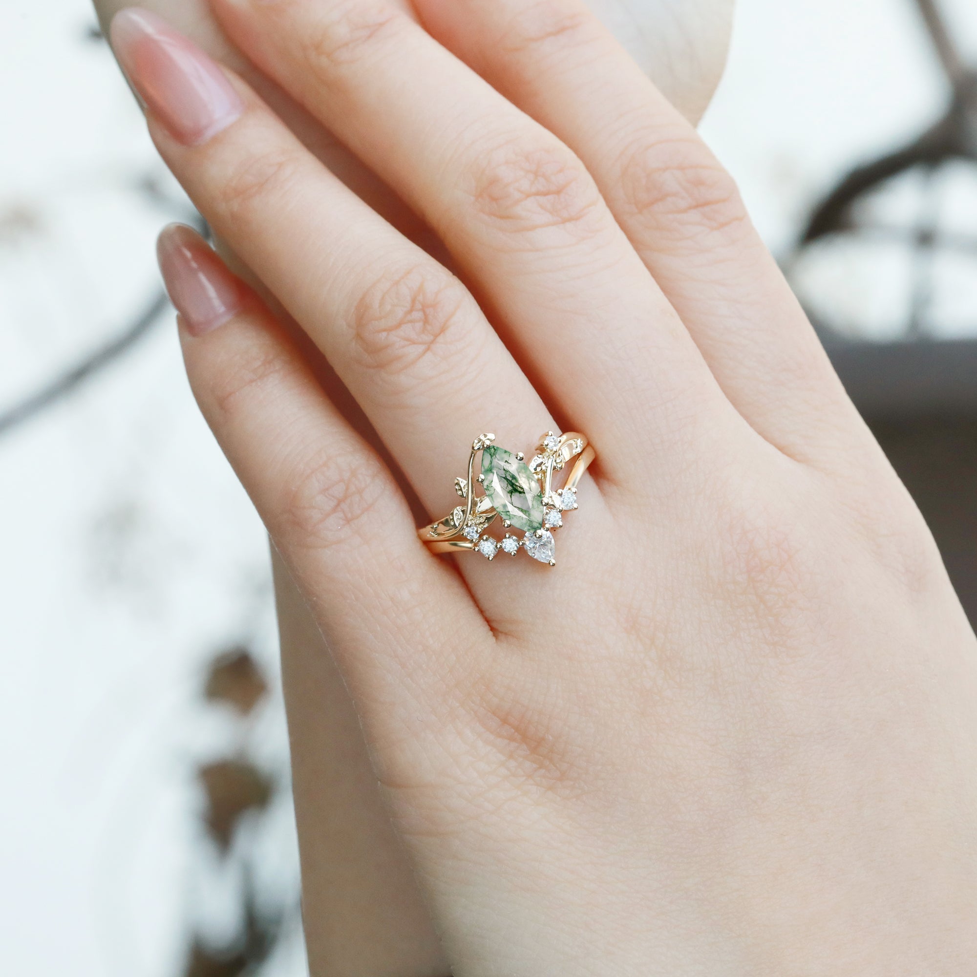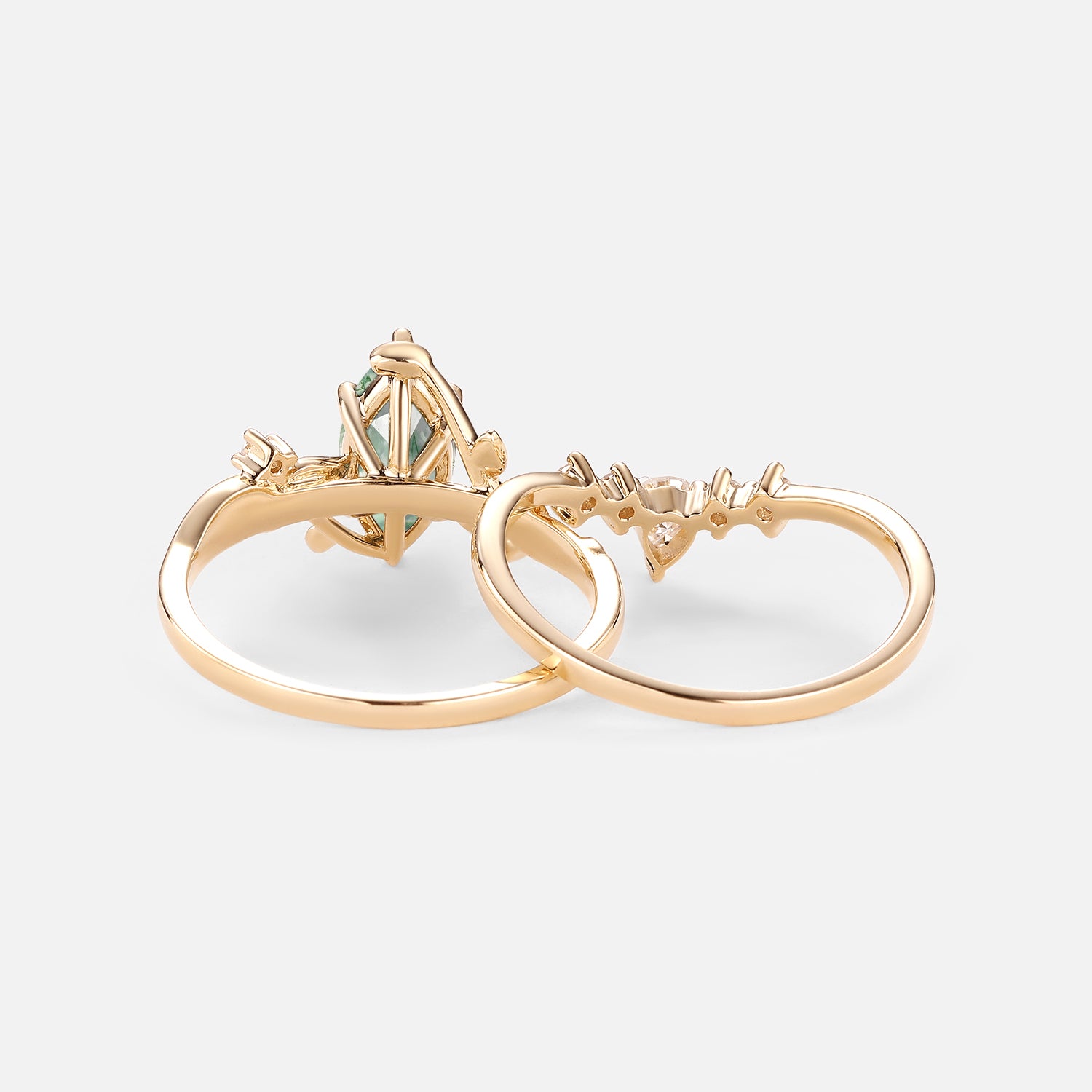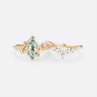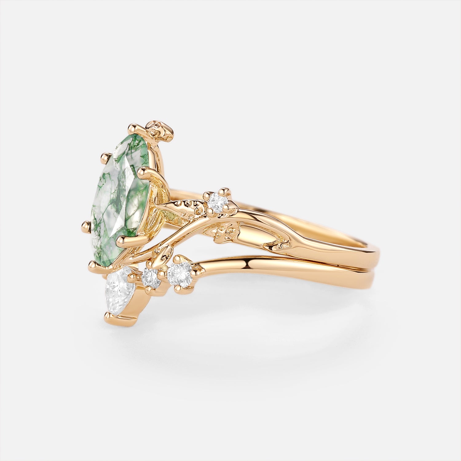 Unique Marquise Cut Moss Agate Leafy Bridal Ring Sets 2pcs - Willow