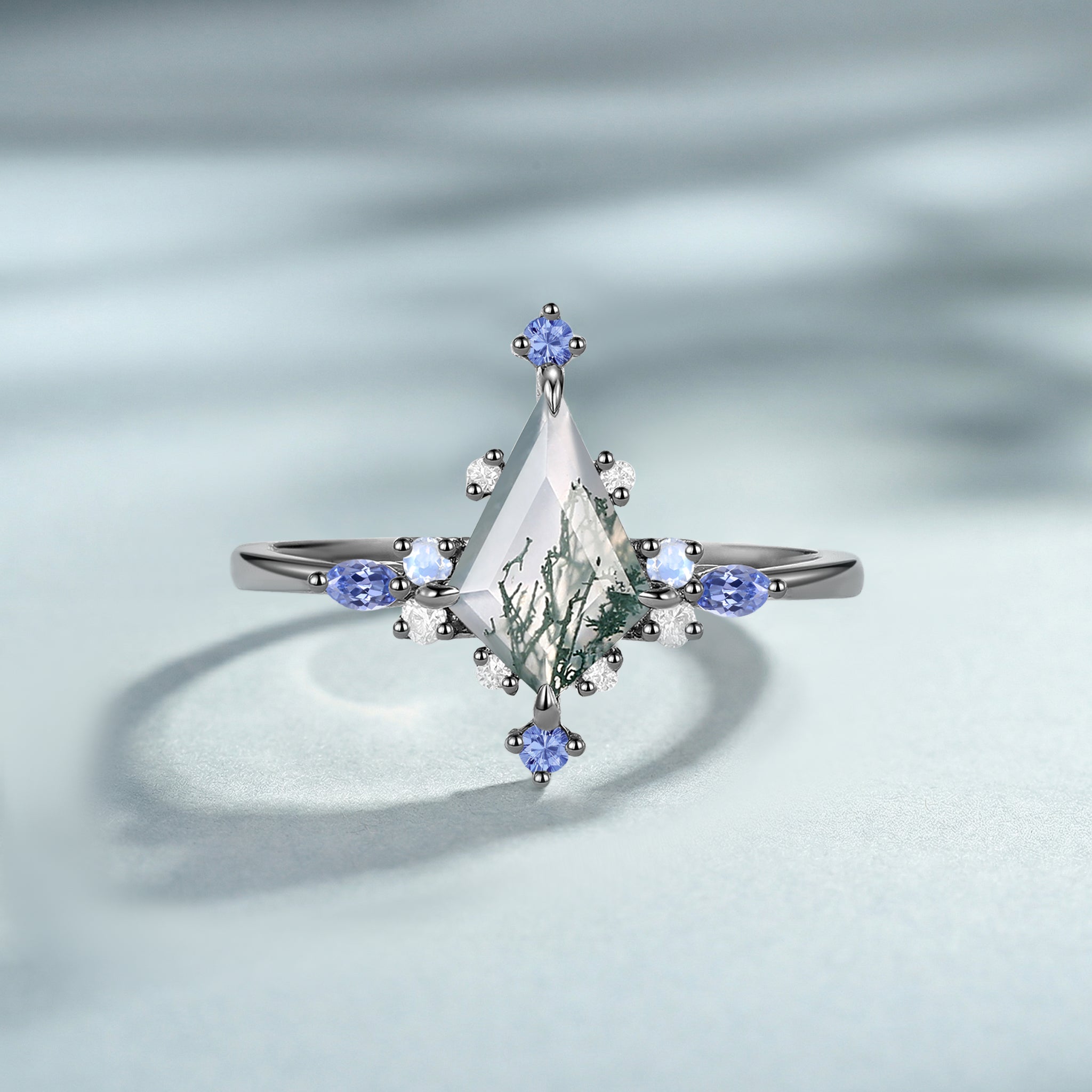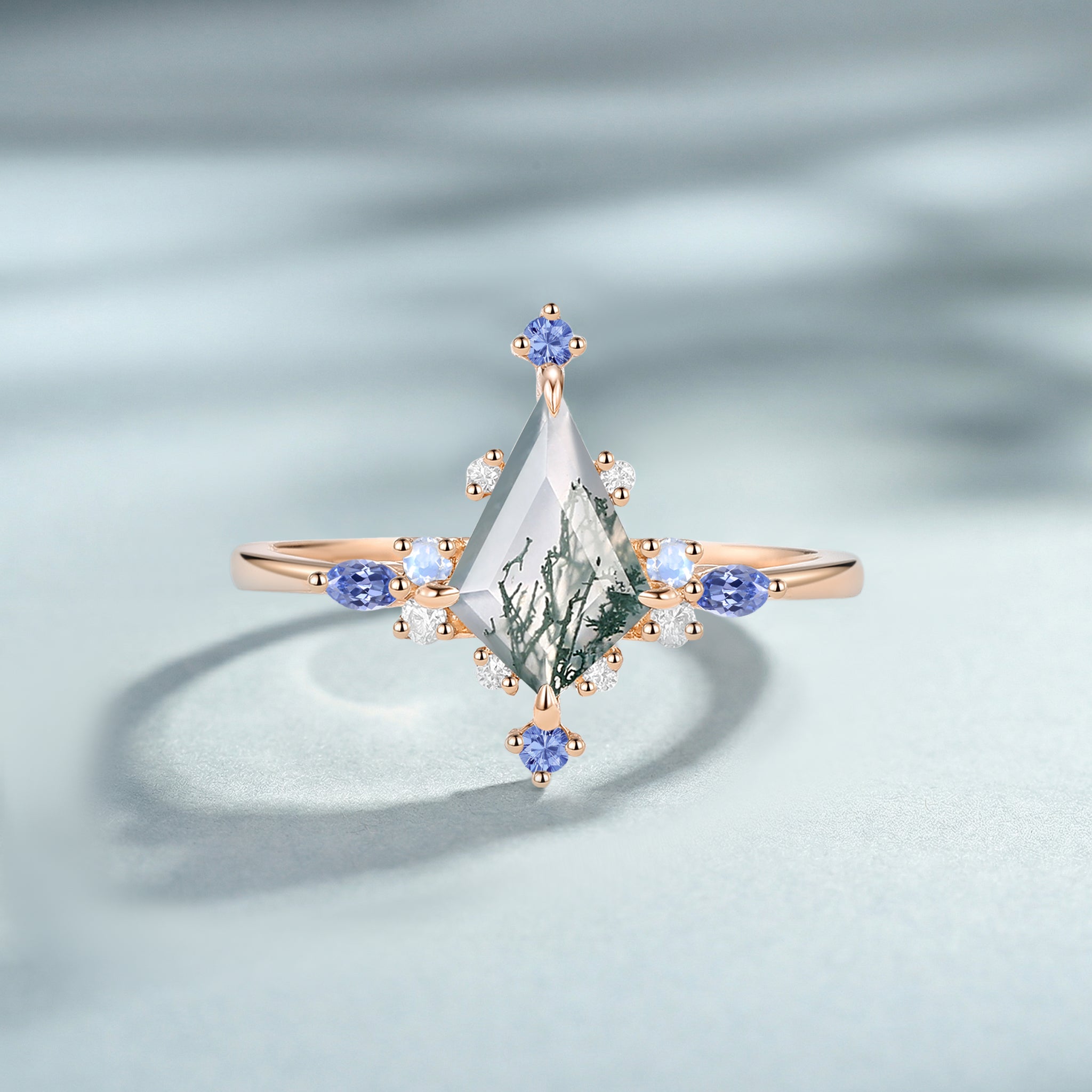 Kite Cut Moss Agate Cluster Engagement Ring - Maren