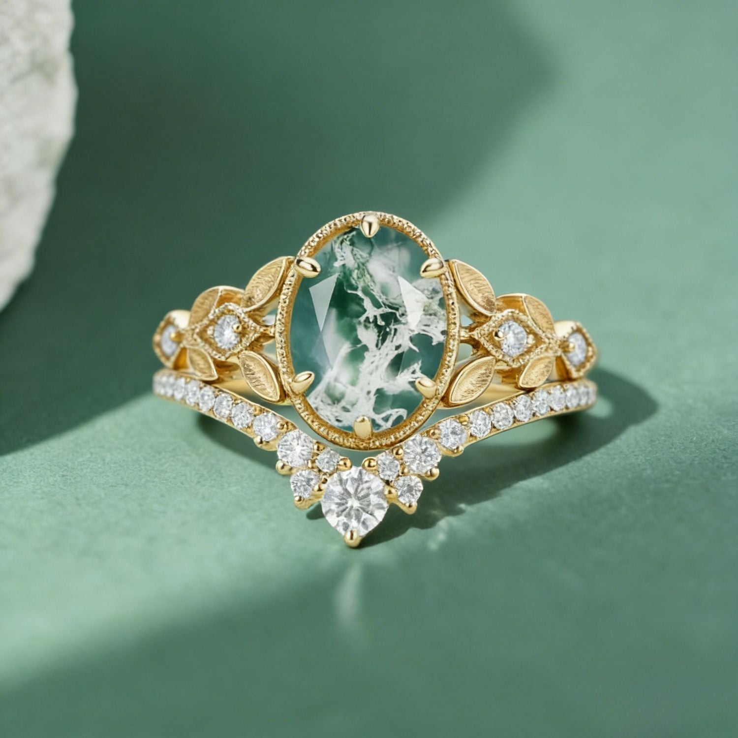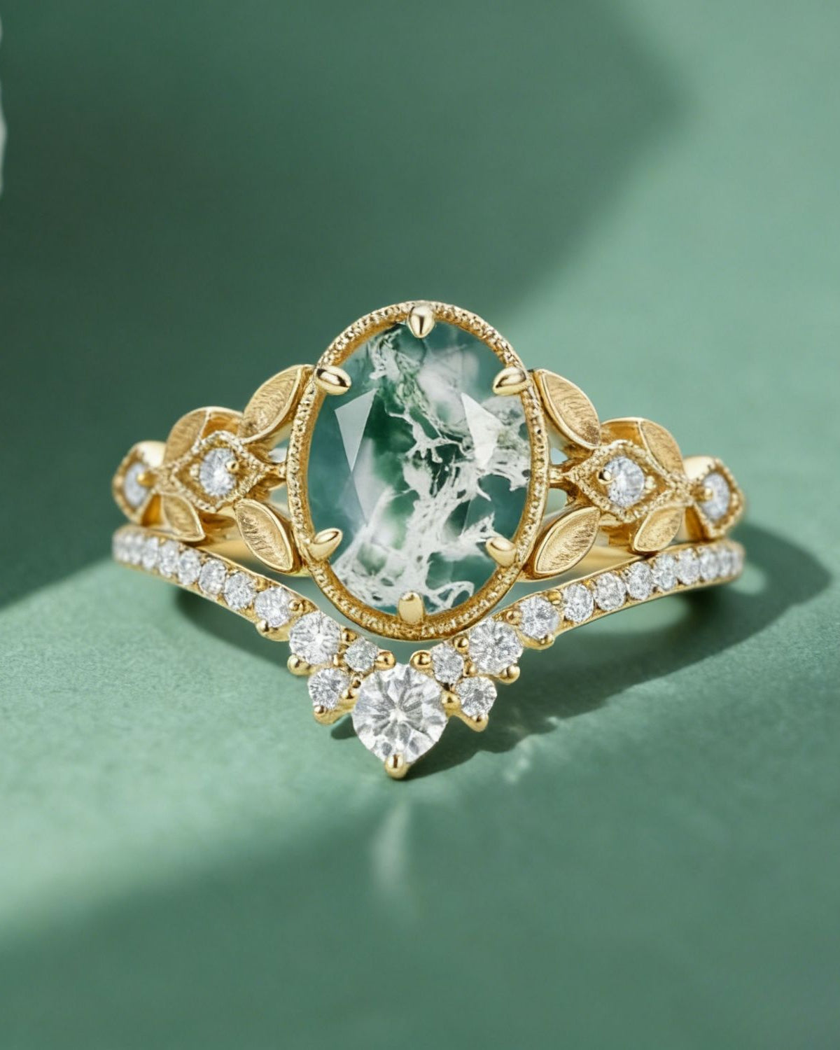 Introducing our Winter Moss Agate Engagement Ring Series—where milky snowy moss rests inside each gem, mirroring winter’s soft, frosty glow. When the air turns crisp, this ring becomes a reminder: quiet love eases the chill. Crafted to hold the calm magic of winter, it turns the season’s stillness into a symbol—one that wraps your forever promise in the gentle warmth of a love that feels like coming home, even on the coldest days.
