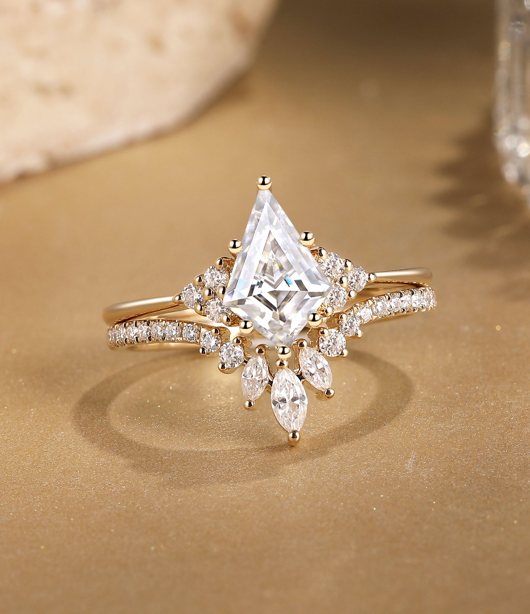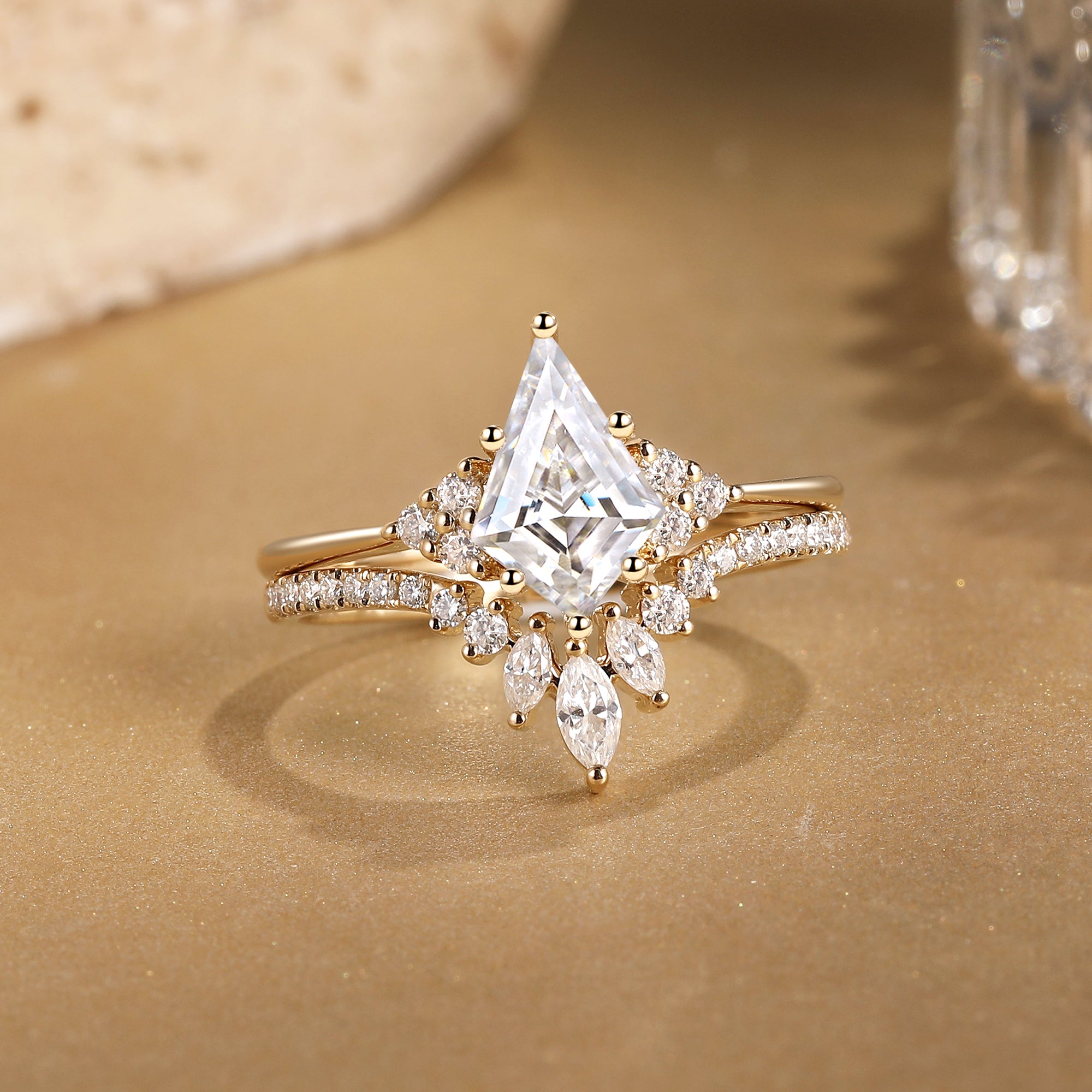 Starla is like a fairy who has come to the cosmos, surrounded by a mysterious atmosphere. The kite-shaped rose-cut salt and pepper diamond is like the bright stars in the night sky, shining brightly. The two marquises shaped on the top and bottom are like shining elves, giving this engagement ring the magic of love. She lies there quietly, and without having to show it deliberately, she can attract people's attention.