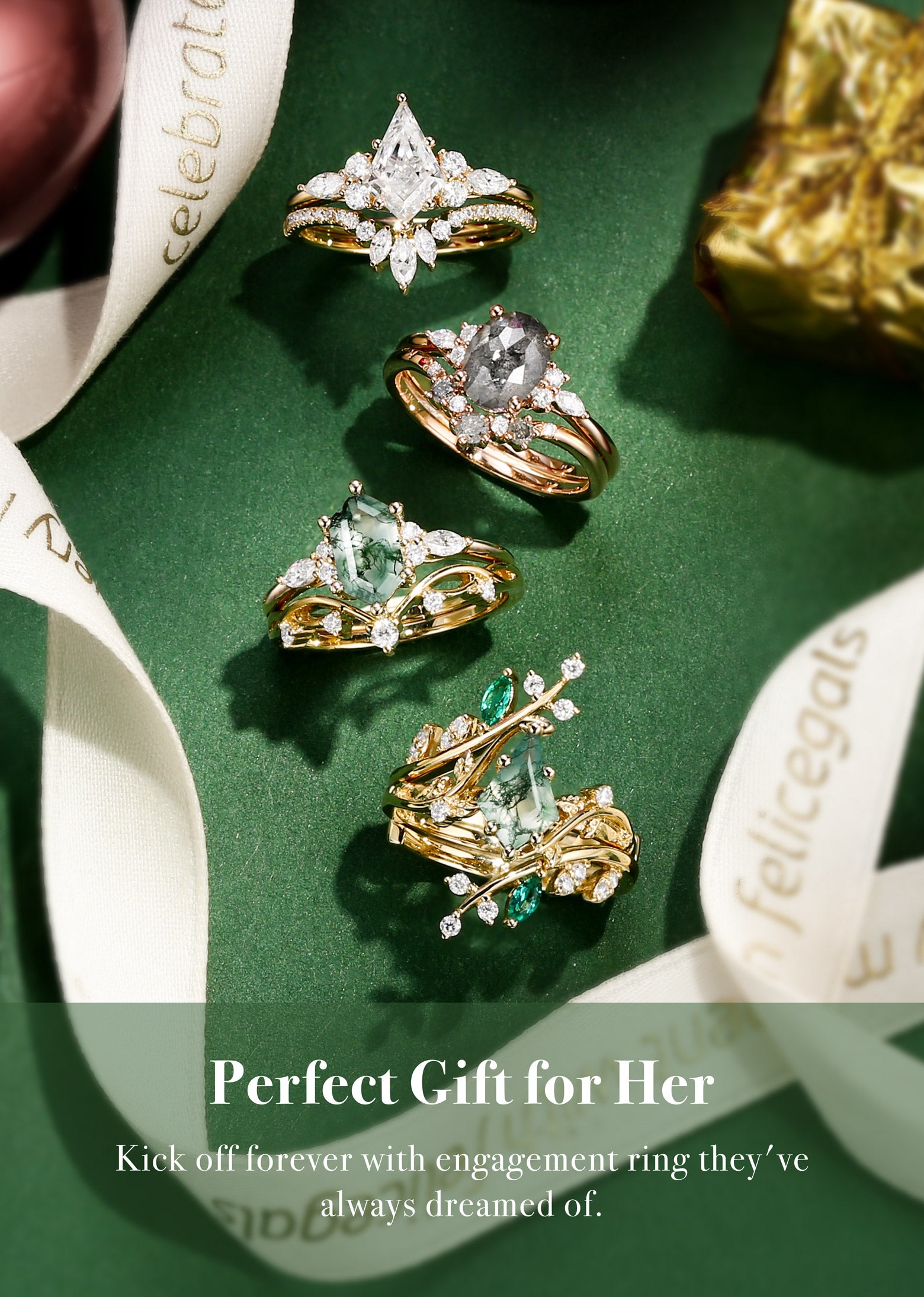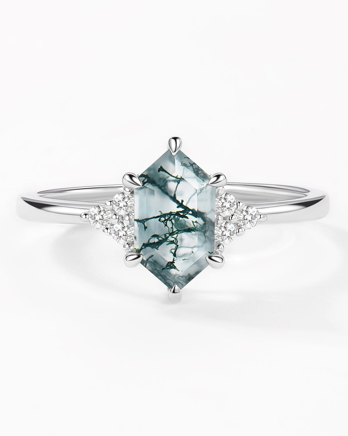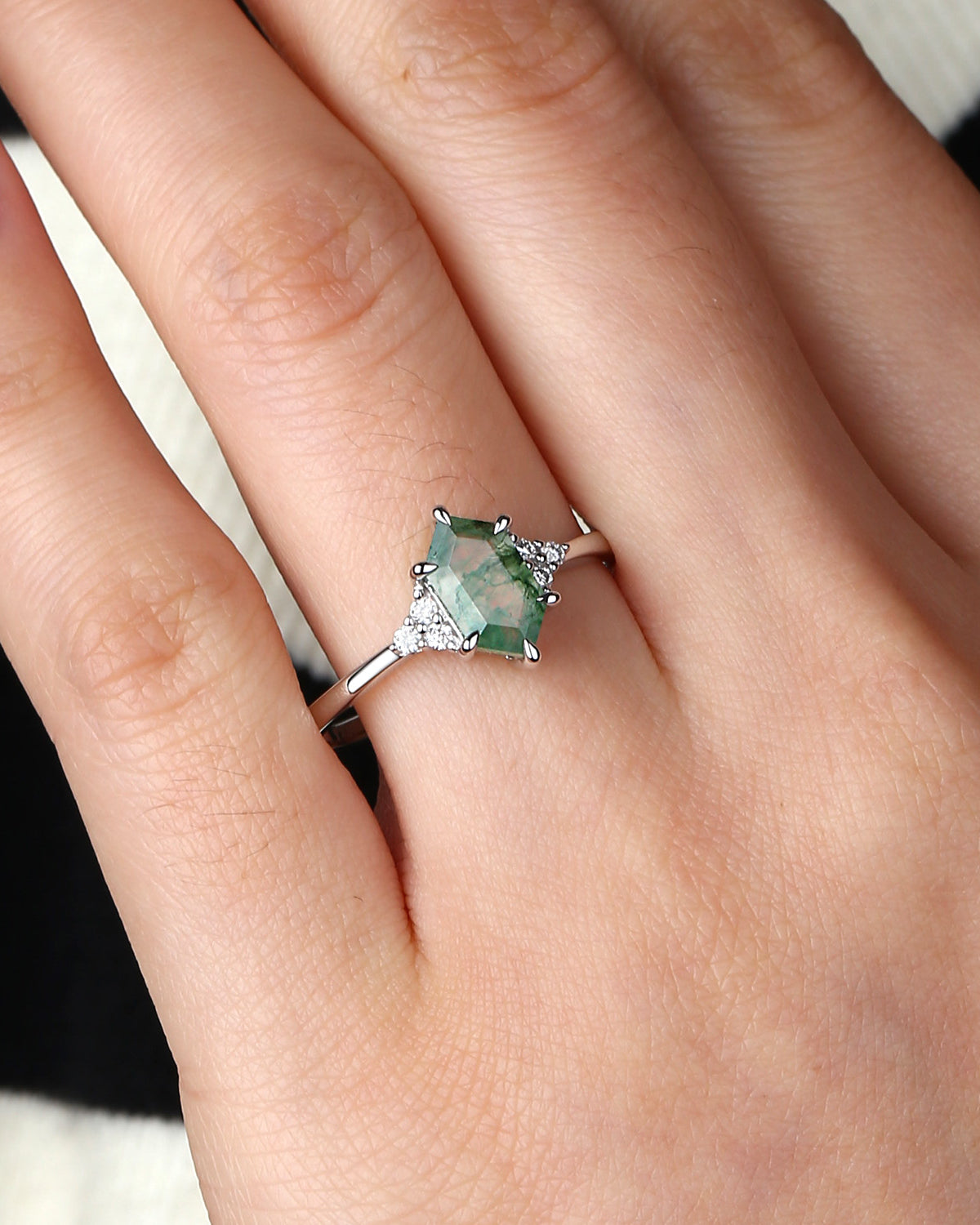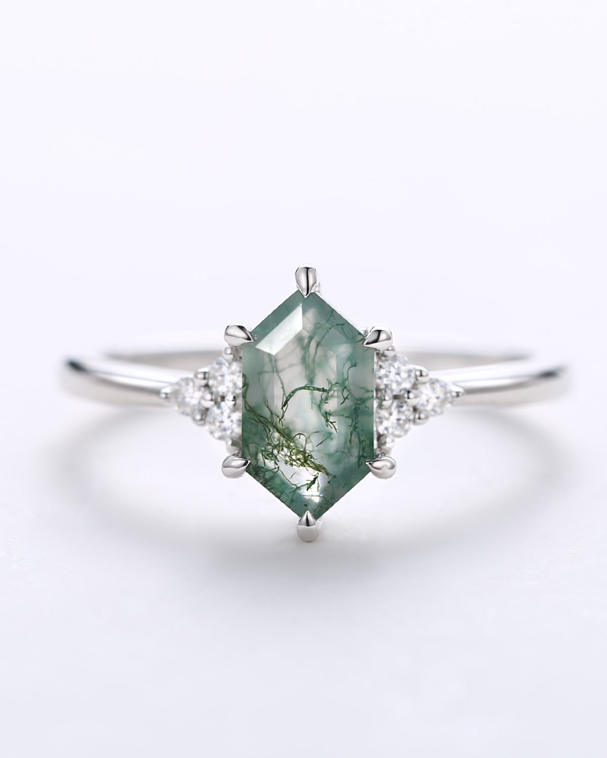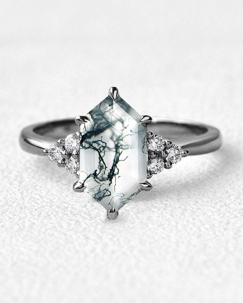 Nature Inspired - Unique Kite Cut Moss Agate Leafy Bridal Ring Sets 2pcs - Willow