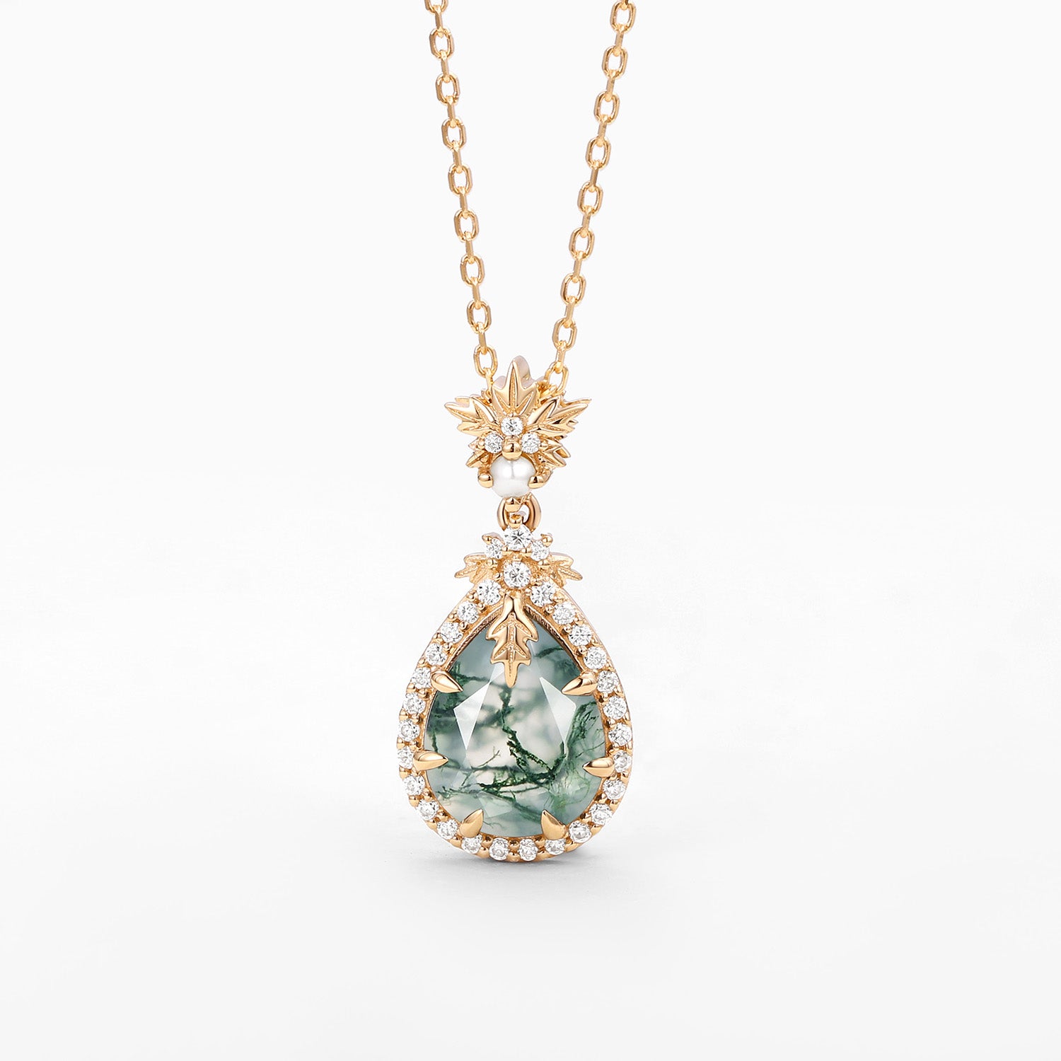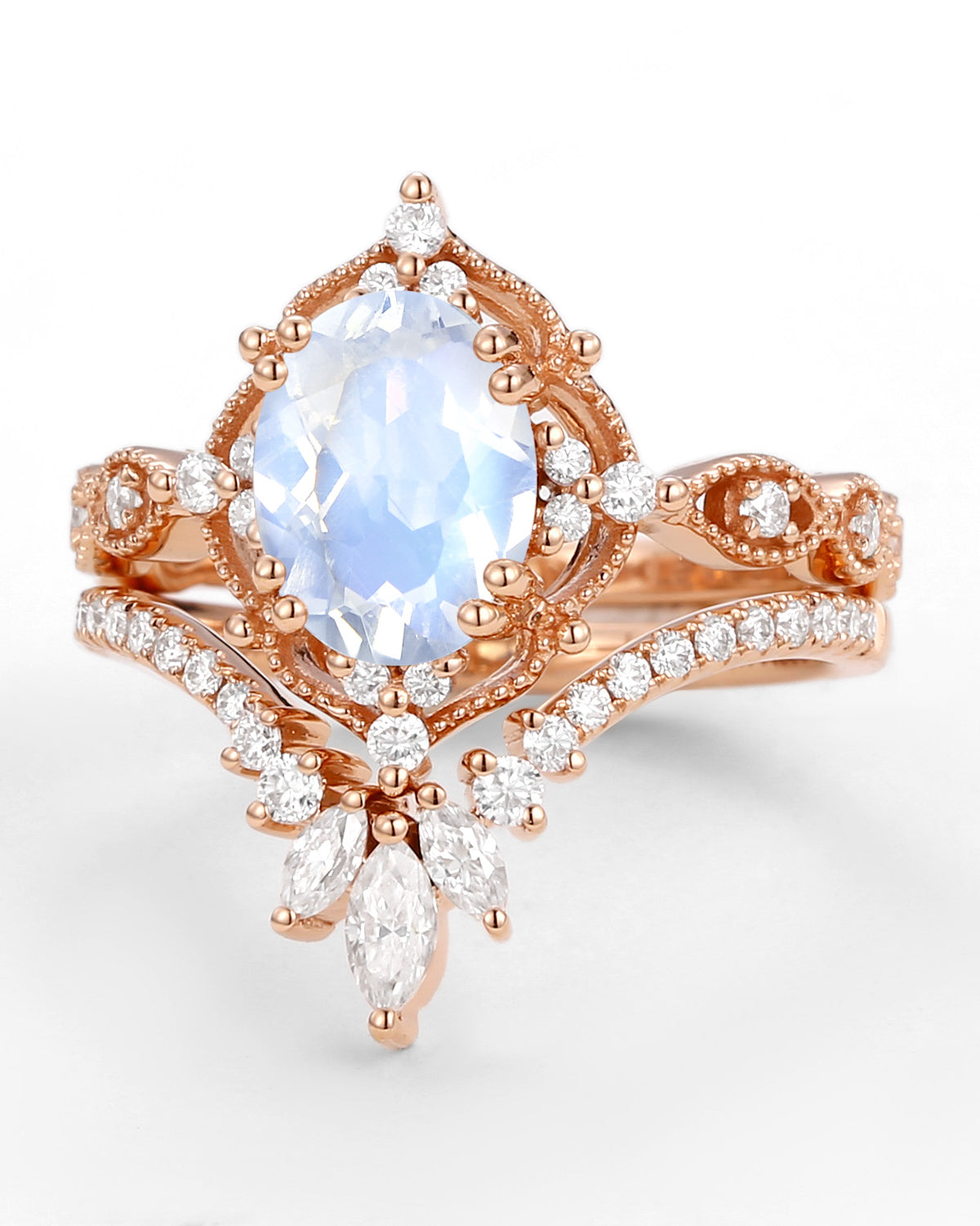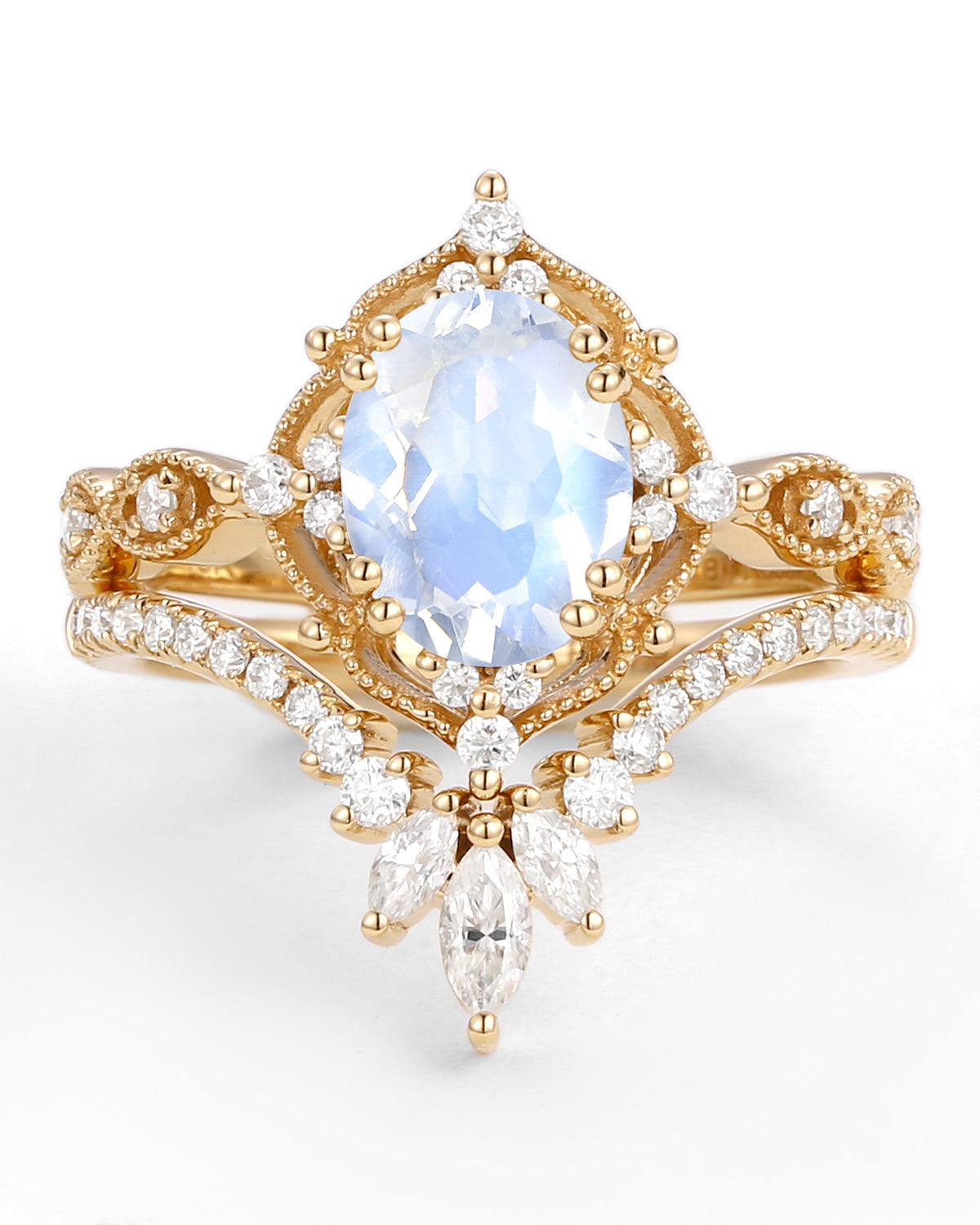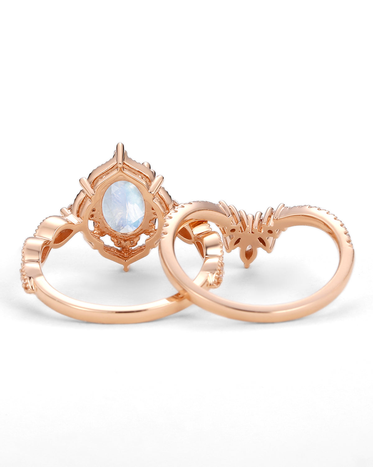 Nature Inspired - Unique Kite Cut Moss Agate Leafy Bridal Ring Sets 2pcs - Willow