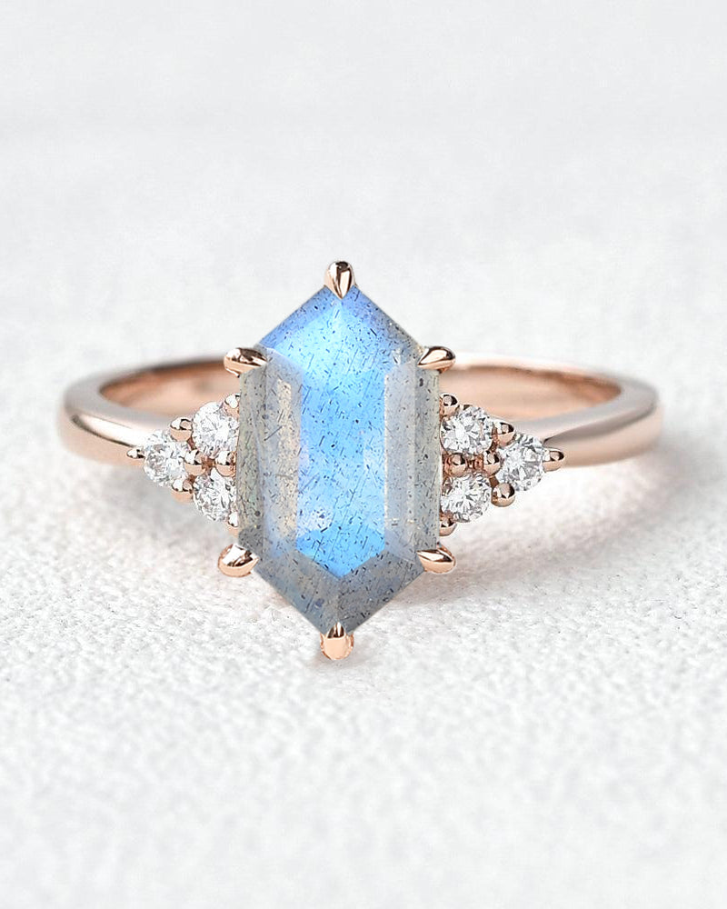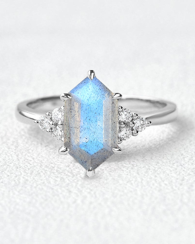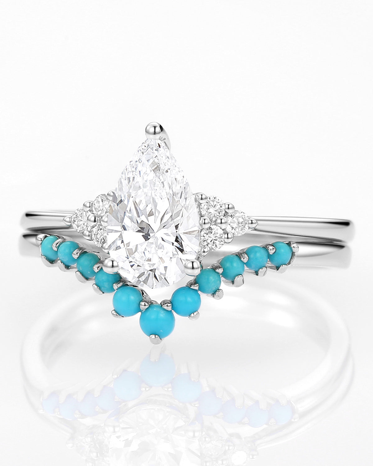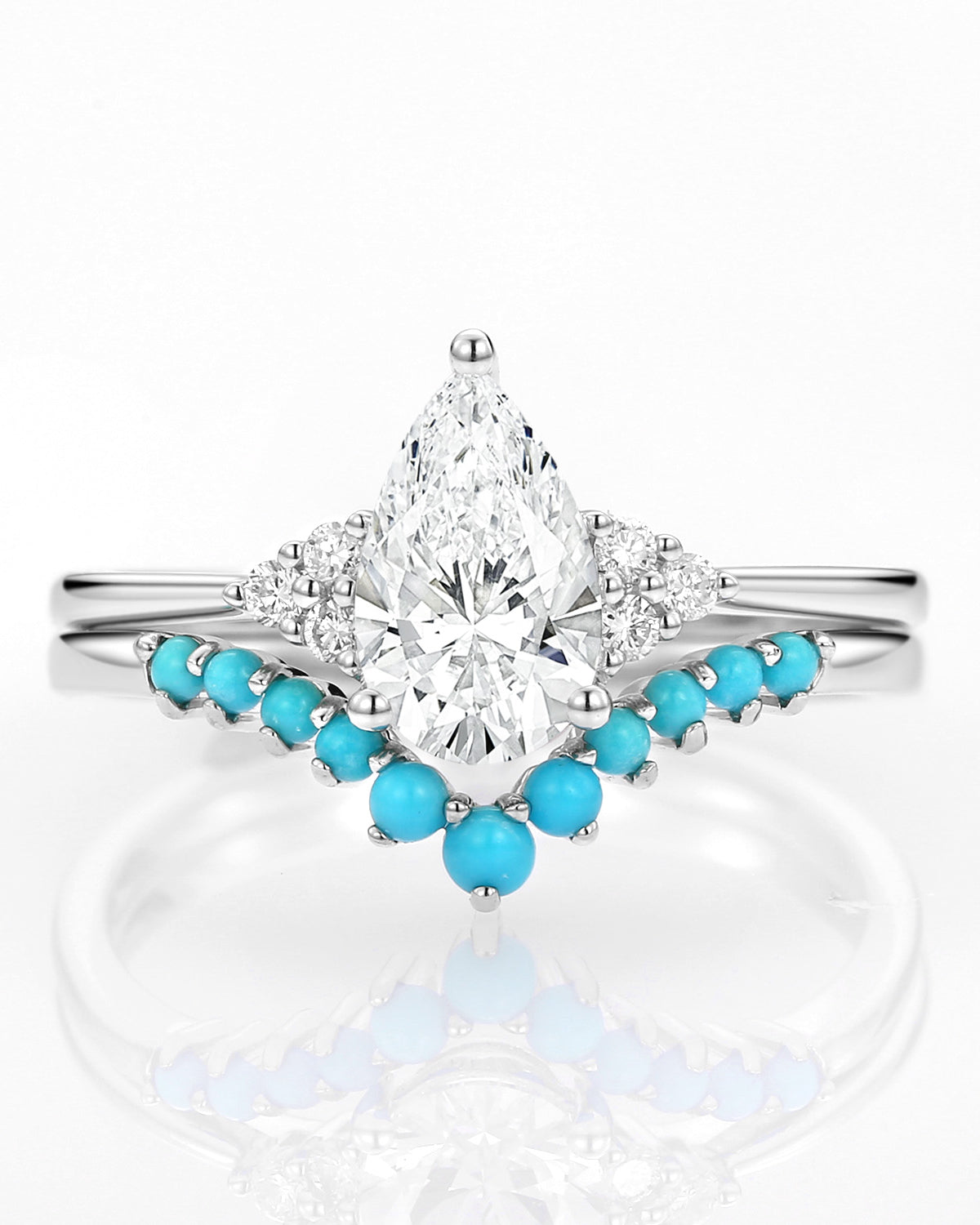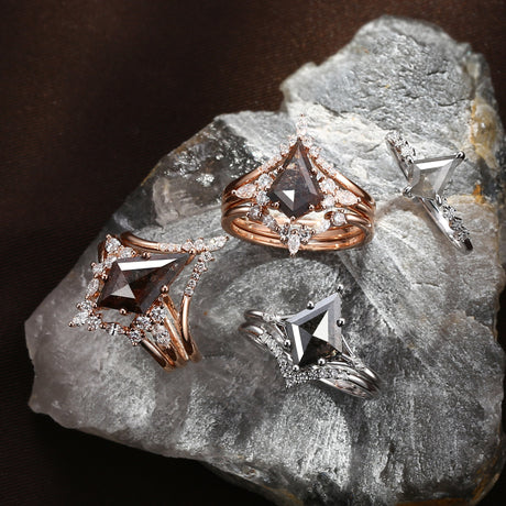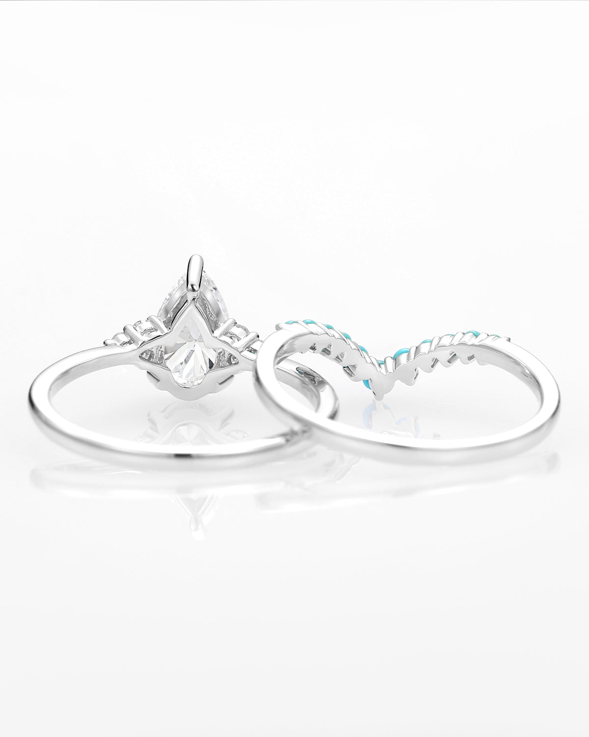 Nature Inspired - Unique Kite Cut Moss Agate Leafy Bridal Ring Sets 2pcs - Willow