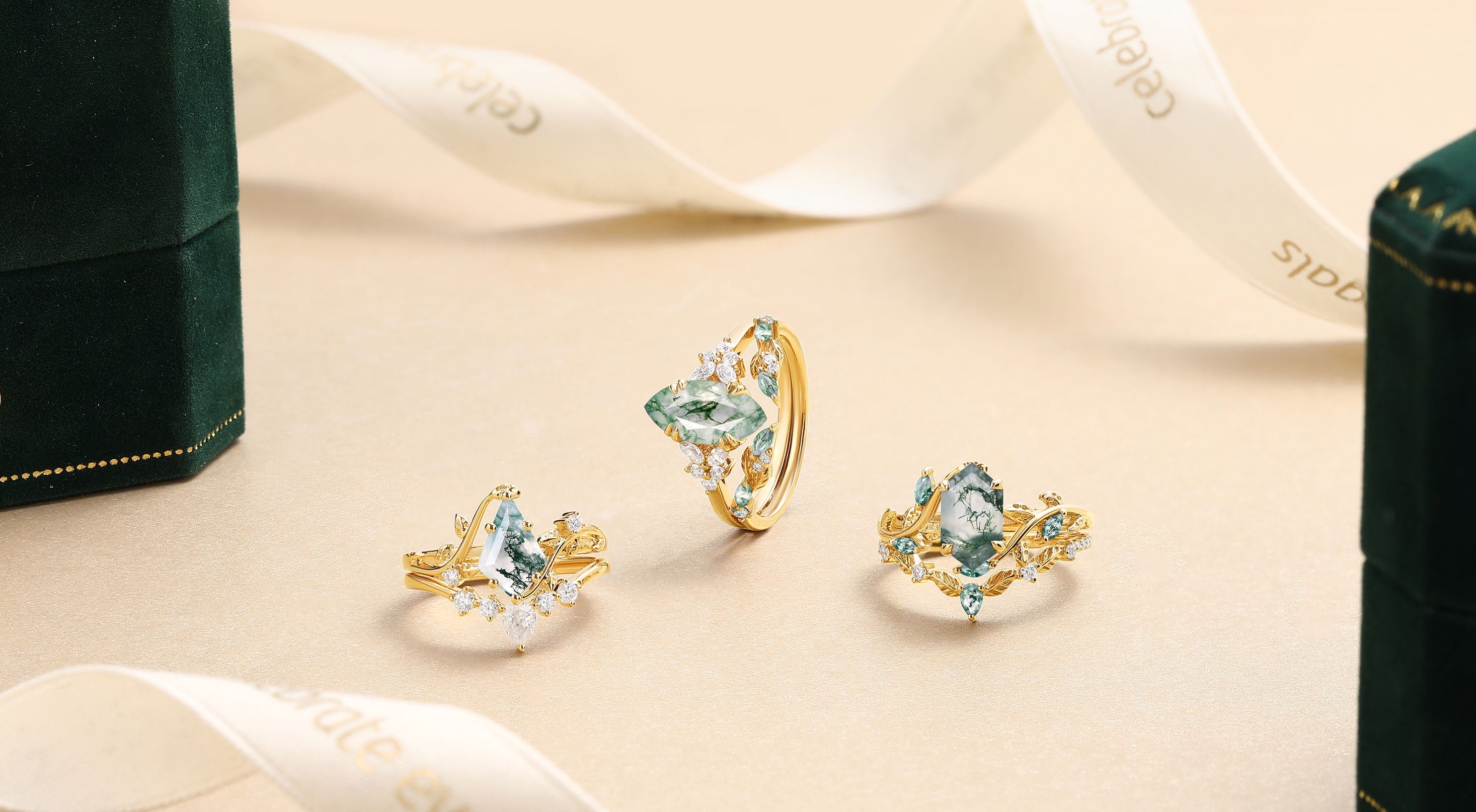 A tribute to nature’s charm, our Moss Agate Engagement Ring speaks to your deep wild bond. Delicate mossy patterns honor a love as authentic, calm, and timeless as the natural world you adore.