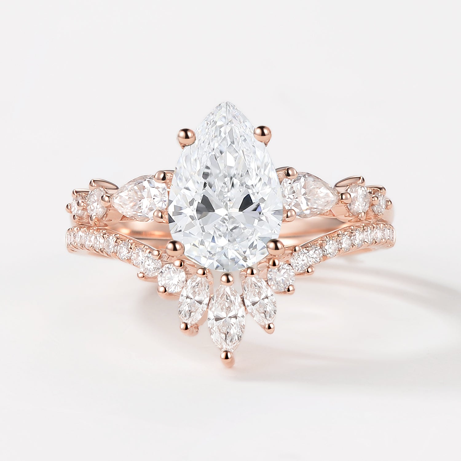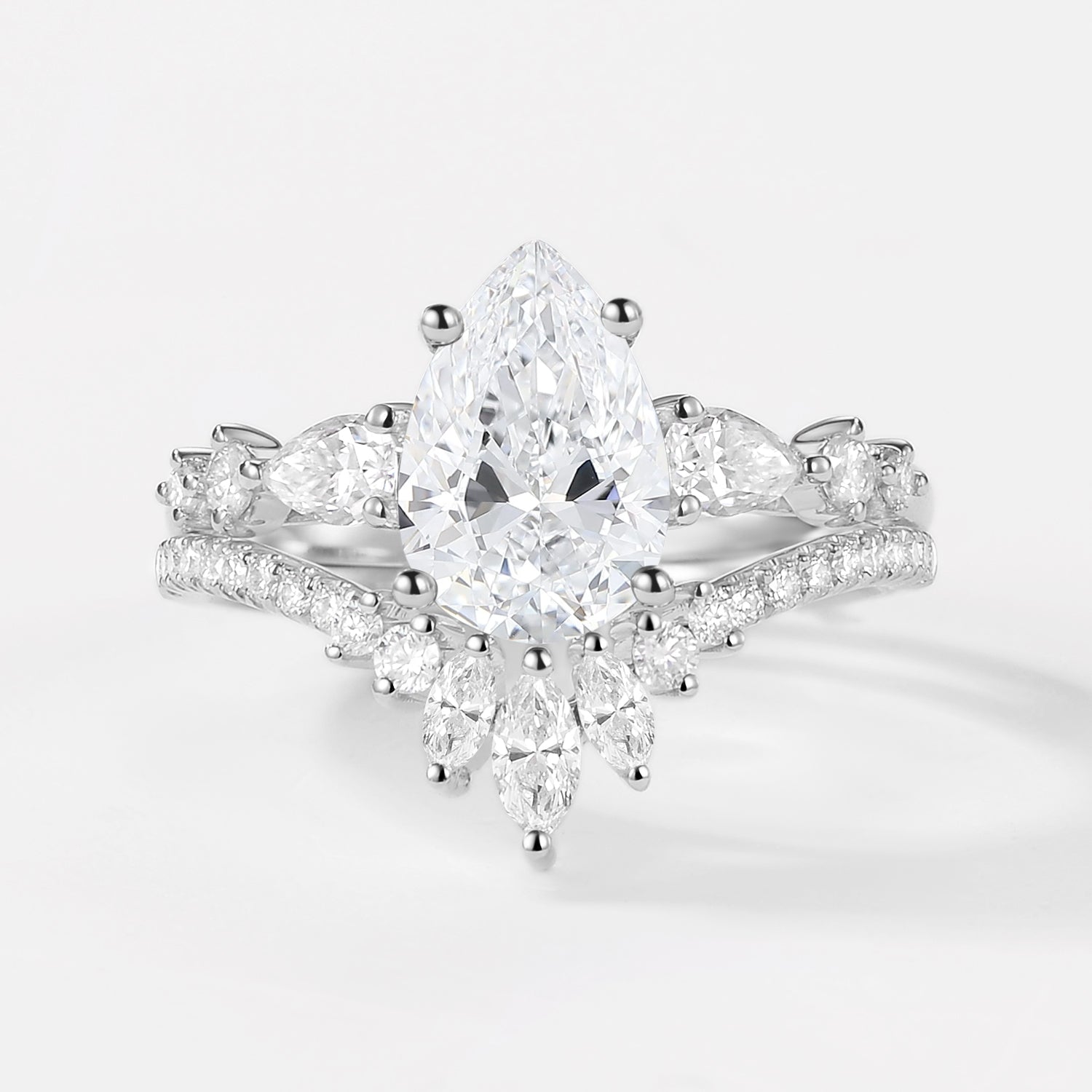2.0ct Pear Cut Lab Grown Diamond Engagement Ring Set 2pcs