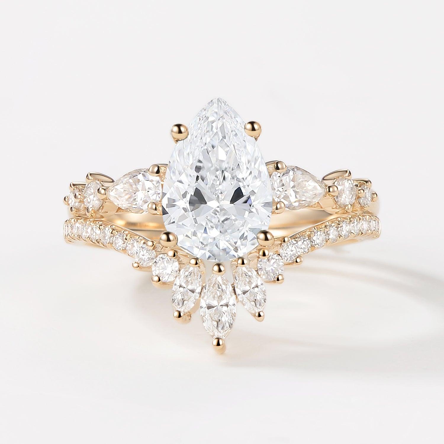Felicegals Pear Shaped Lab Diamond Cluster Gold Ring Set 2pcs Lab Diamond Pear Cluster Ring Anniversary Gift
