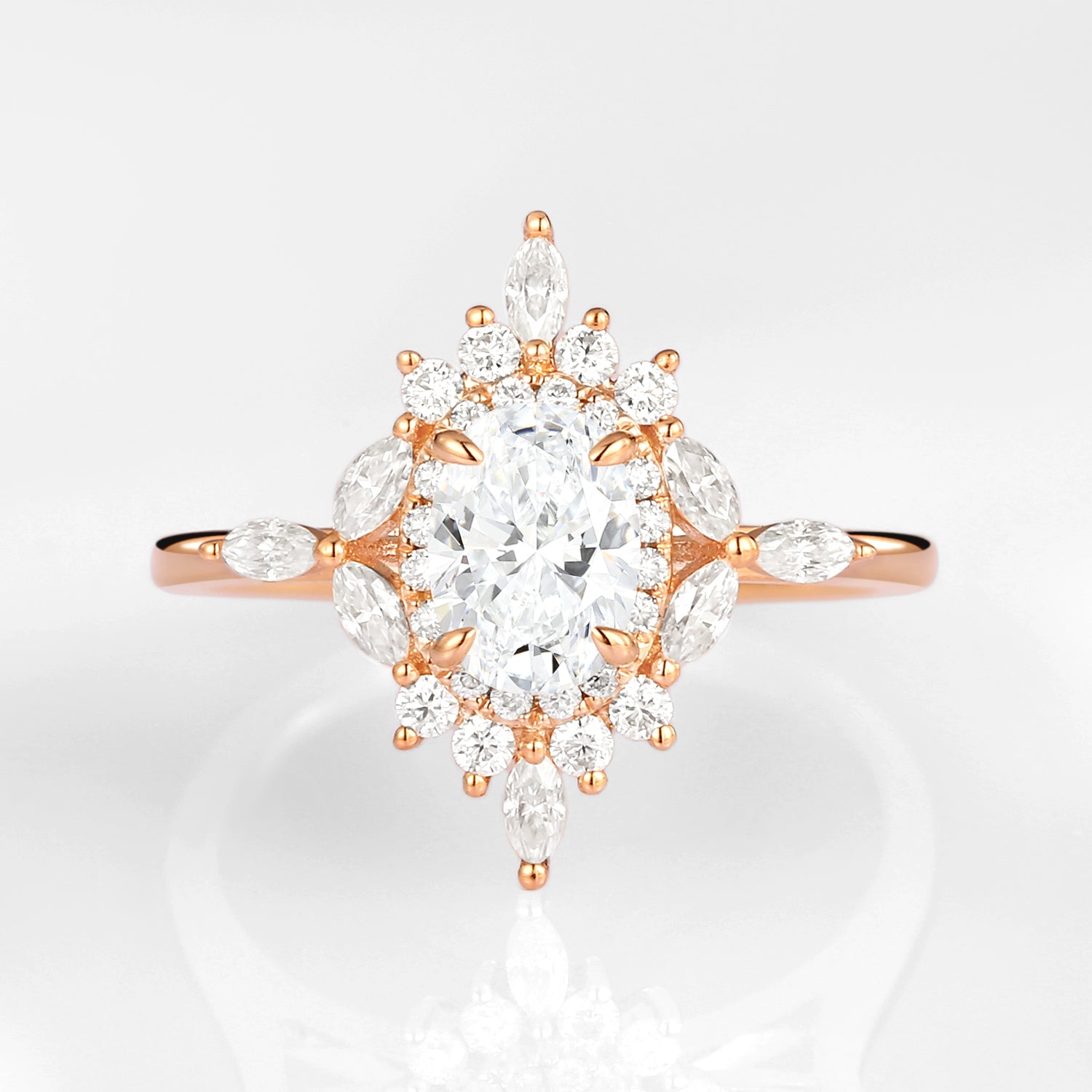 1.0ct Oval Floral Vintage Lab Grown Diamond Engagement Ring