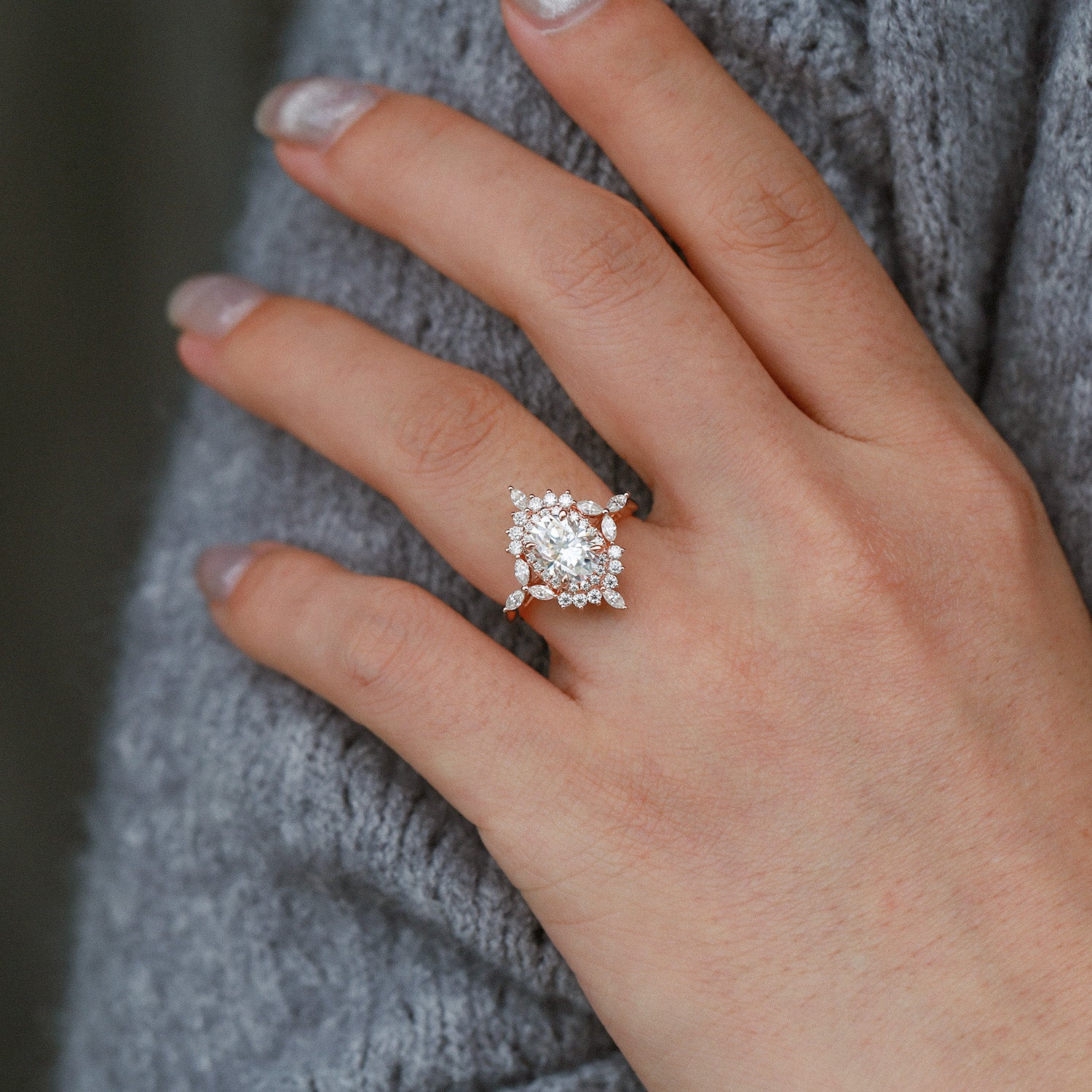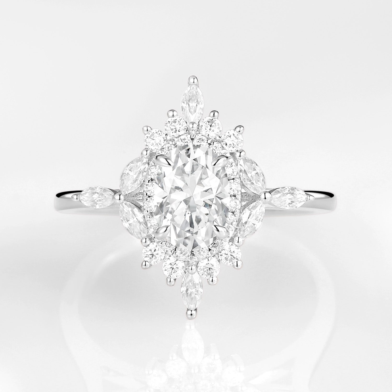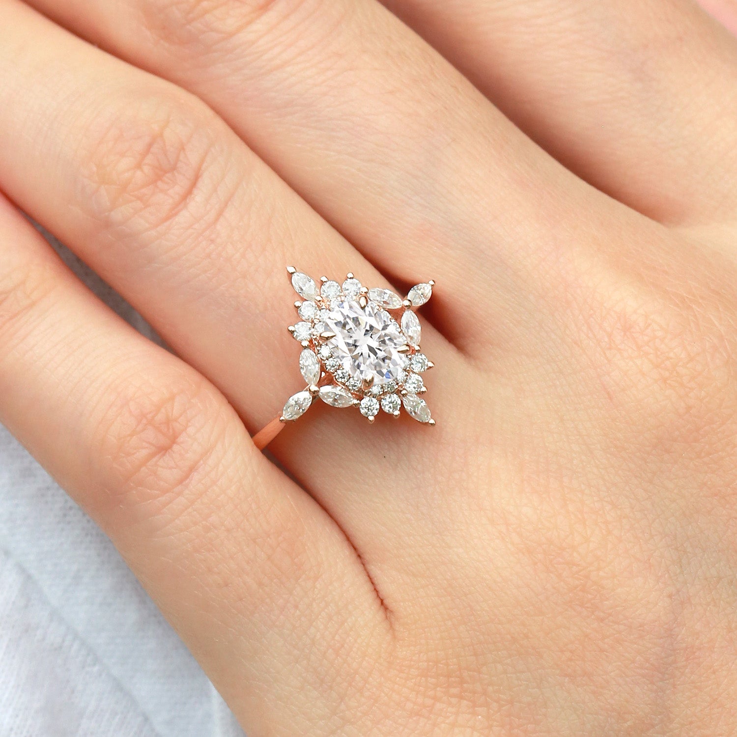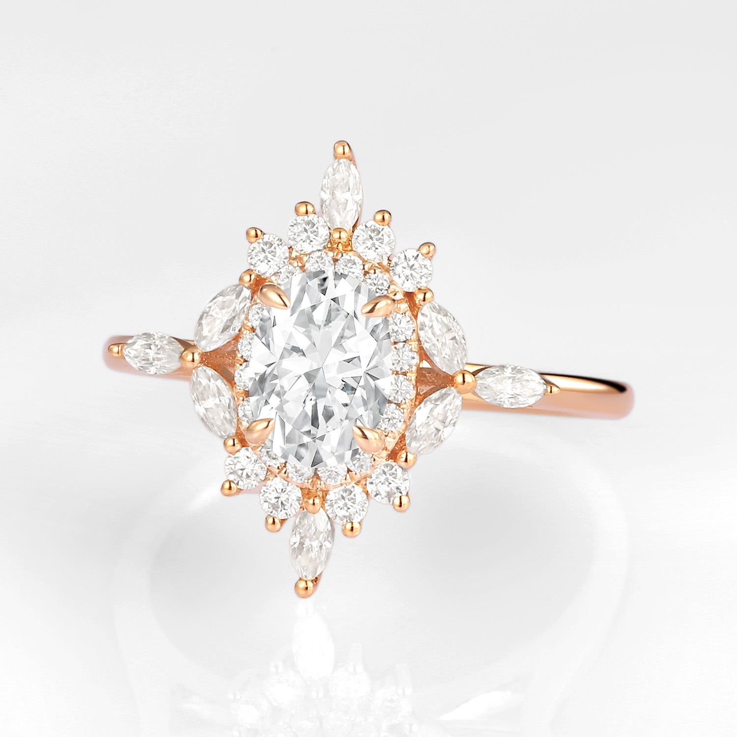 Felicegals 1.0ct Oval Colourless Moissanite Engagement Ring Moissanite Stacking Wedding Ring Flower Marquise Moissanite Halo Ring Antique