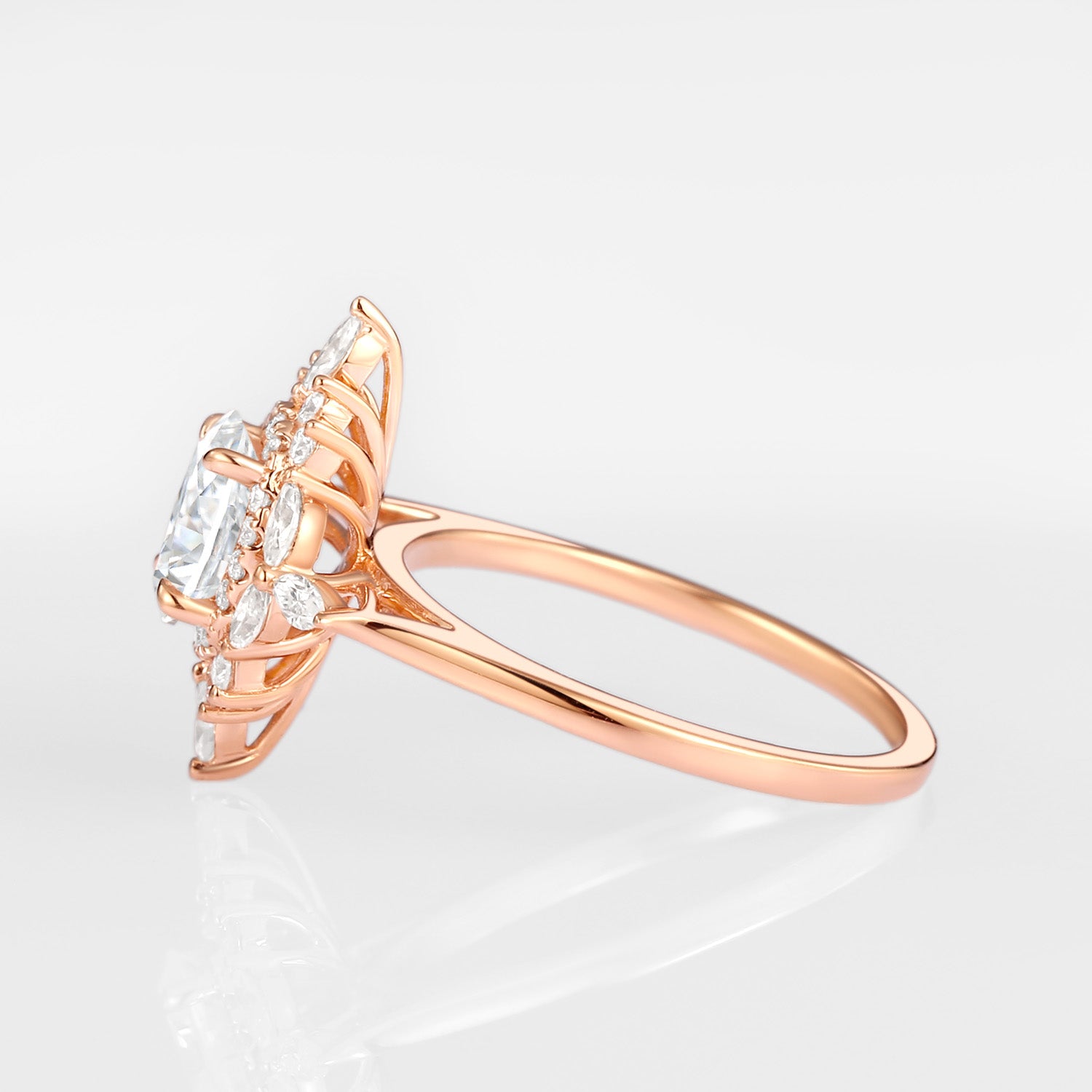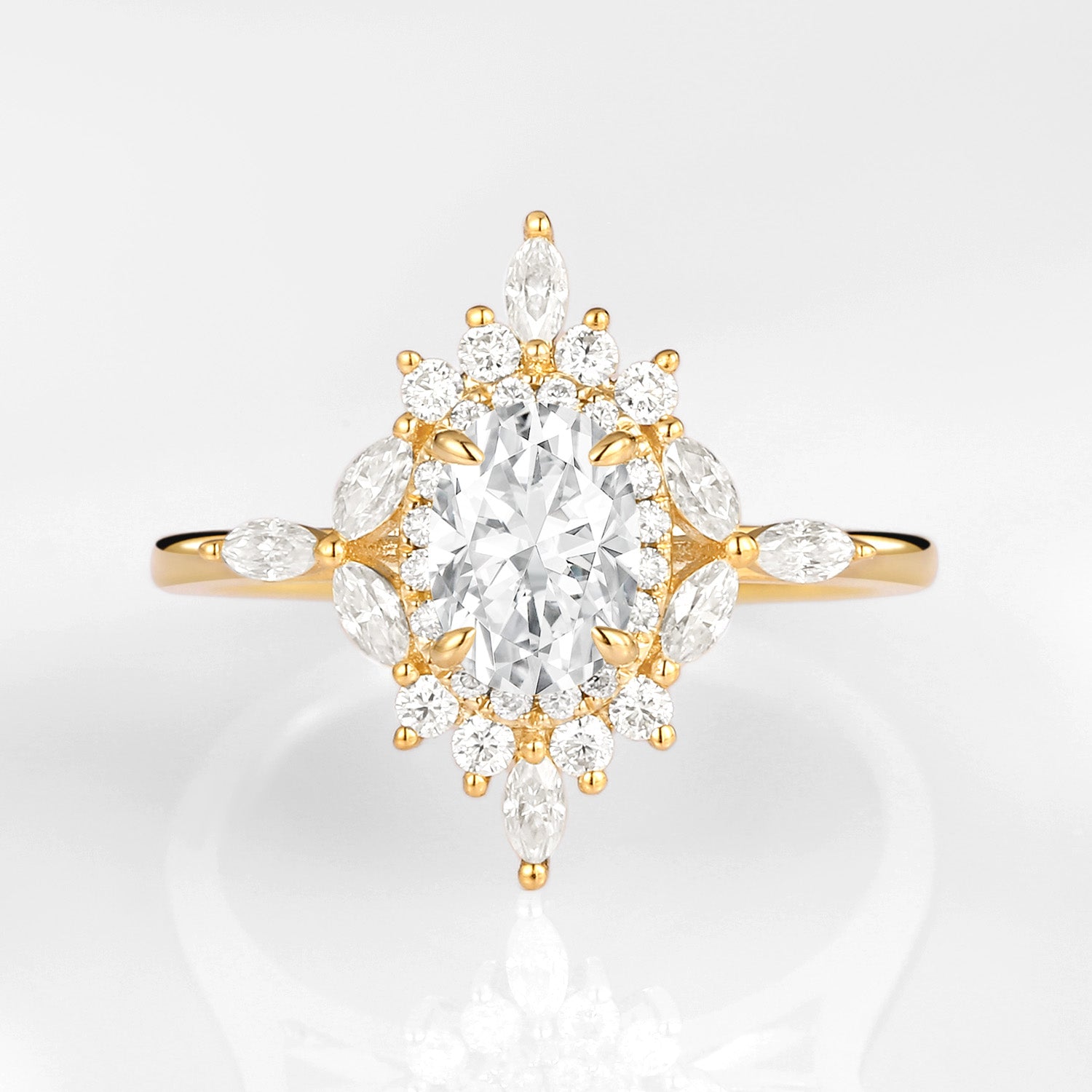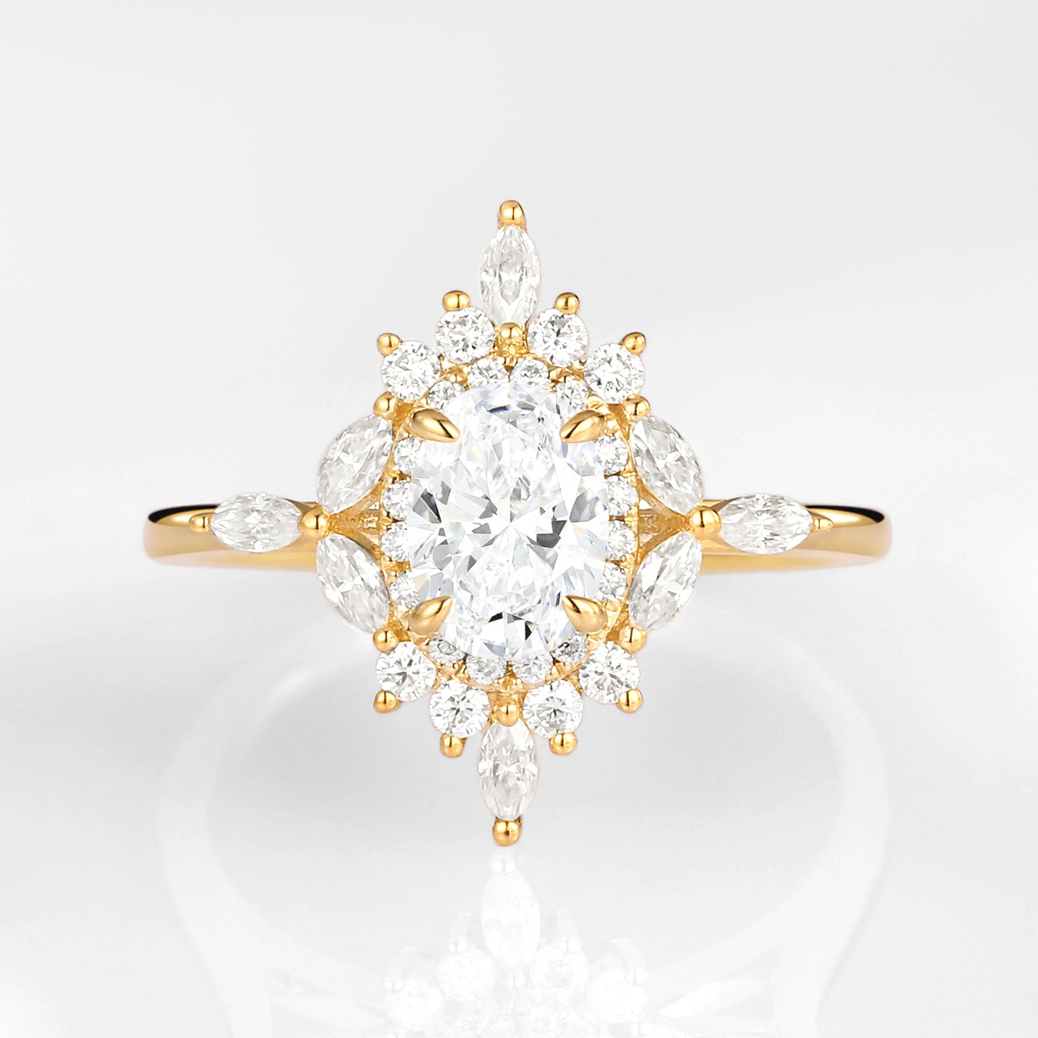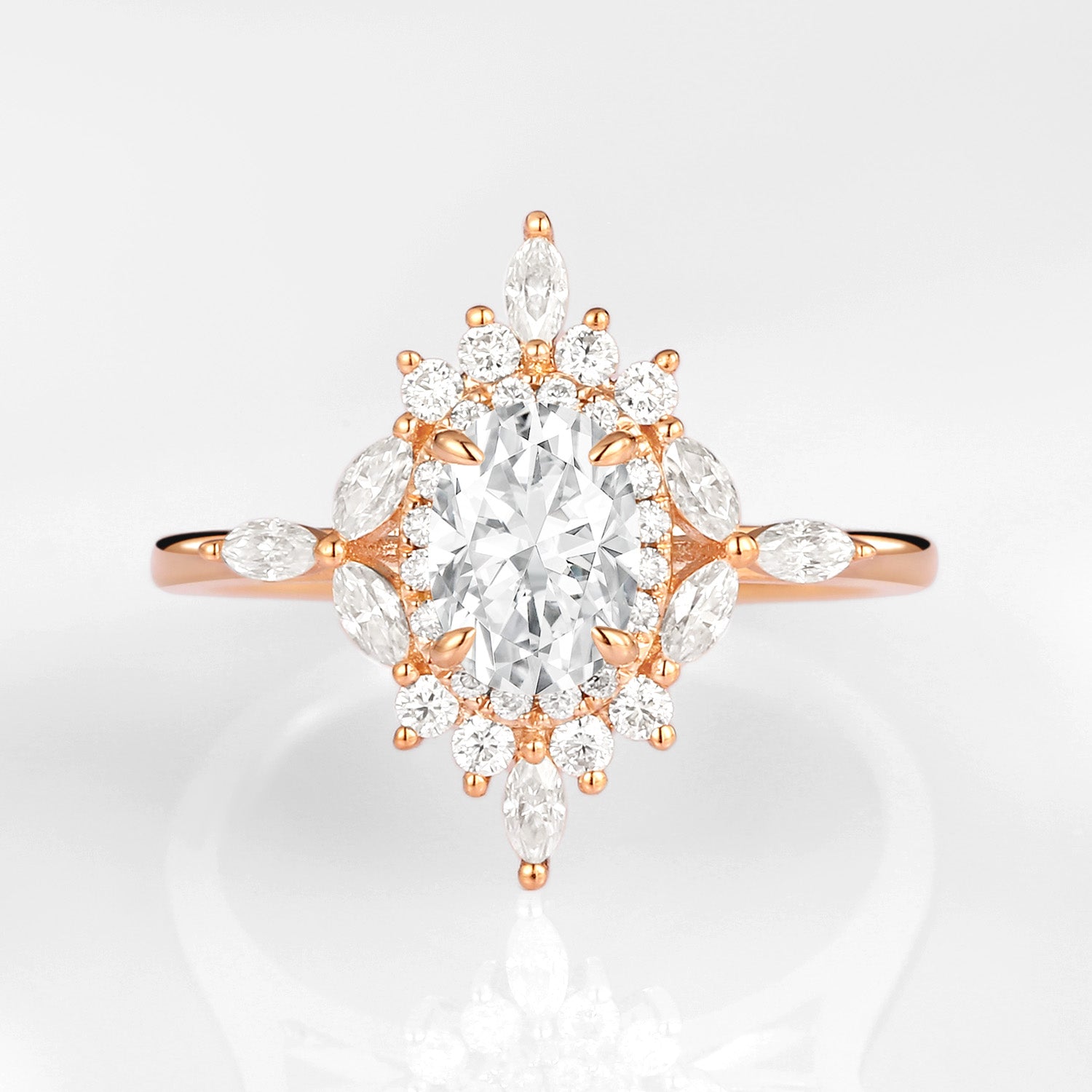 Felicegals 1.0ct Oval Colourless Moissanite Engagement Ring Moissanite Stacking Wedding Ring Flower Marquise Moissanite Halo Ring Antique
