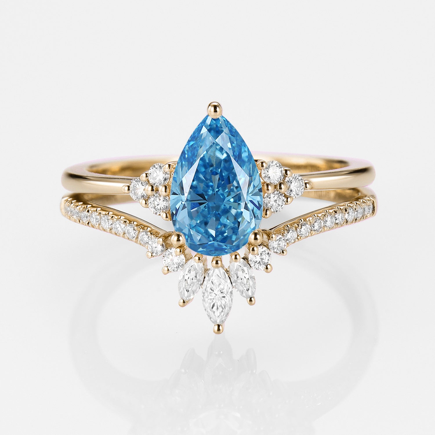 1.0ct Pear Blue Lab Grown Diamond Vintage Ring Set 2pcs - Lydia