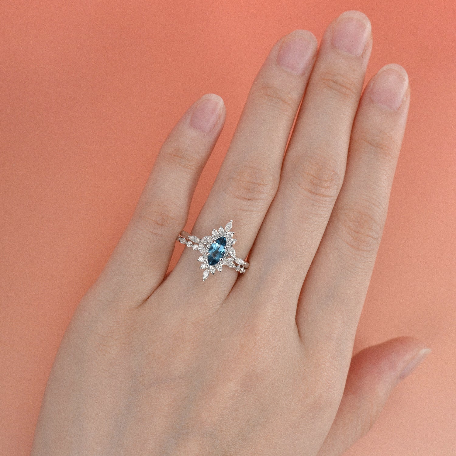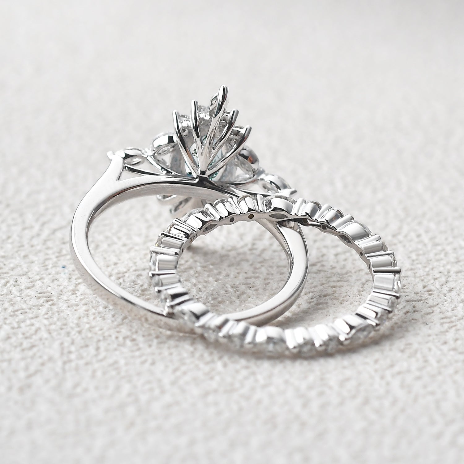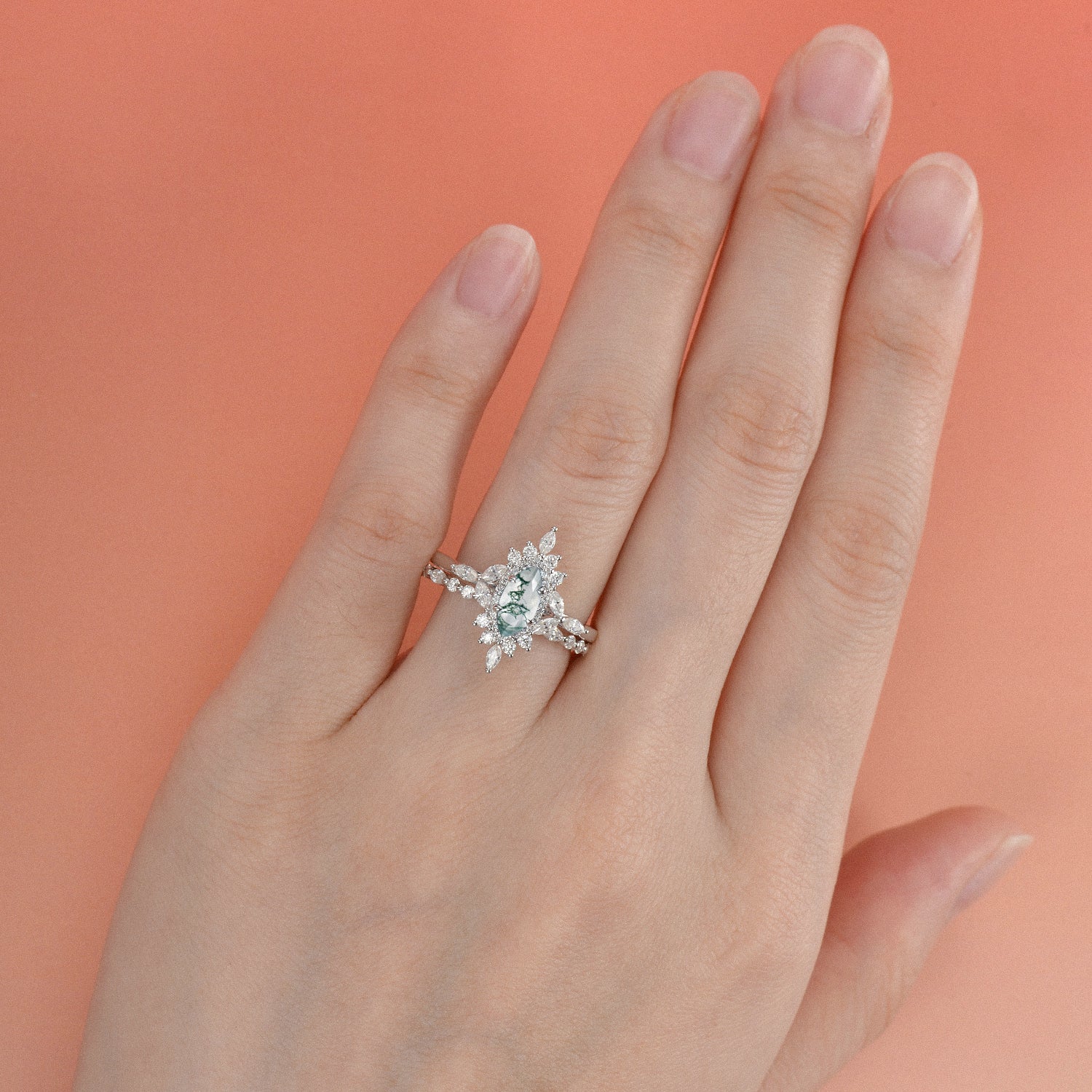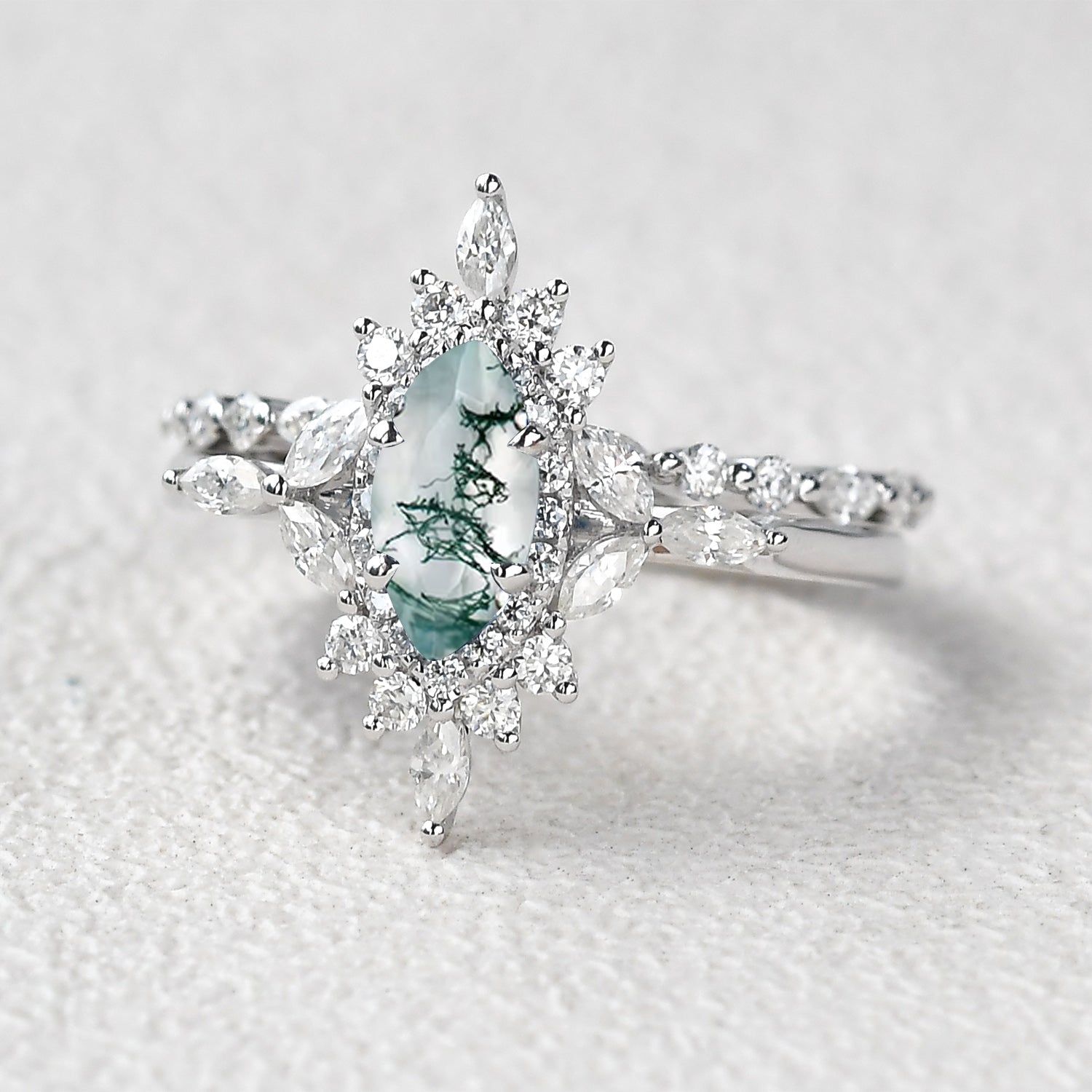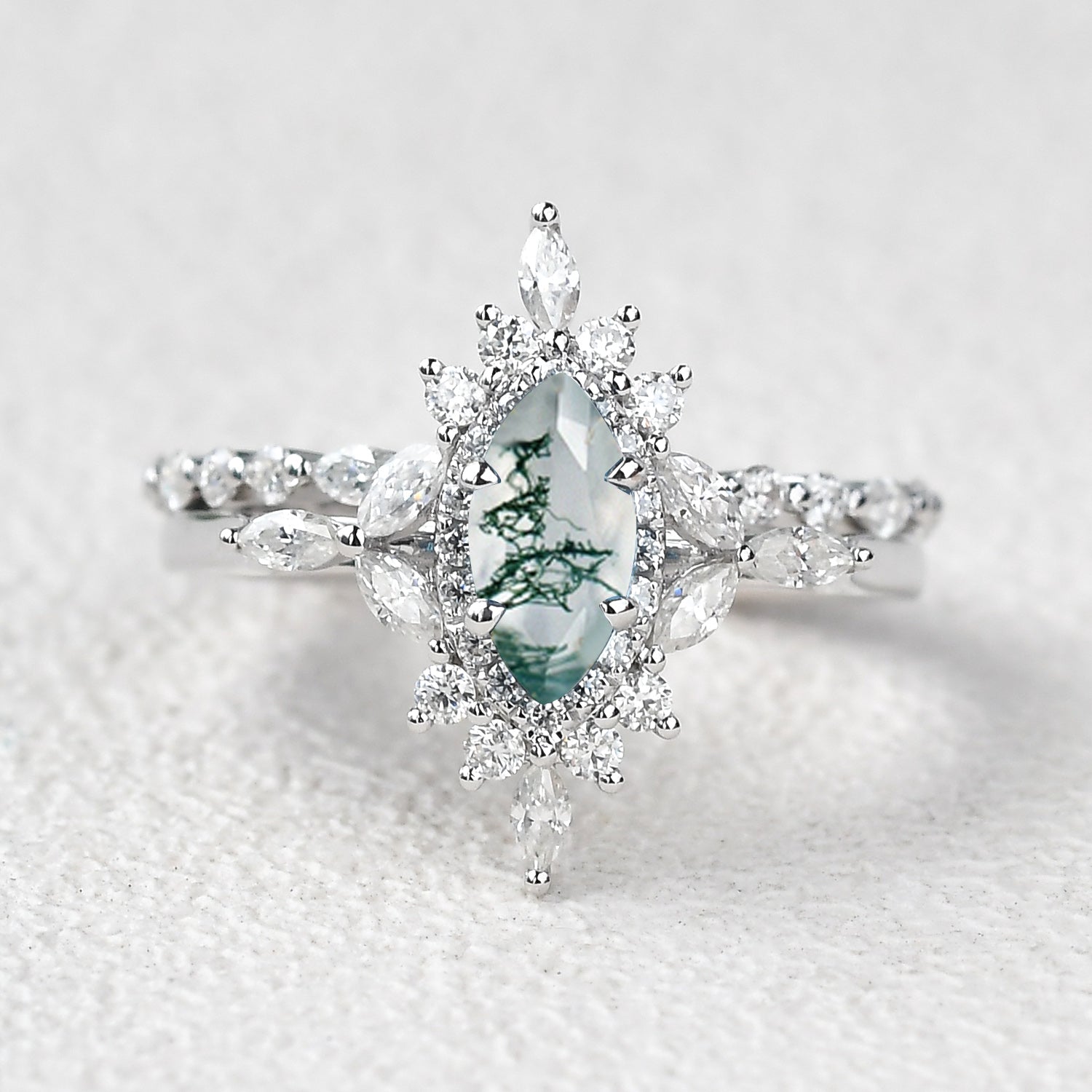 1.0ct Marquise Cut Moss Agate Cluster Vintage Engagement Ring Set 2pcs
