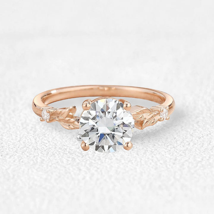 1.0ct Round Cut Moissanite Cute Leafy Engagement Ring