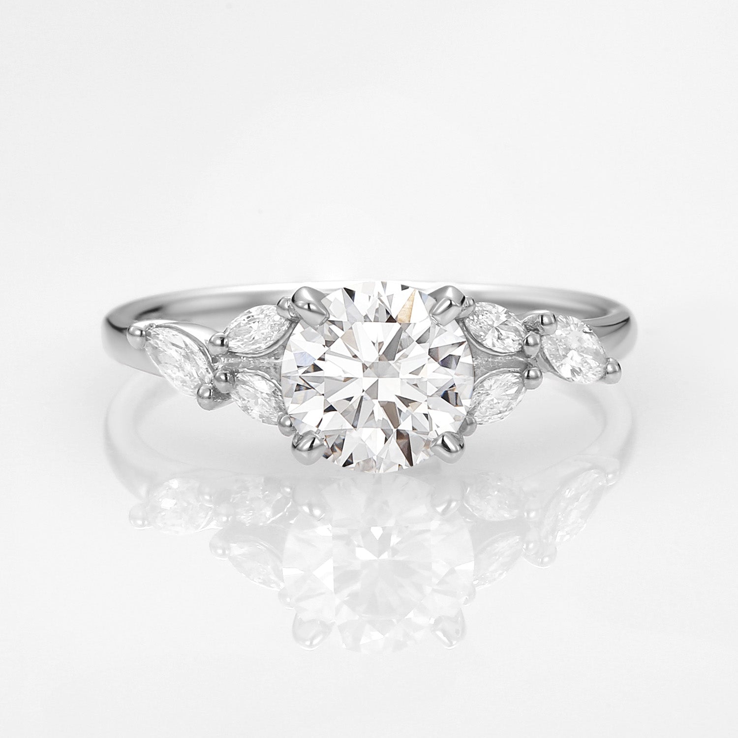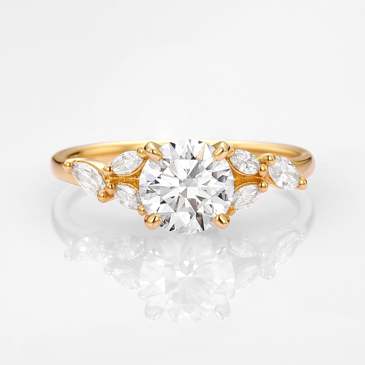 Felicegals 1.0ct Round Lab Grown Diamond Gold Engagement Ring Lab Diamond Ring Marquise Vintage Inspired Jewelry