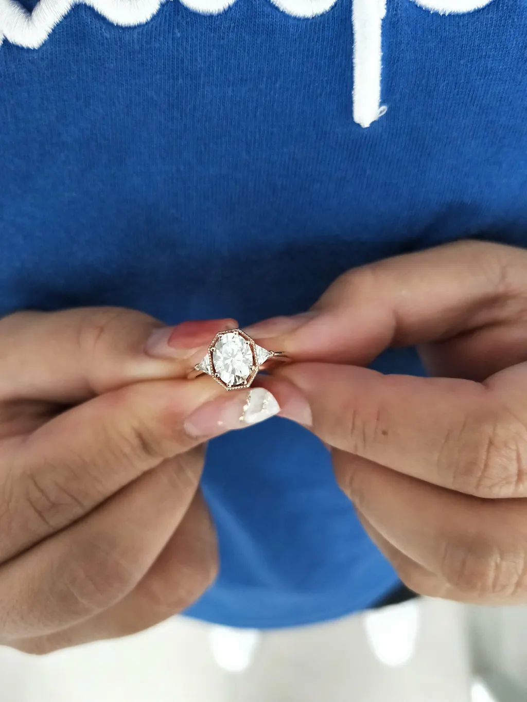 Excellent Moissanite: Oval cut moissanite, 6x8mm, about 1.50ct; 7x9mm, about 2.0ct, 8x10mm, about 4.0ct, D Stone Color (In the top best colors)