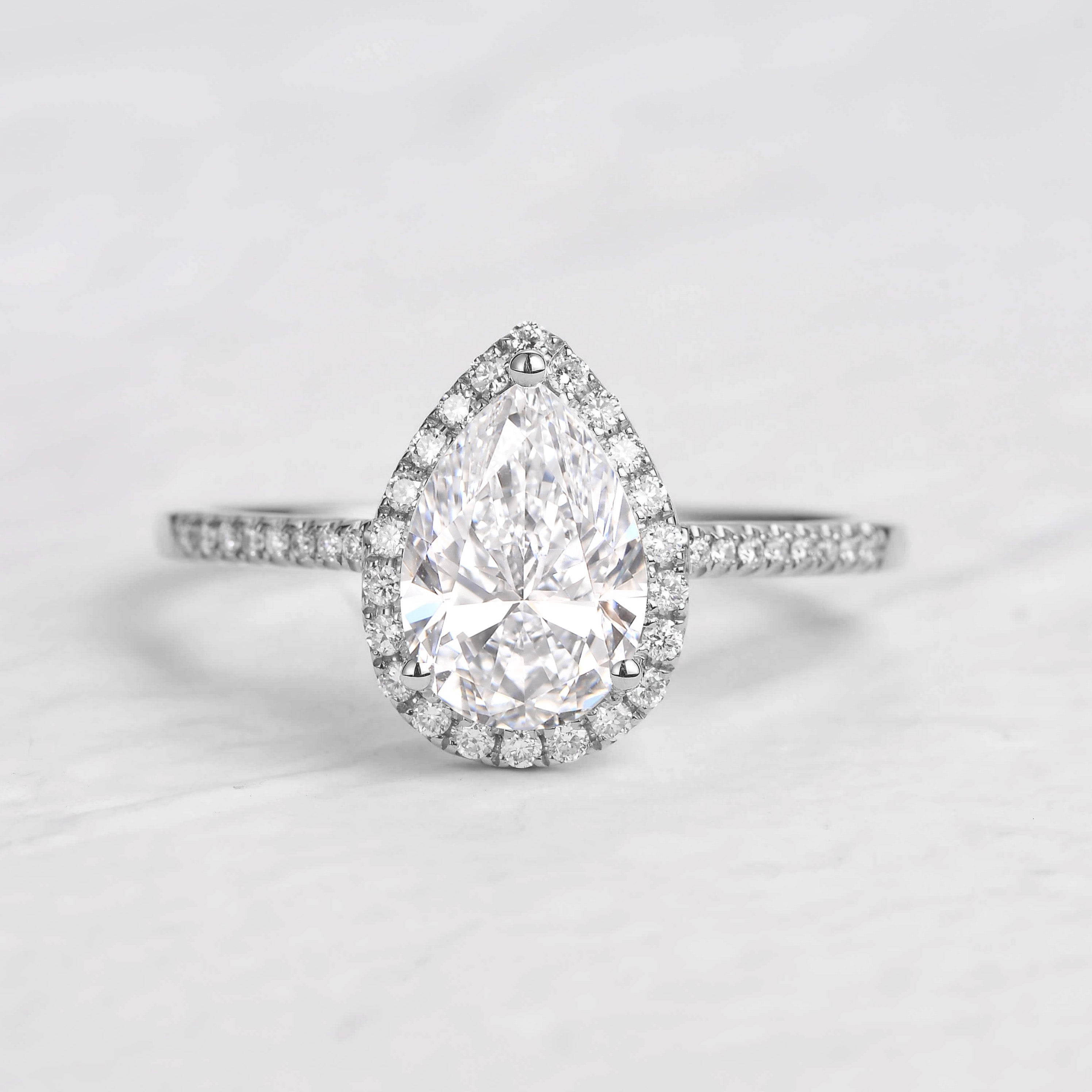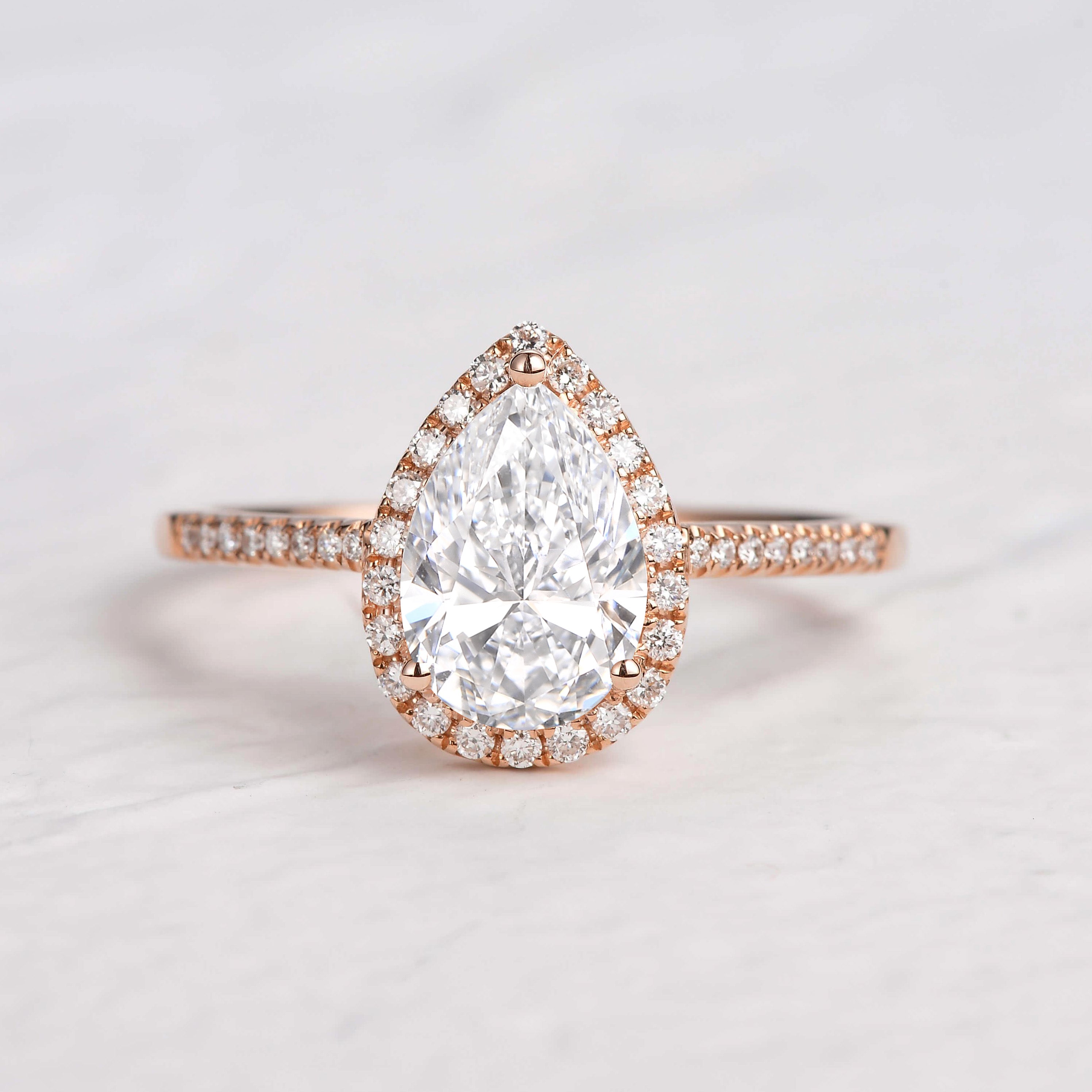 1.0-2.0ct Pear Shaped Lab Grown Diamond Classic Halo Gold Ring