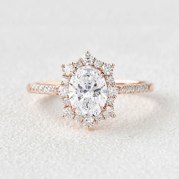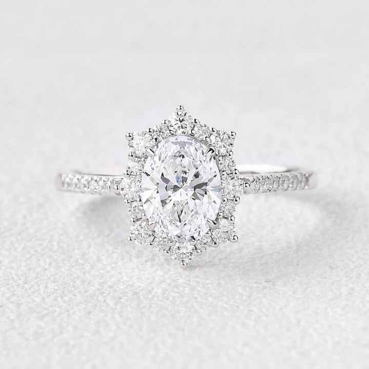 1.0-2.0ct Oval Cut Lab Grown Diamond Halo Engagement Ring