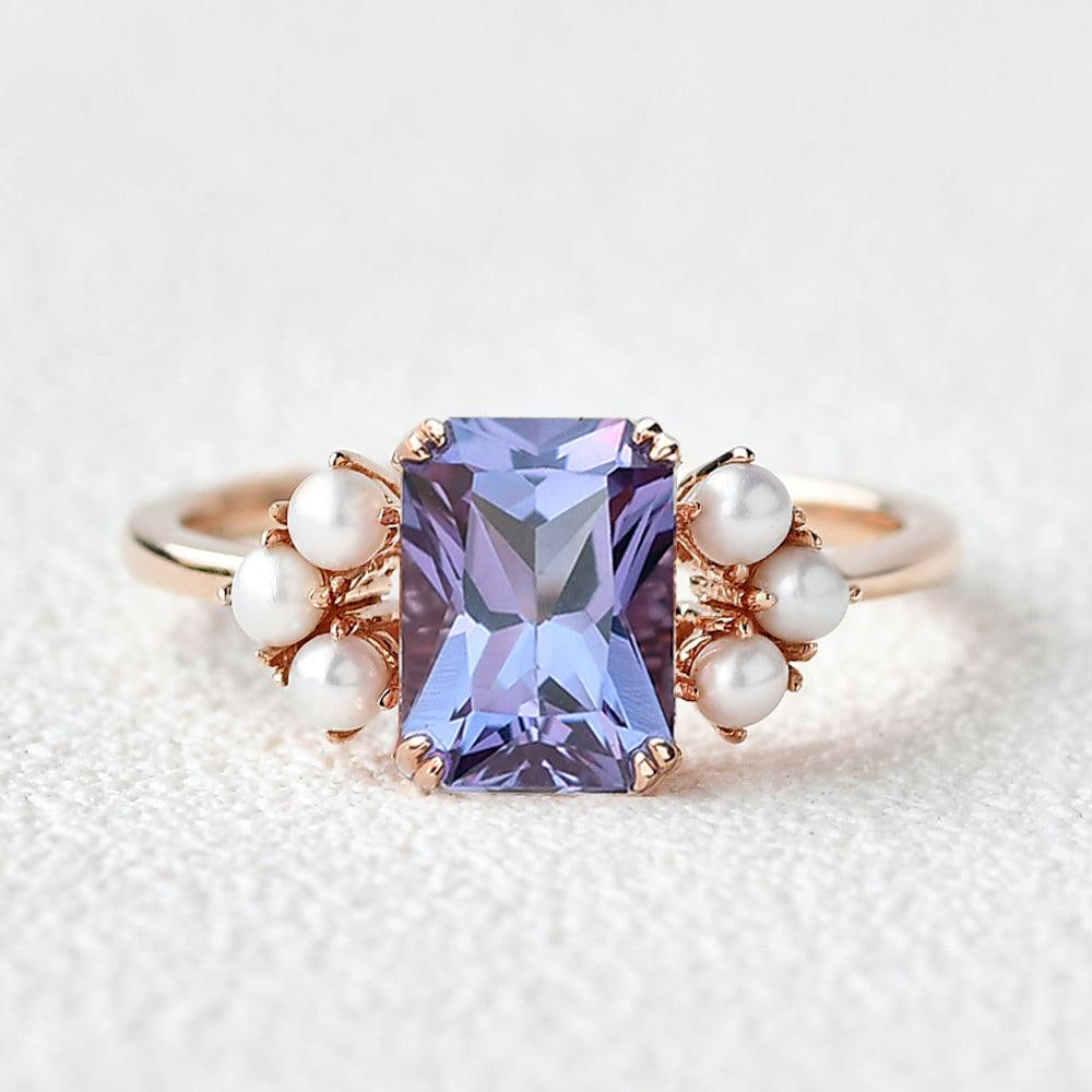 2.0ct Radiant Cut Alexandrite Vintage Cluster Ring
