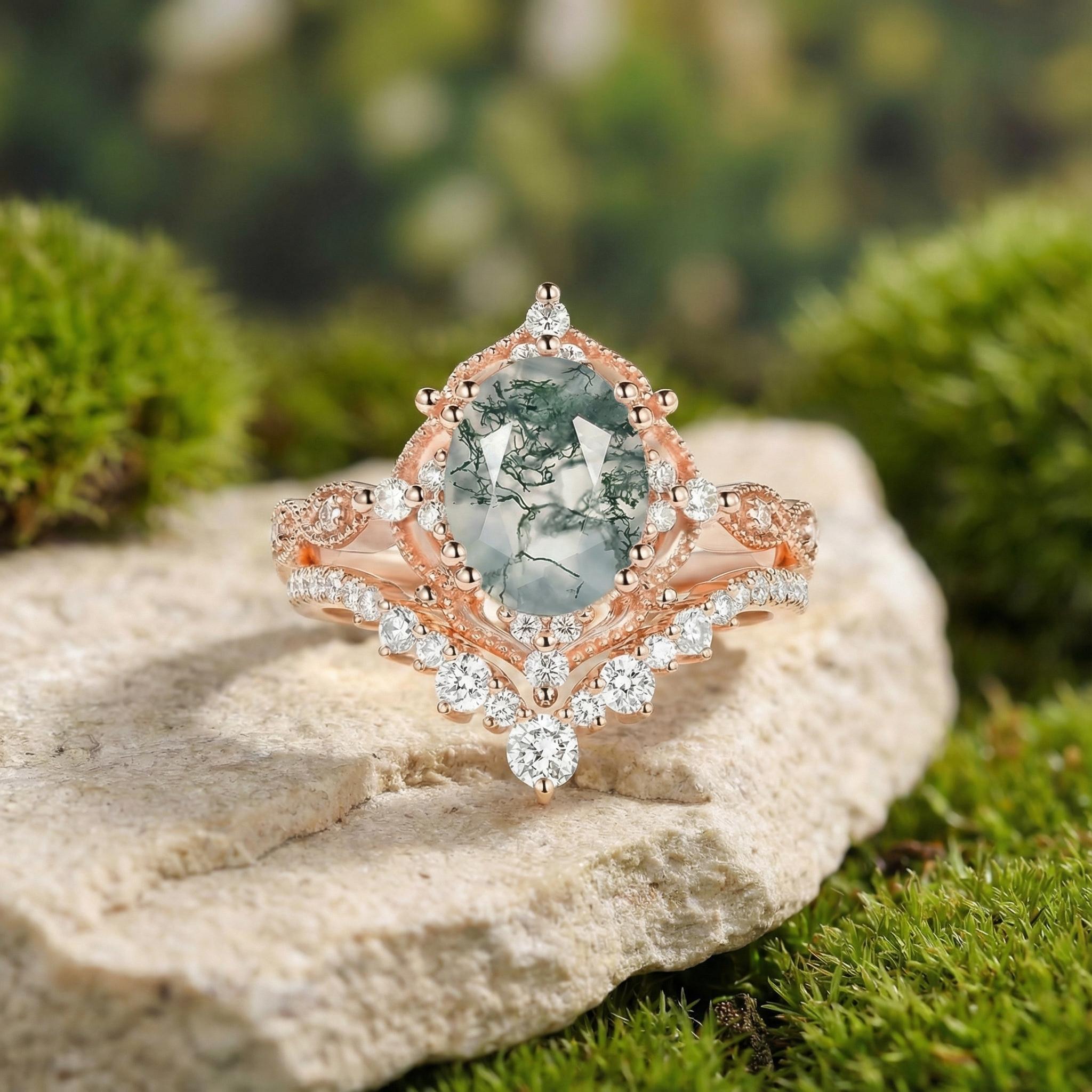 2.0ct Signature Vintage Moss Agate Big Ring Set 2pcs - Charlotte