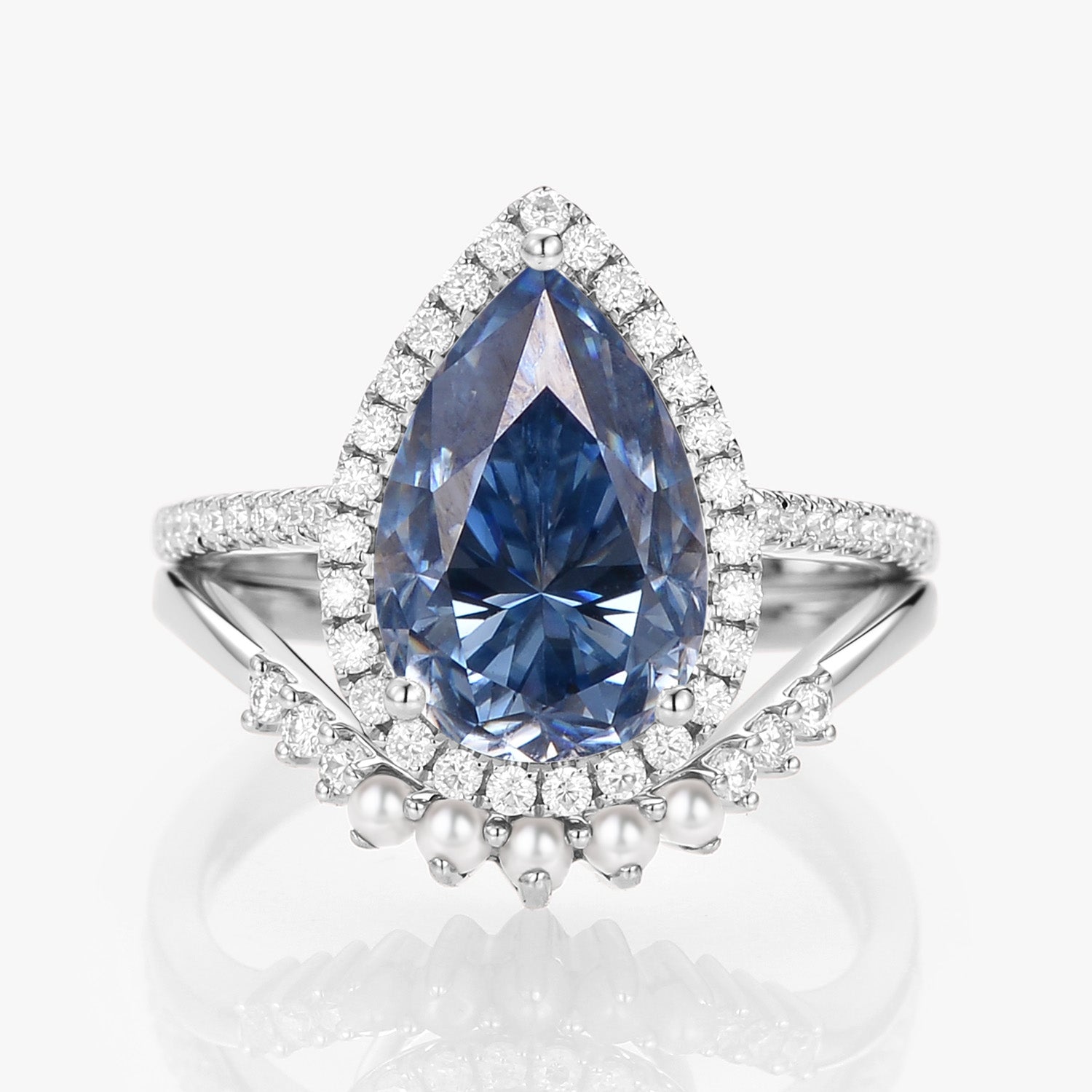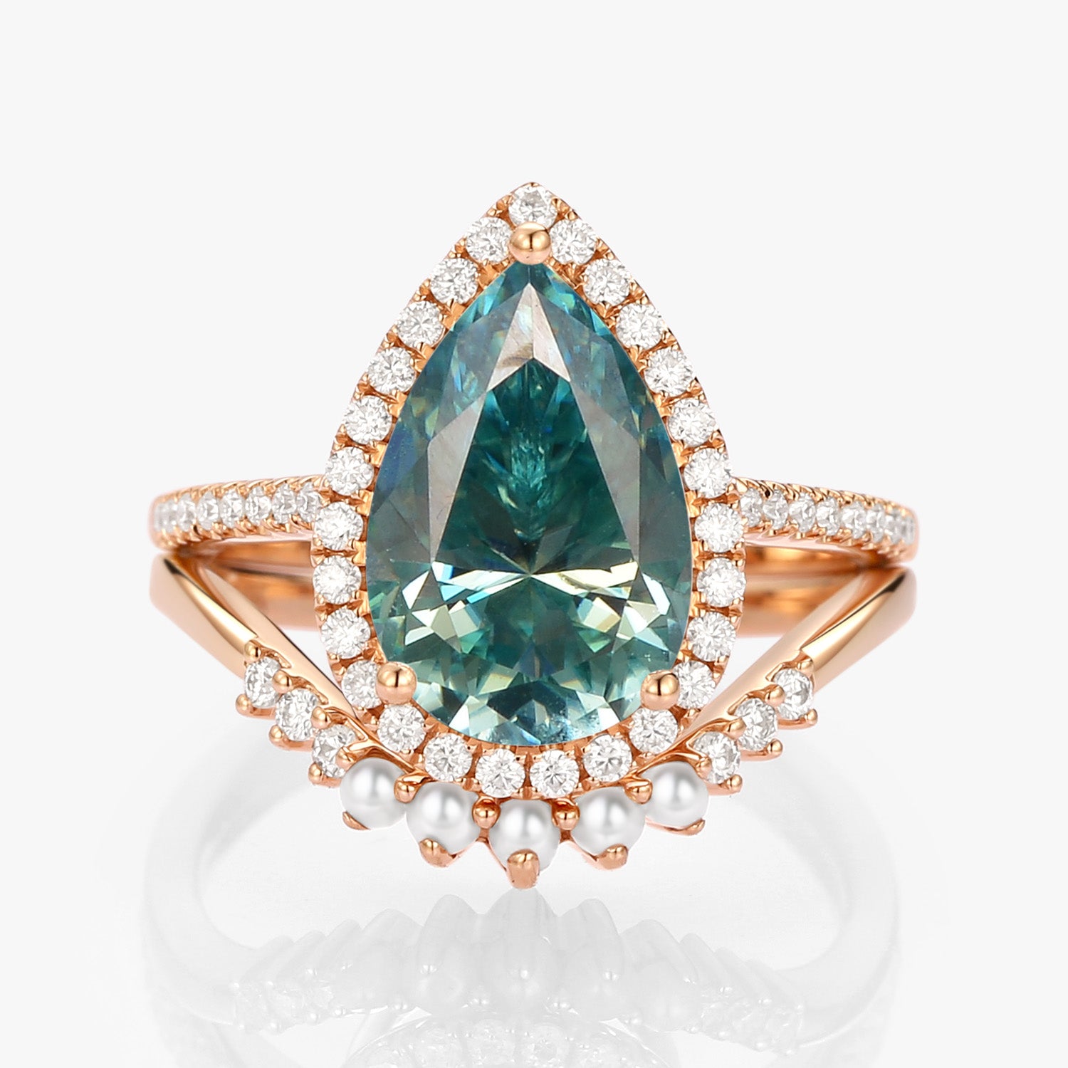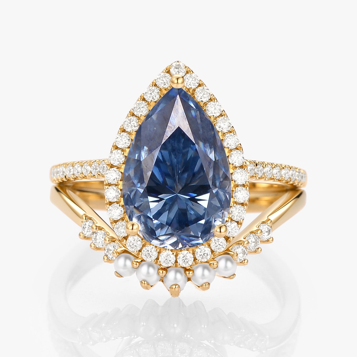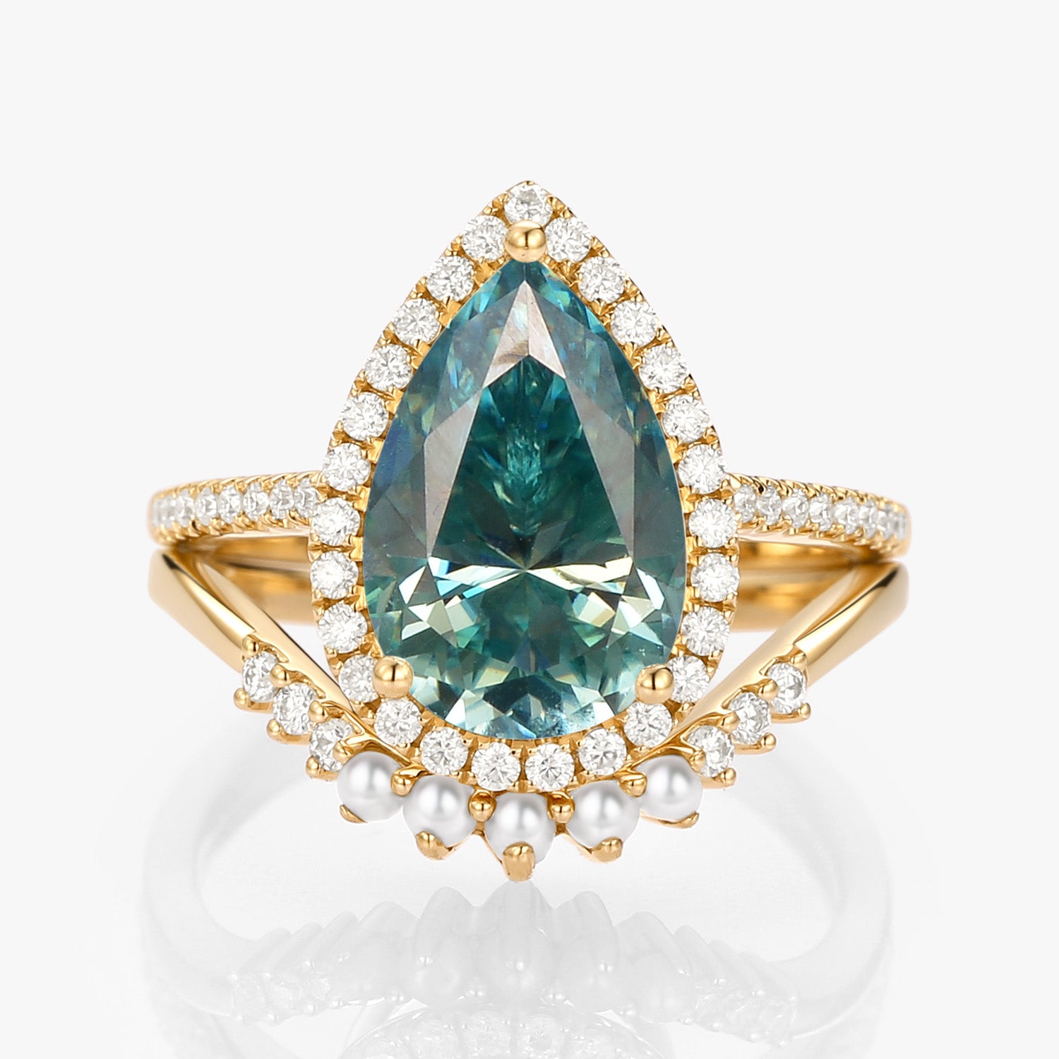 4.0ct Pear Moissanite & Pearl Classic Halo Ring Set 2pcs - Verena