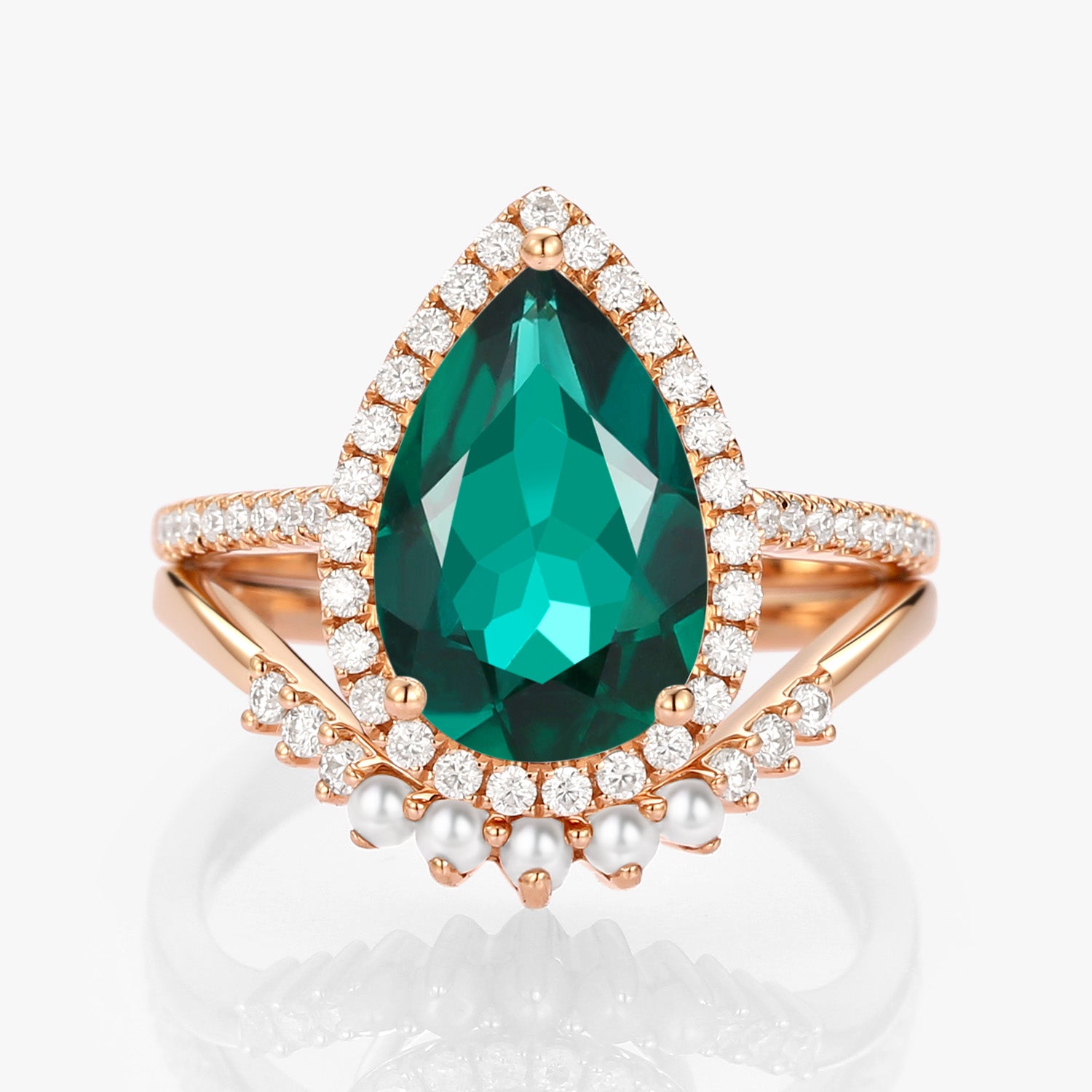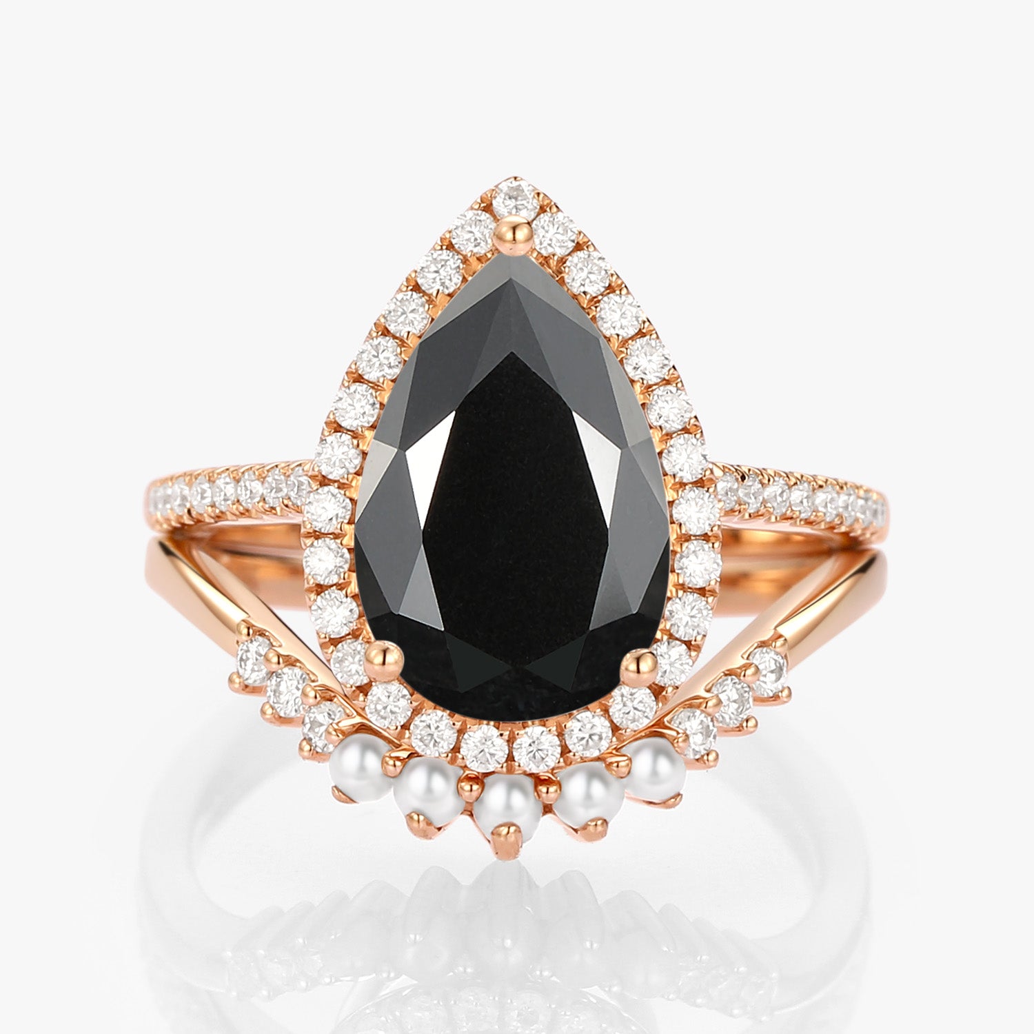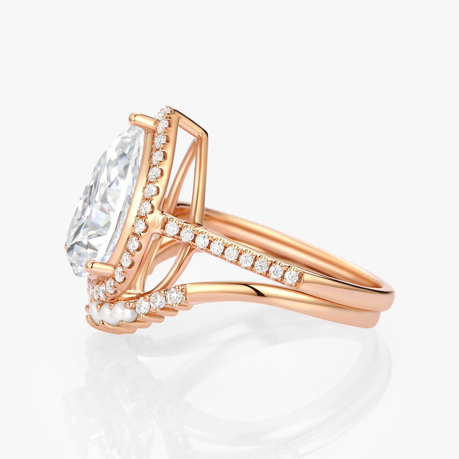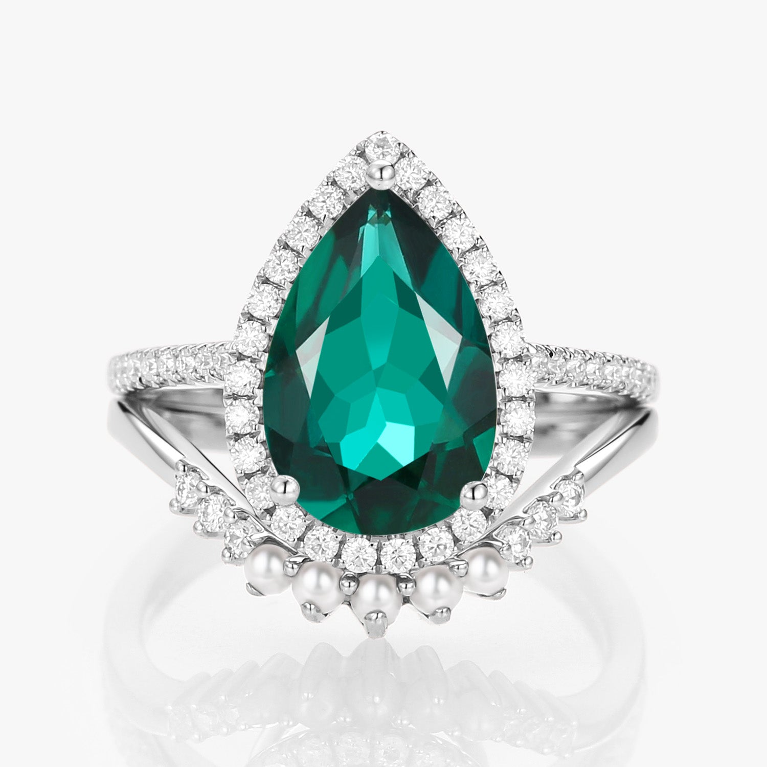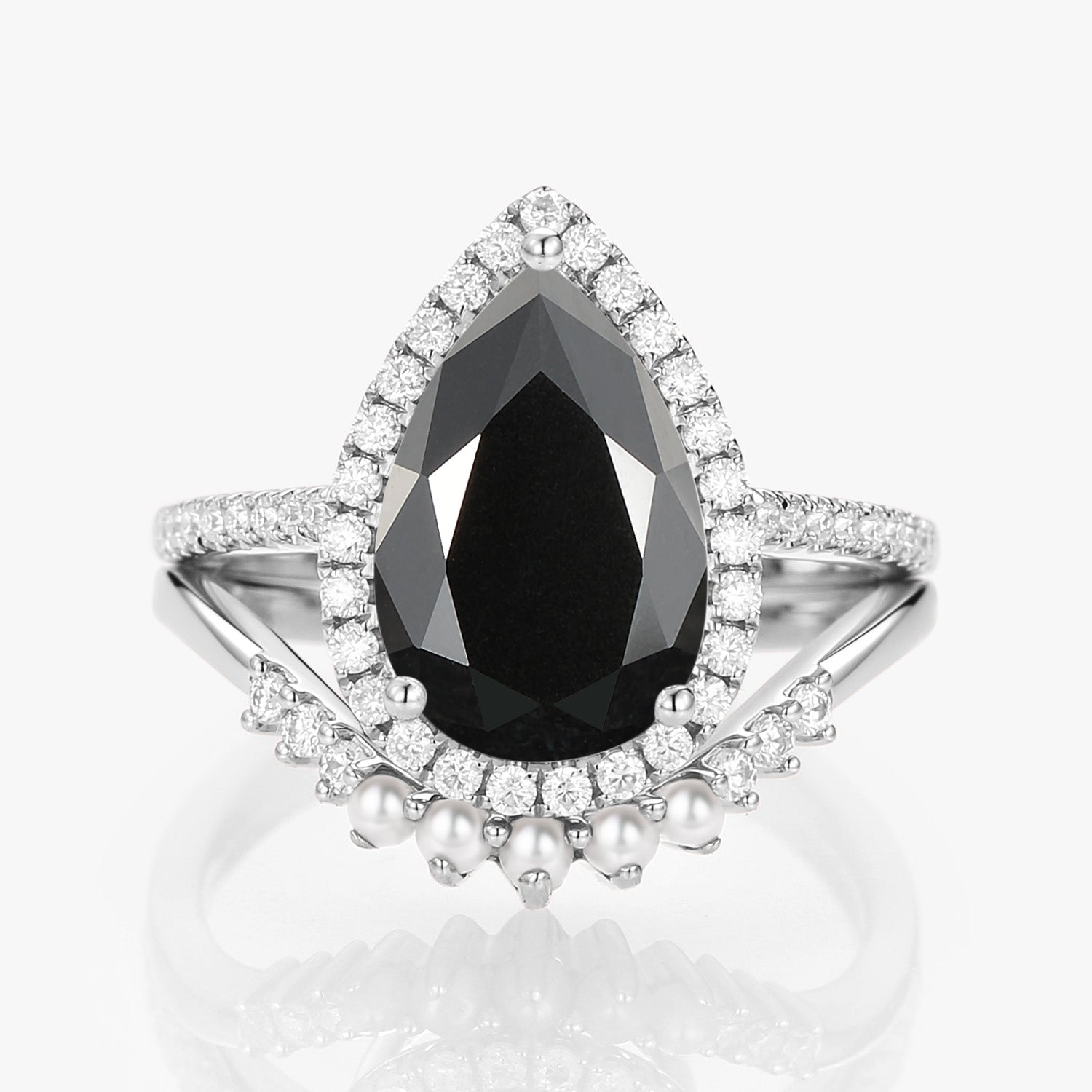 4.0ct Pear Moissanite & Pearl Classic Halo Ring Set 2pcs - Verena