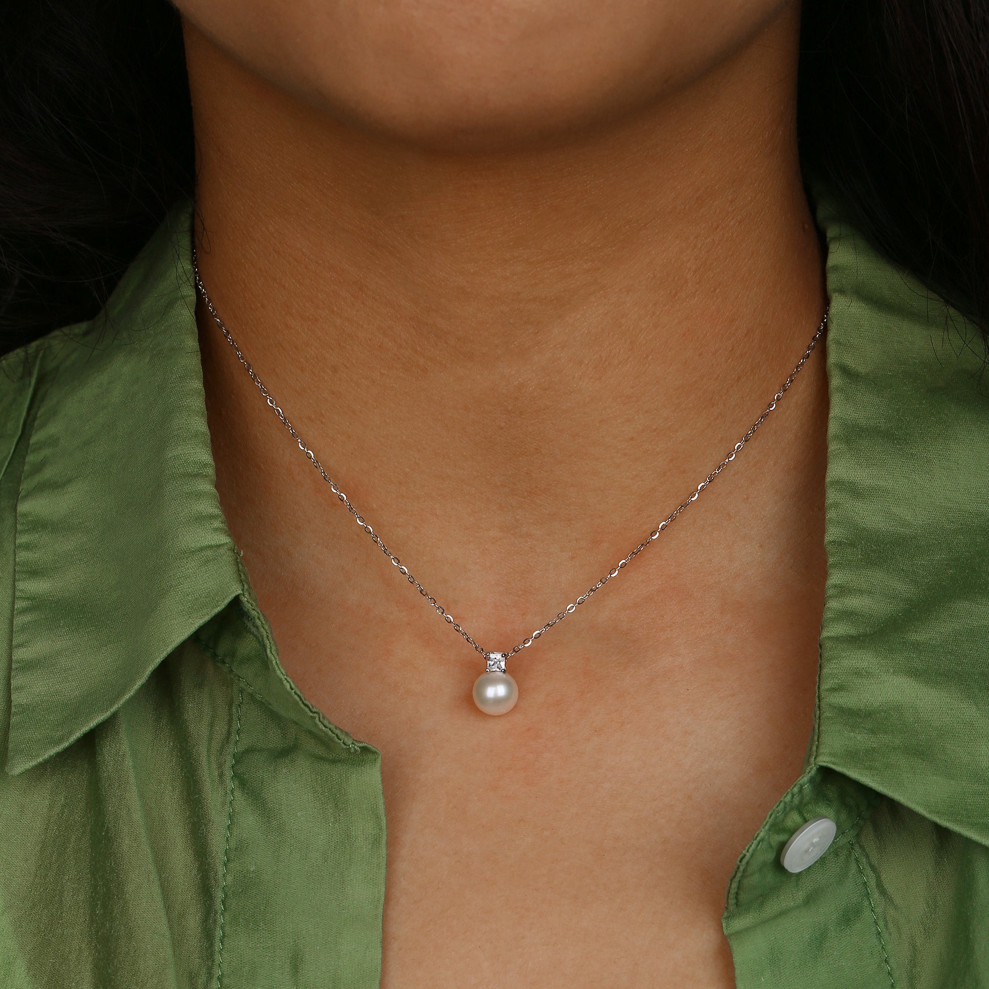 8mm Large Pearl Cushion Moissanite Classics Necklace