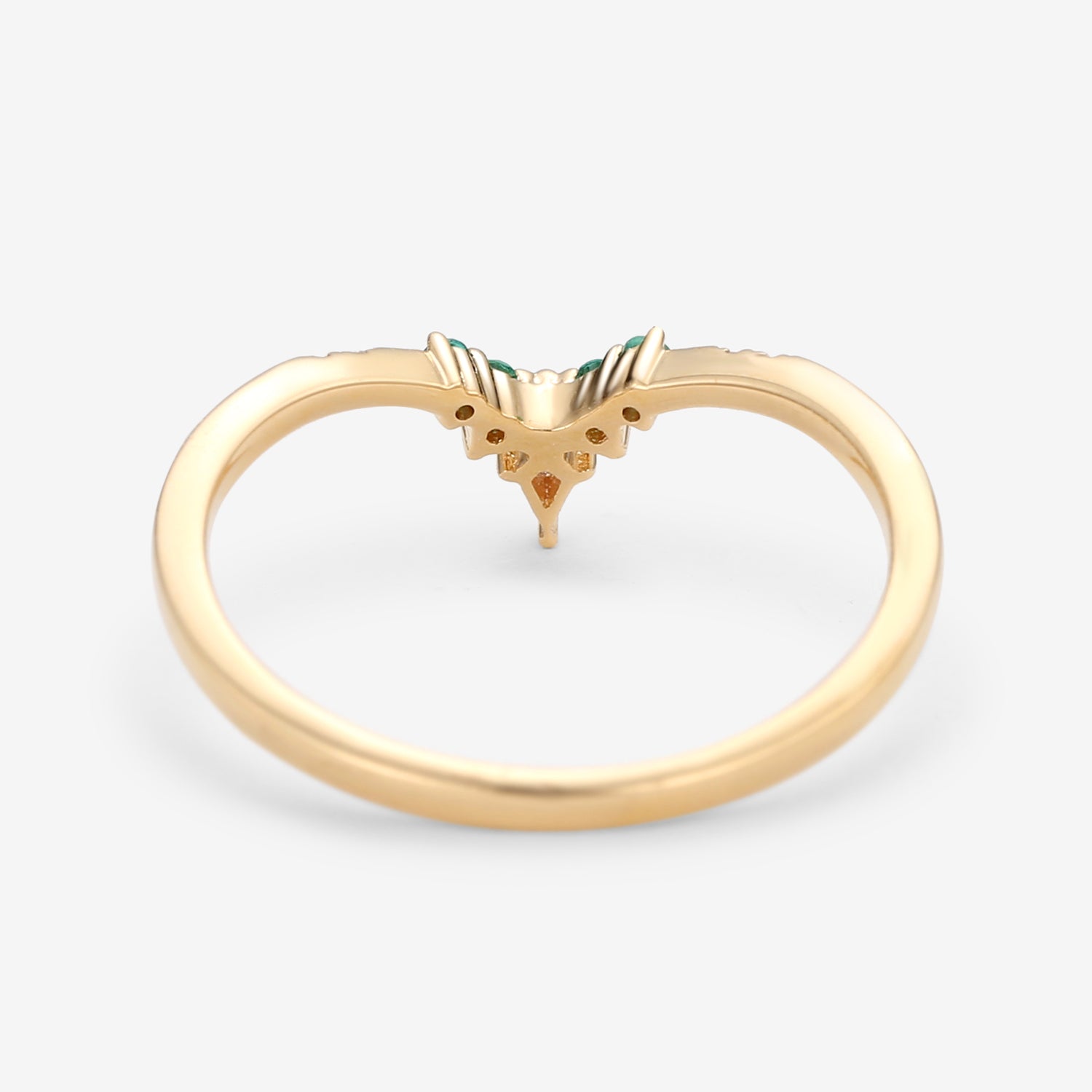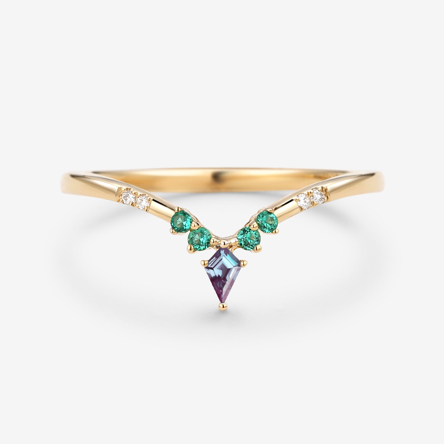 Felicegals Alexandrite & Emerald & Moissanite Band V Shaped Ring Wedding Band Women Stacking Chevron Ring Moissanite Antique Custom Curved Band Moissanite Band V Shaped Ring