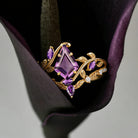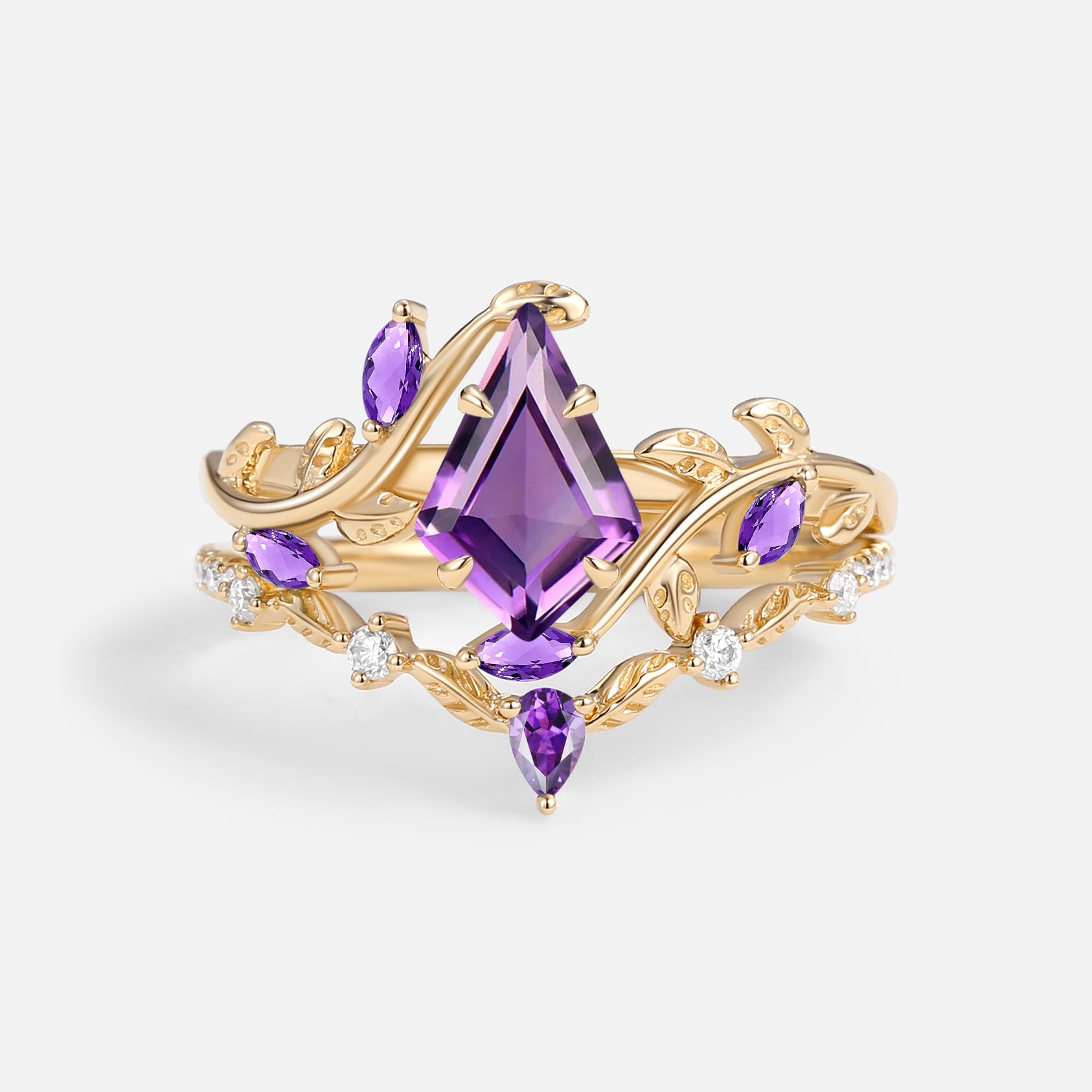 Amethyst Kite Vine Engagement Ring Set 2pcs - Daphne