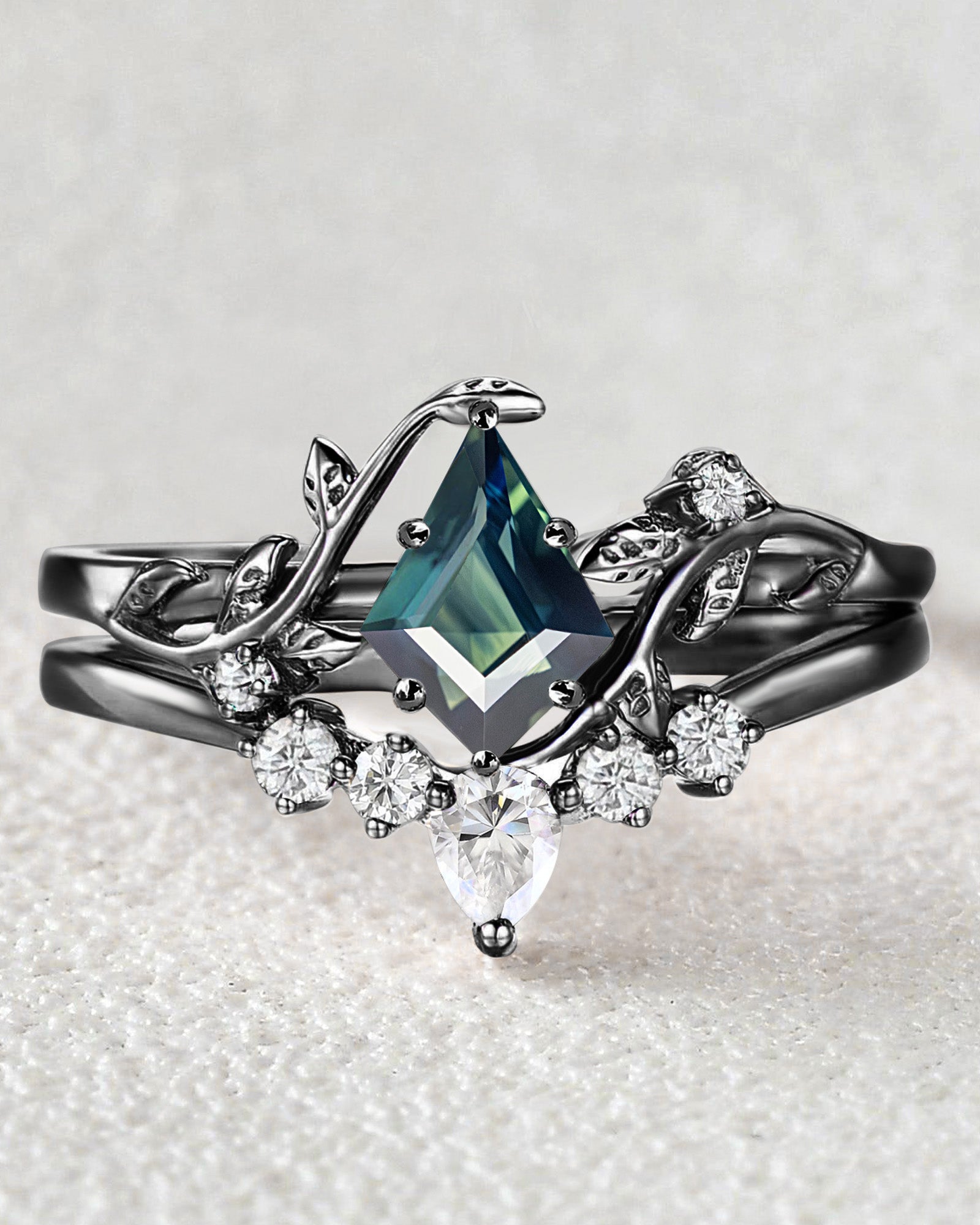 Art-deco Moissanite & Moss Agate Curved Stacking Band