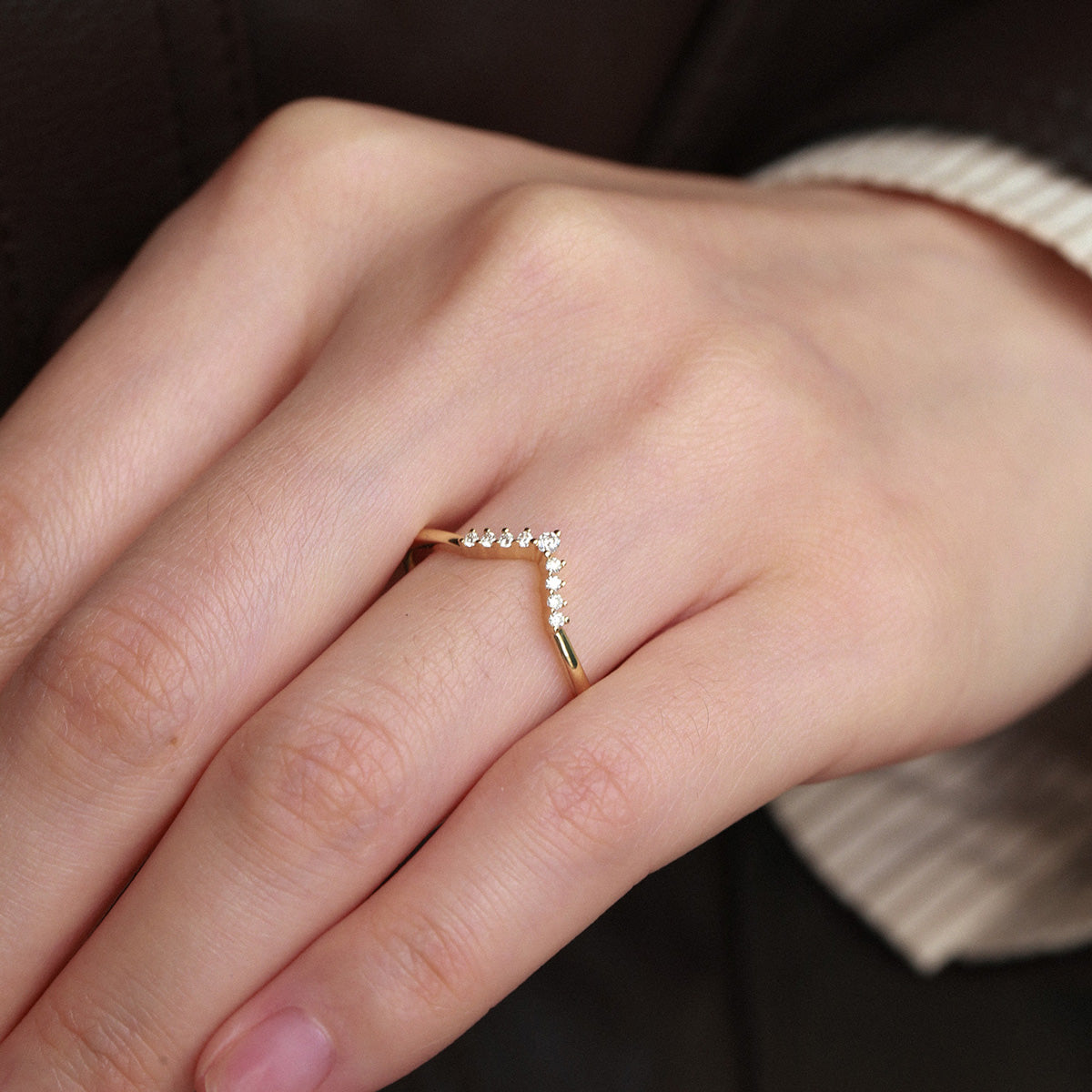 Felicegals Custom Curved Wedding Band Moissanite Band Chevron V Shaped Ring Yellow Gold Ring Minimalist Ring