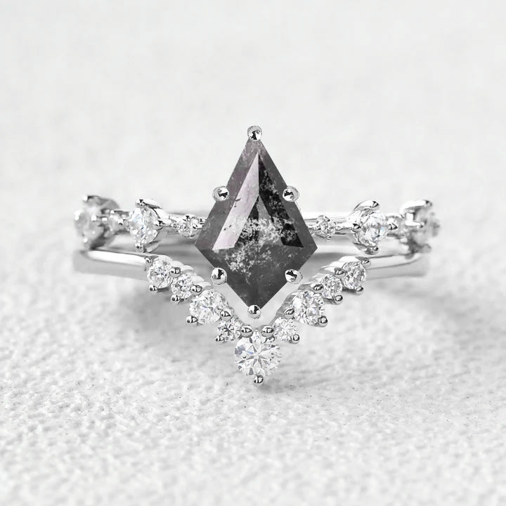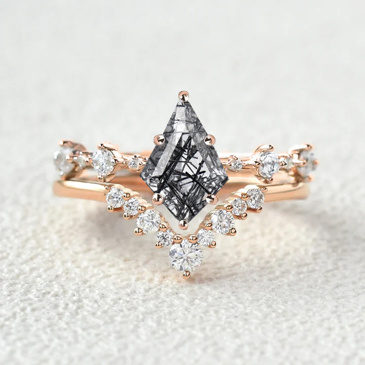Cluster Black Rutilated Quartz Engagement Ring Sets 2pcs