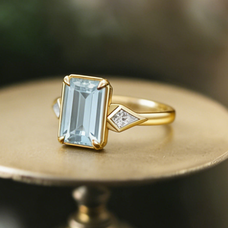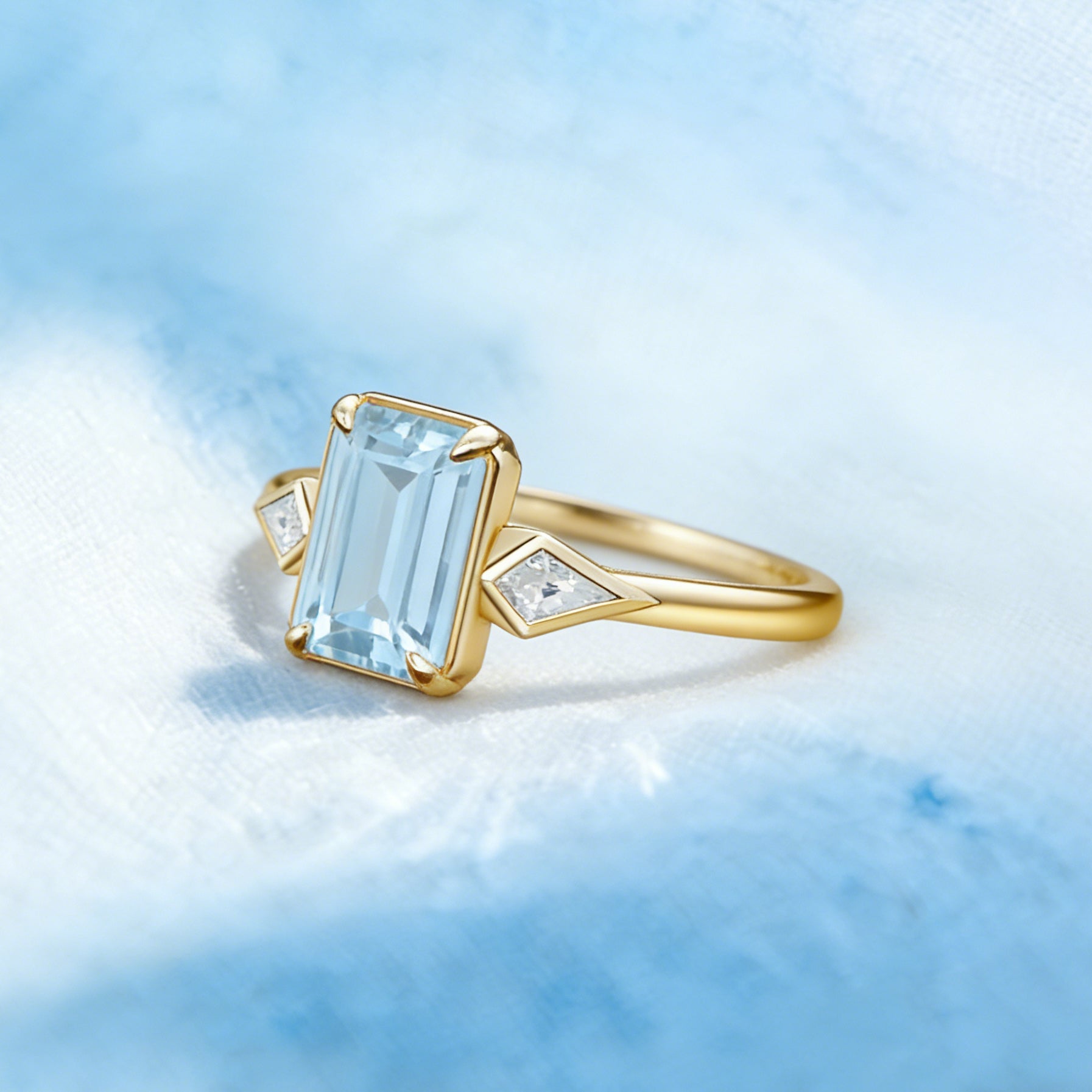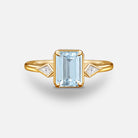 Emerald Cut Aquamarine Three Stone Engagement Ring - Juno