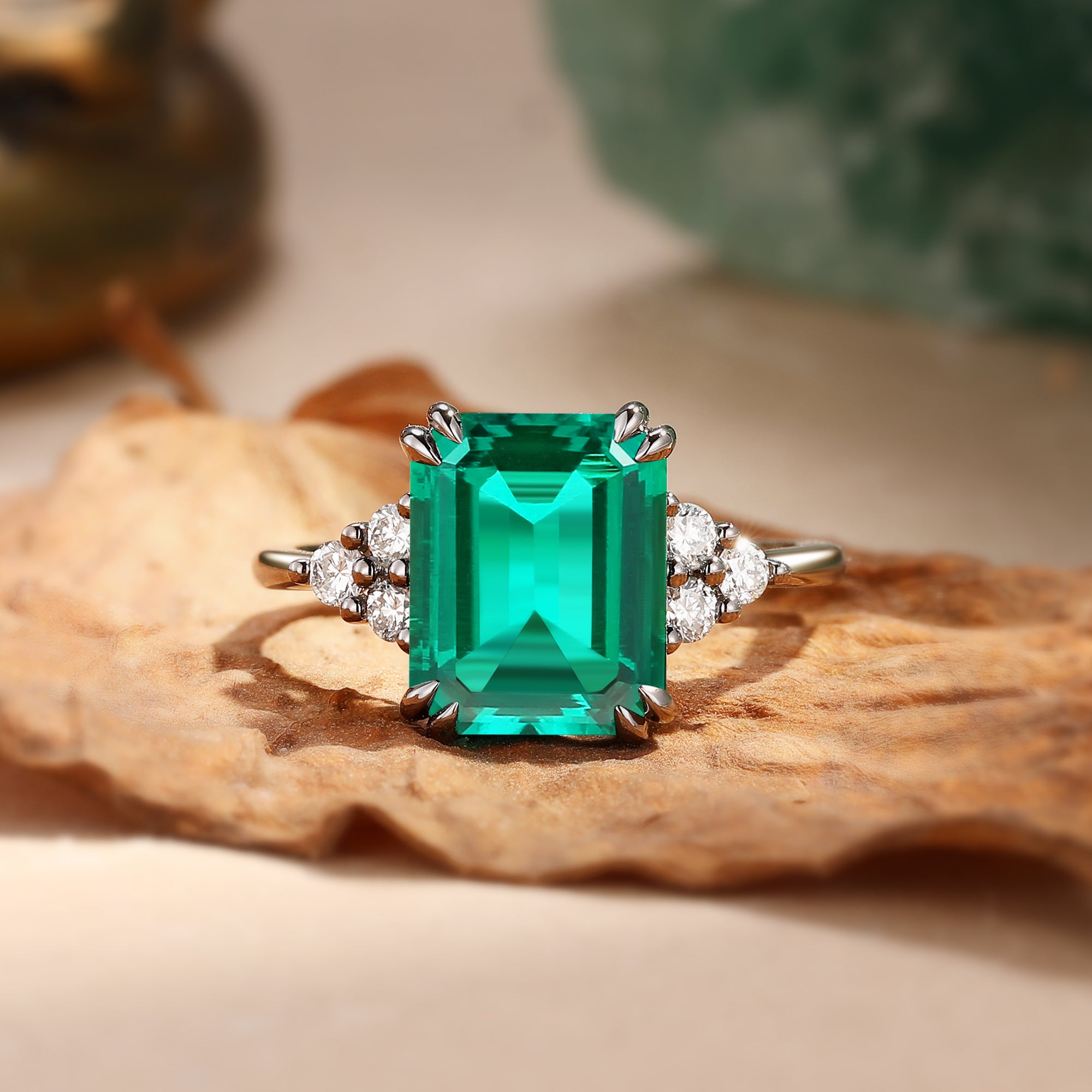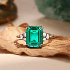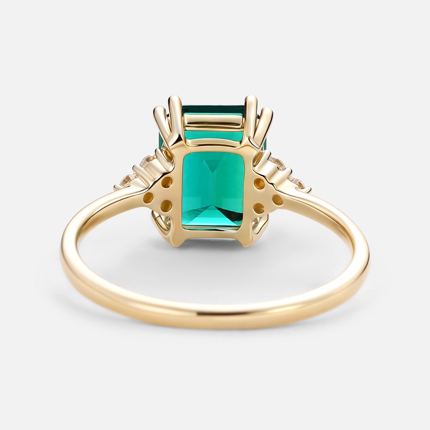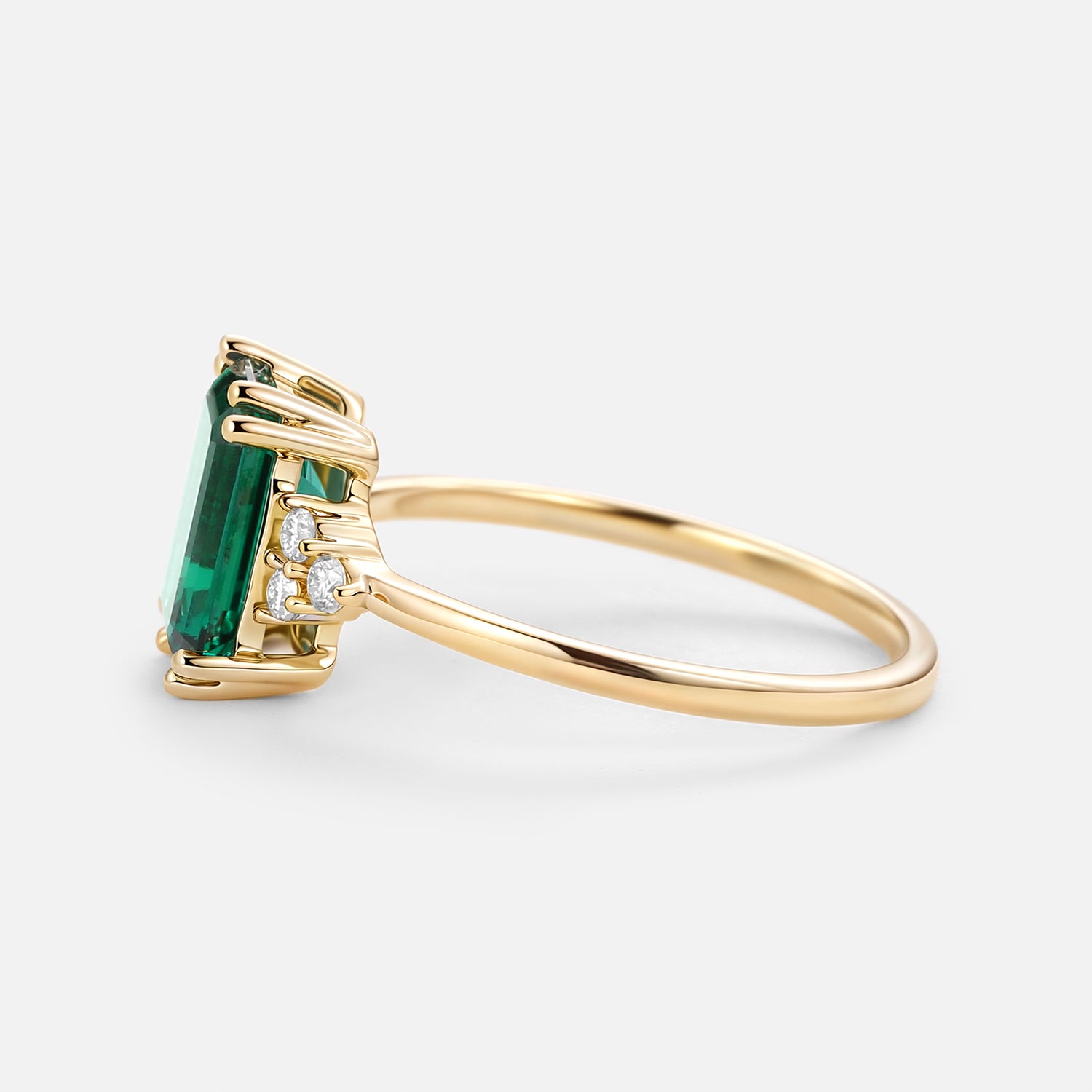 Emerald Cut Emerald & Moissanite Yellow Gold Ring