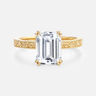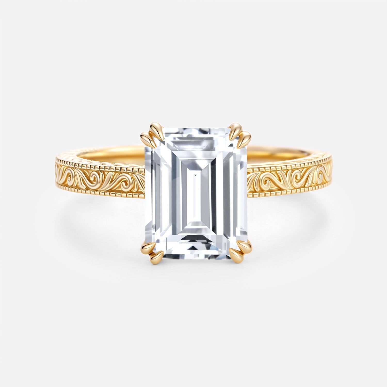 Emerald Cut Engraved Lab Grown Diamond Vintage Engagement Ring - Celeste