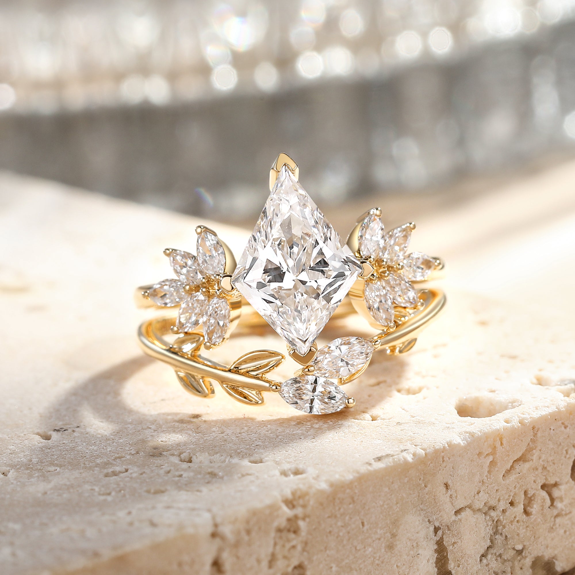Kite Cut Lab Grown Diamond Ring Rose Gold Leafy Forest Elves Unique Engagement Ring Women Dainty Diamond Ring Personalized Anniversary Gift