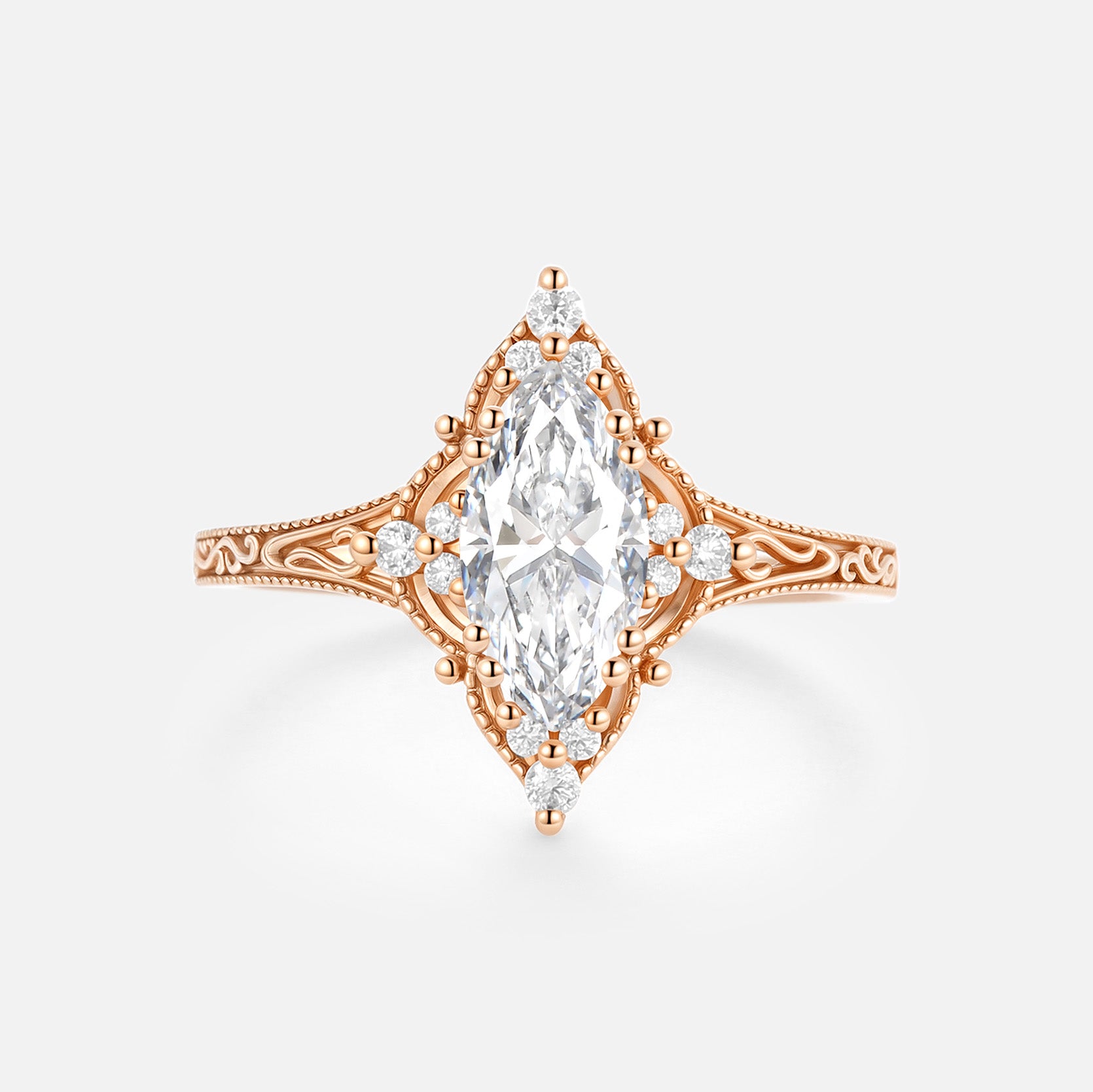 Halo Marquise Lab Grown Diamond Engraved Engagement Ring - Corona