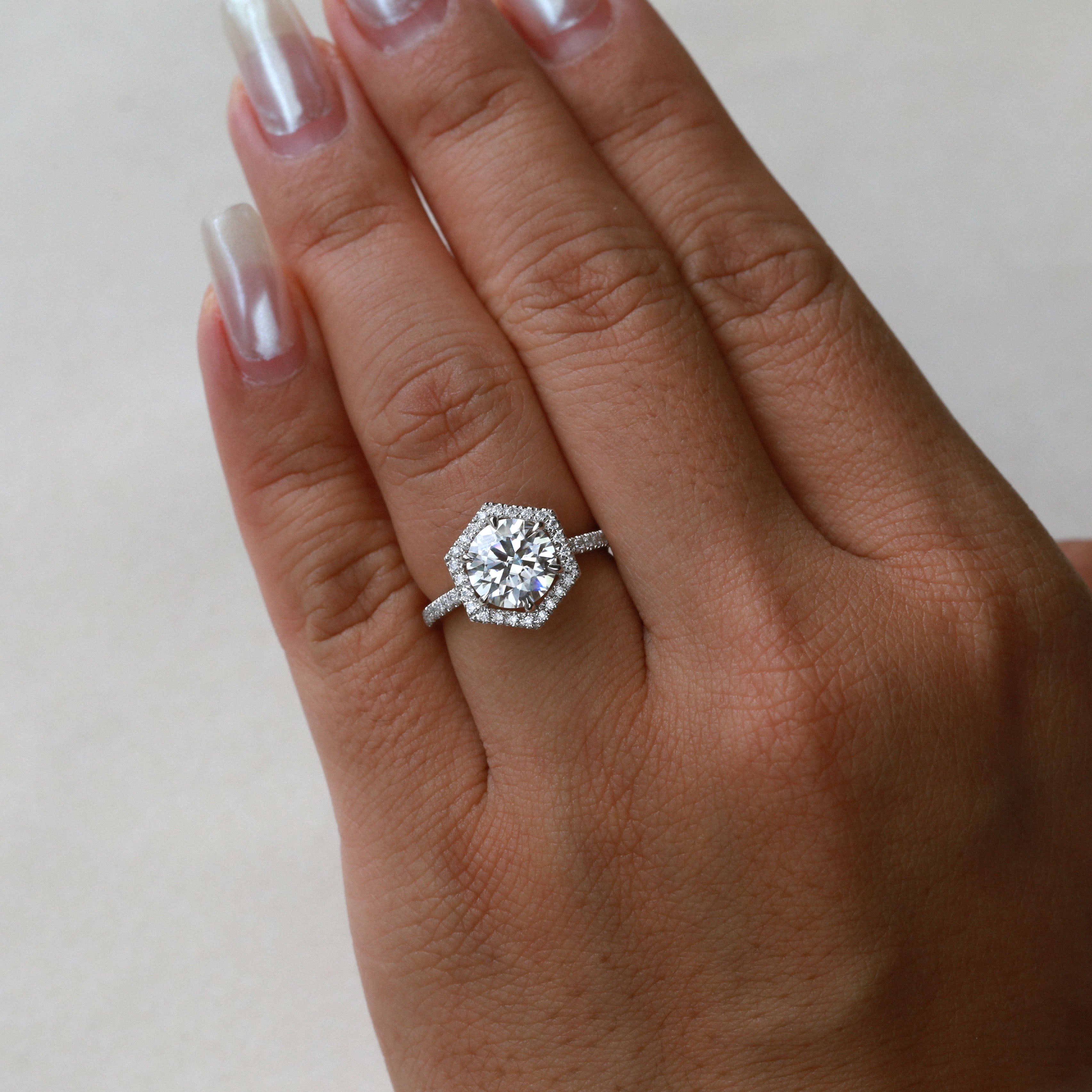 Felicegals Hexagon Moonstone & Moissanite Halo Rose Gold Ring Moissanite Eternity Ring Anniversary Promise Women Gift