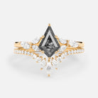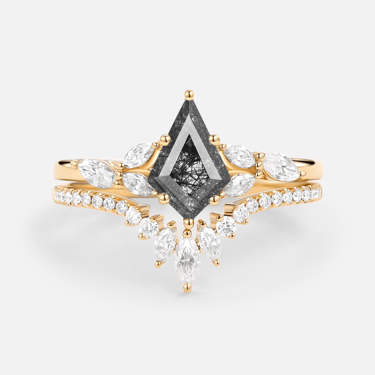 Kite Cut Black Rutilated Quartz Engagement Ring Set 2pcs - July