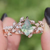 Kite Cut Moss Agate Leafy Pave Engagement Ring - Wren