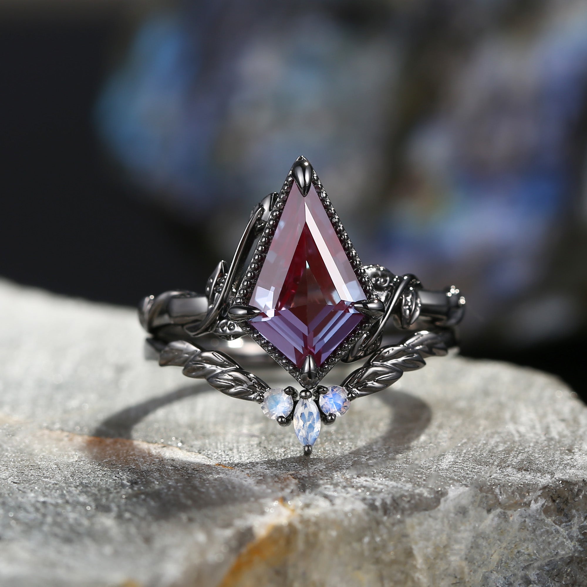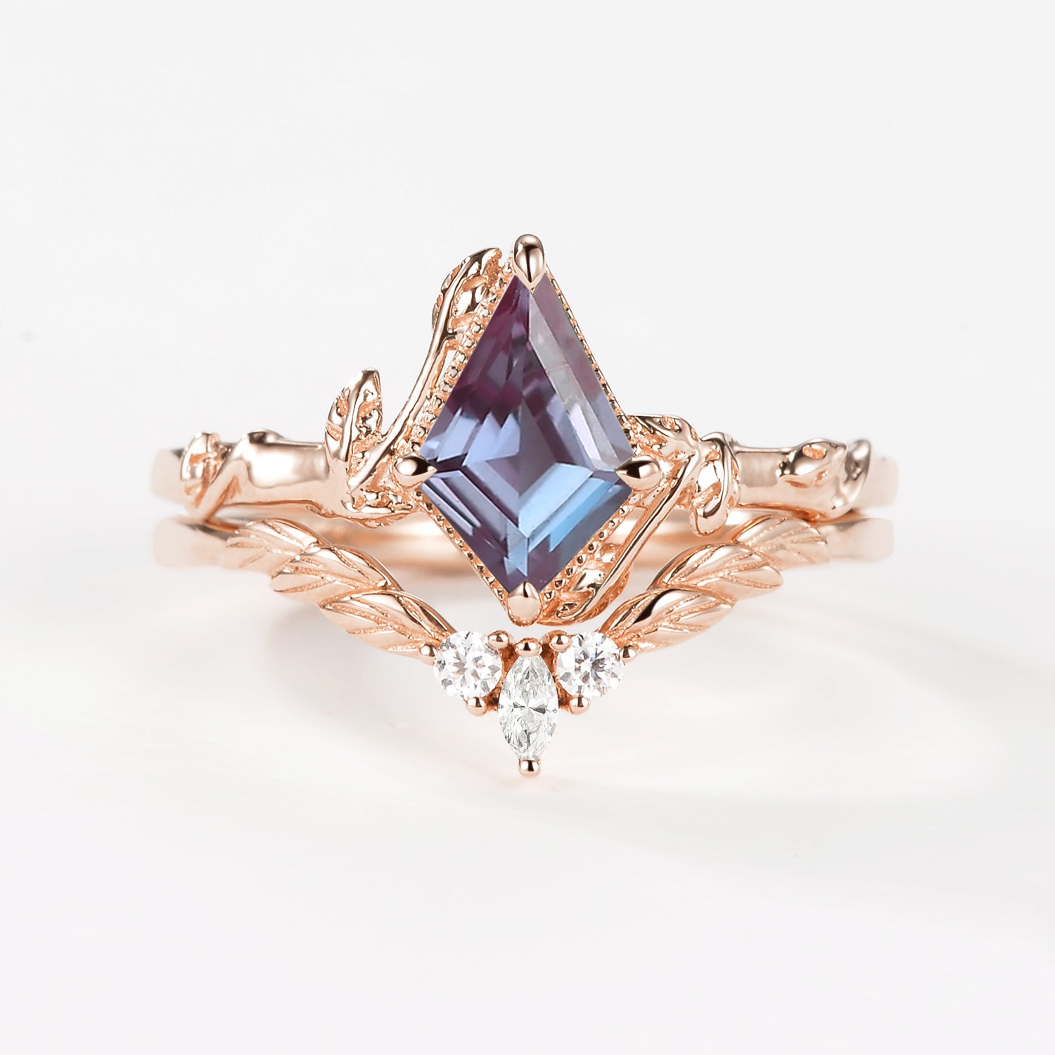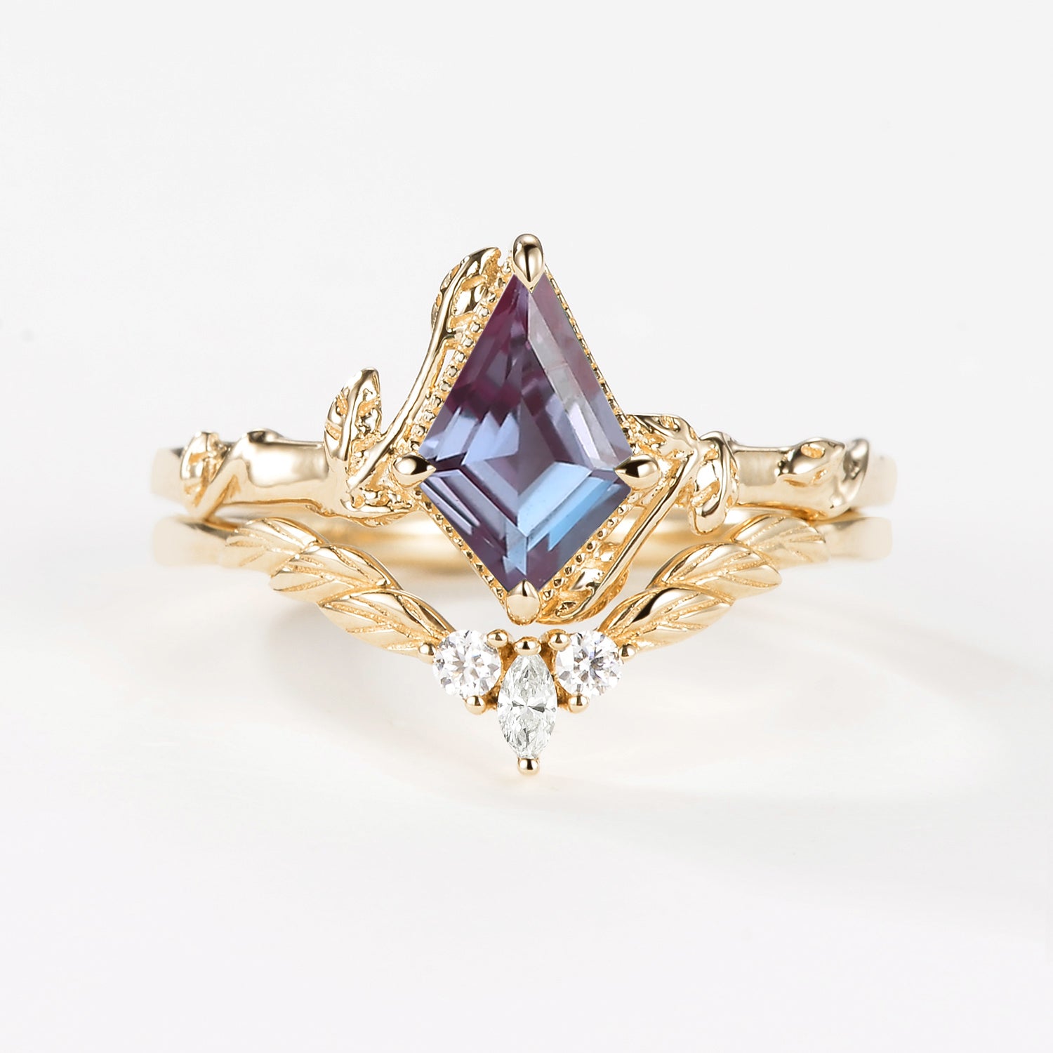Lab Alexandrite Leafy Inspired Engagement Ring Sets 2pcs - Isla