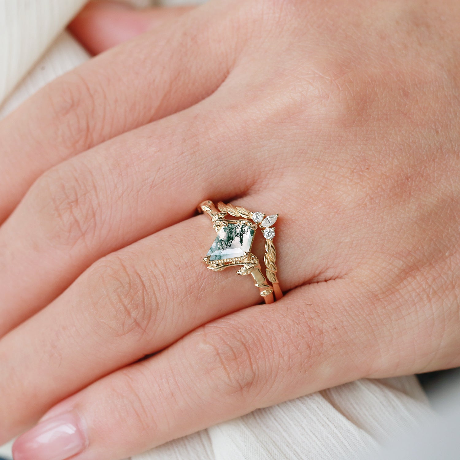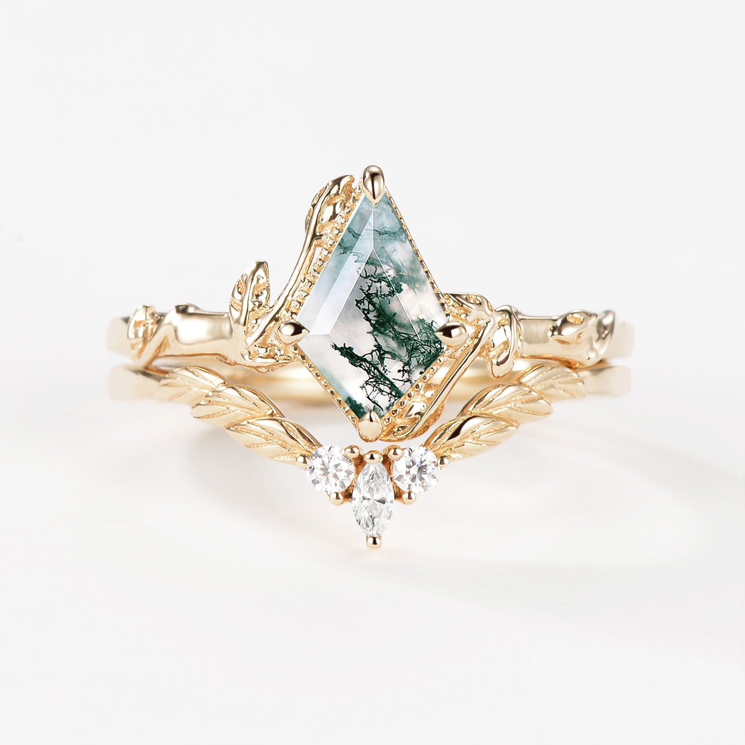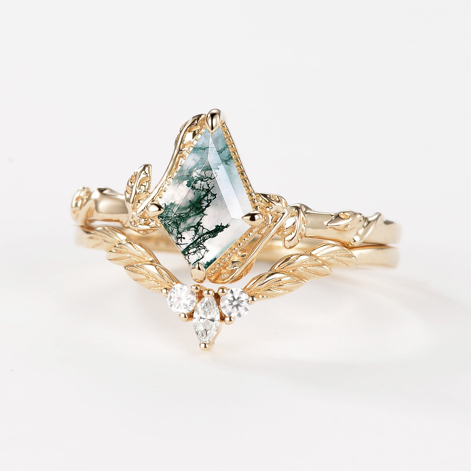 Lab Alexandrite Leafy Inspired Engagement Ring Sets 2pcs - Isla