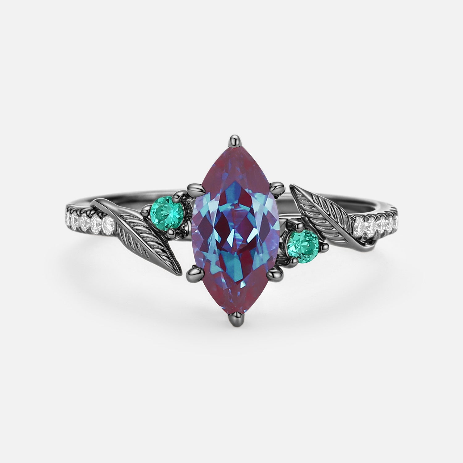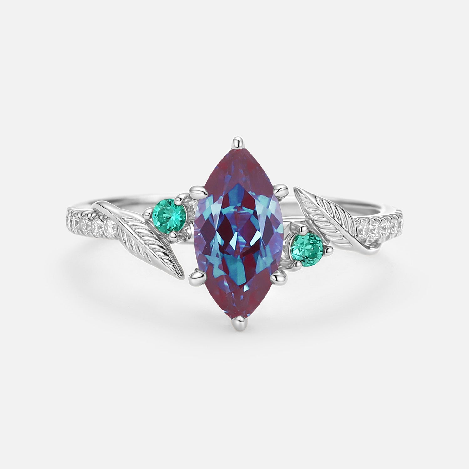 Lab Alexandrite Marquise Leafy Vintage Engagement Ring - Aspen