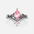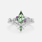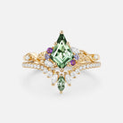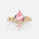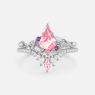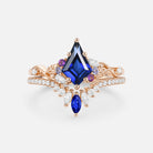 Kite Lab Cornflower Sapphire Leafy Engagement Ring Set 2pcs - Elowen